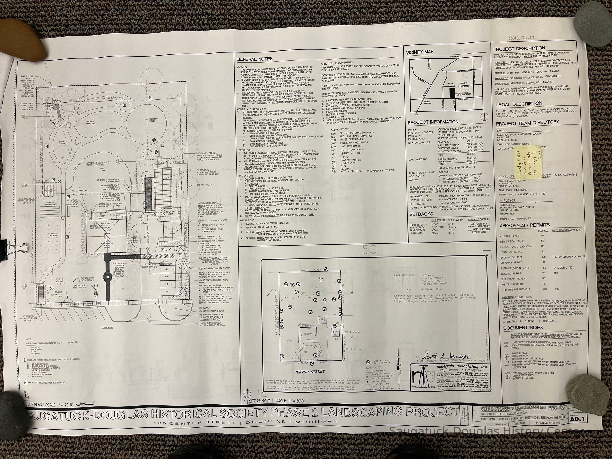 Architectural drawings of the Francis life boat house and gardens behind the Old School House, Douglas,  MI.