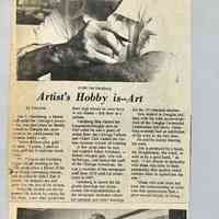 24. Newspaper clippings pasted on front and back of heavy gray paper. "Artist's Hobby is - - Art" Commercial Record, August 20, 1970 and "Now Steinberg Has Time for Hobby" Commercial Record, July 6, 1967.