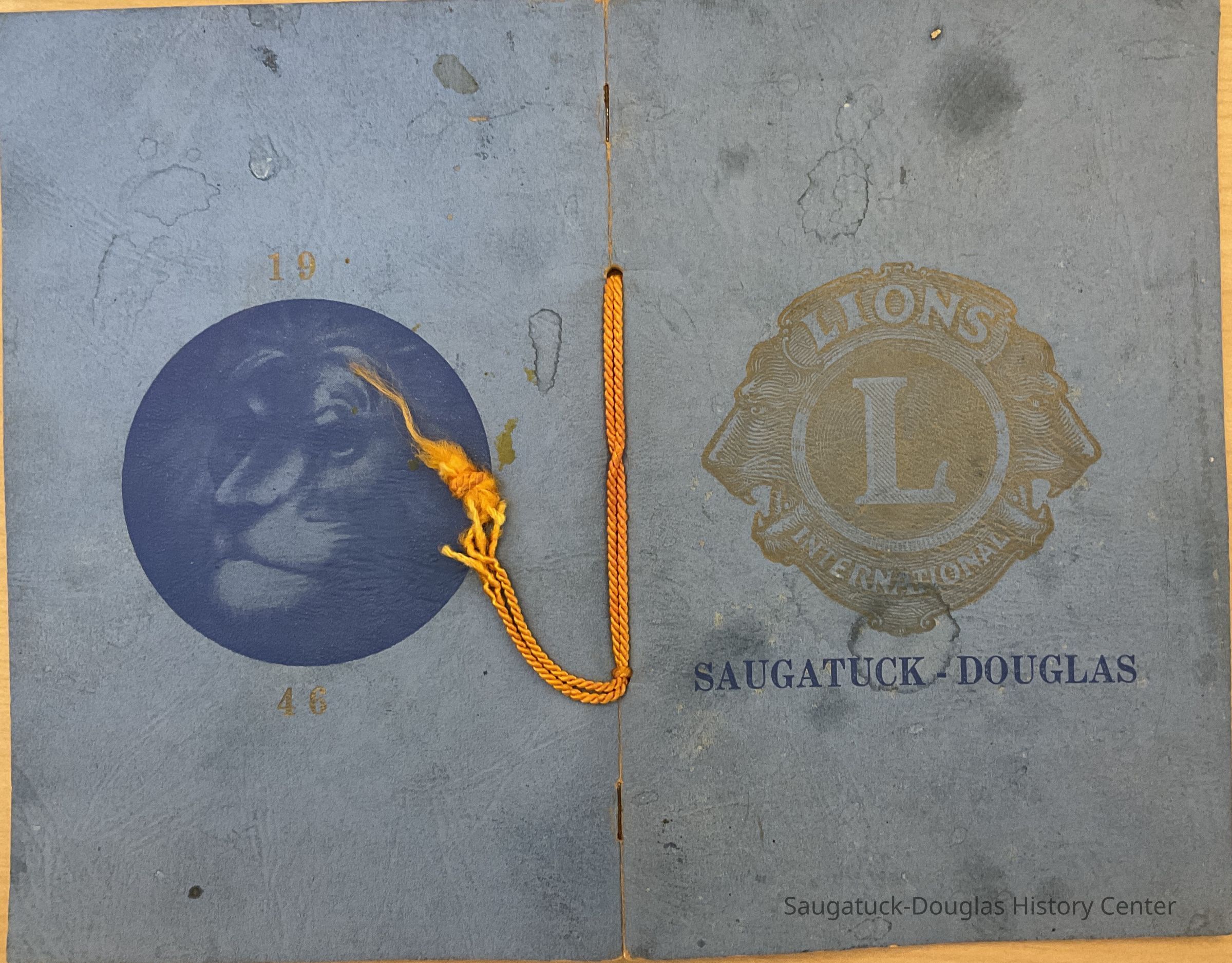 1946 directory of the Saugatuck Douglas Lion's Club. It is made to serve as a souvenir for visitors to the area. it contains a brief history, of the area, history of boat disasters and advertisements of area businesses. (Pages 17-18 include an article written by L. S. Brittain: “Boat Disasters of Saugatuck Shores”.)