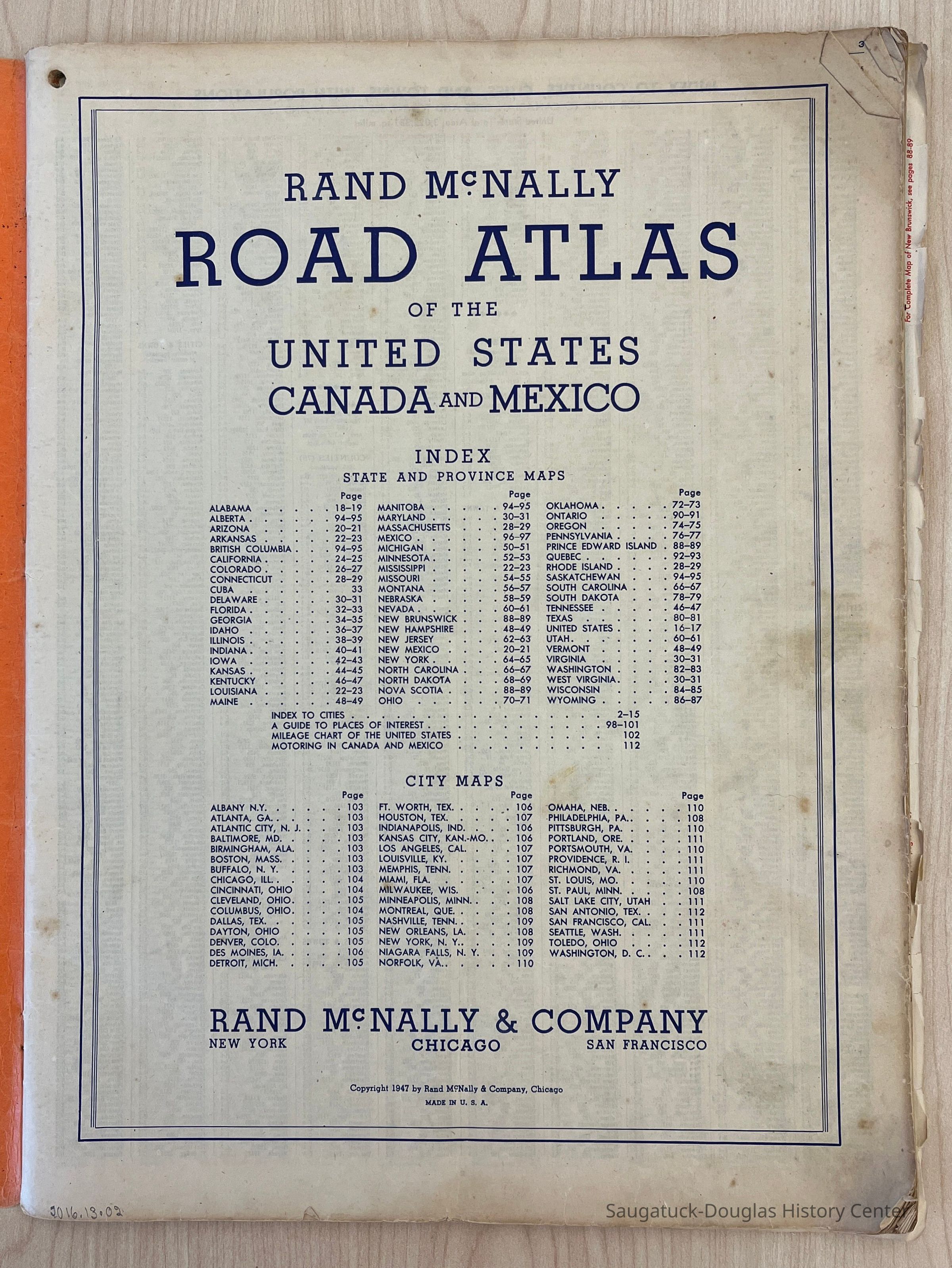 1947 Rand McNally Special Road Atlas prepared for Members of the National Bus Traffic Association, Inc.. State Maps of the USA & Province Maps of Canada and City Maps