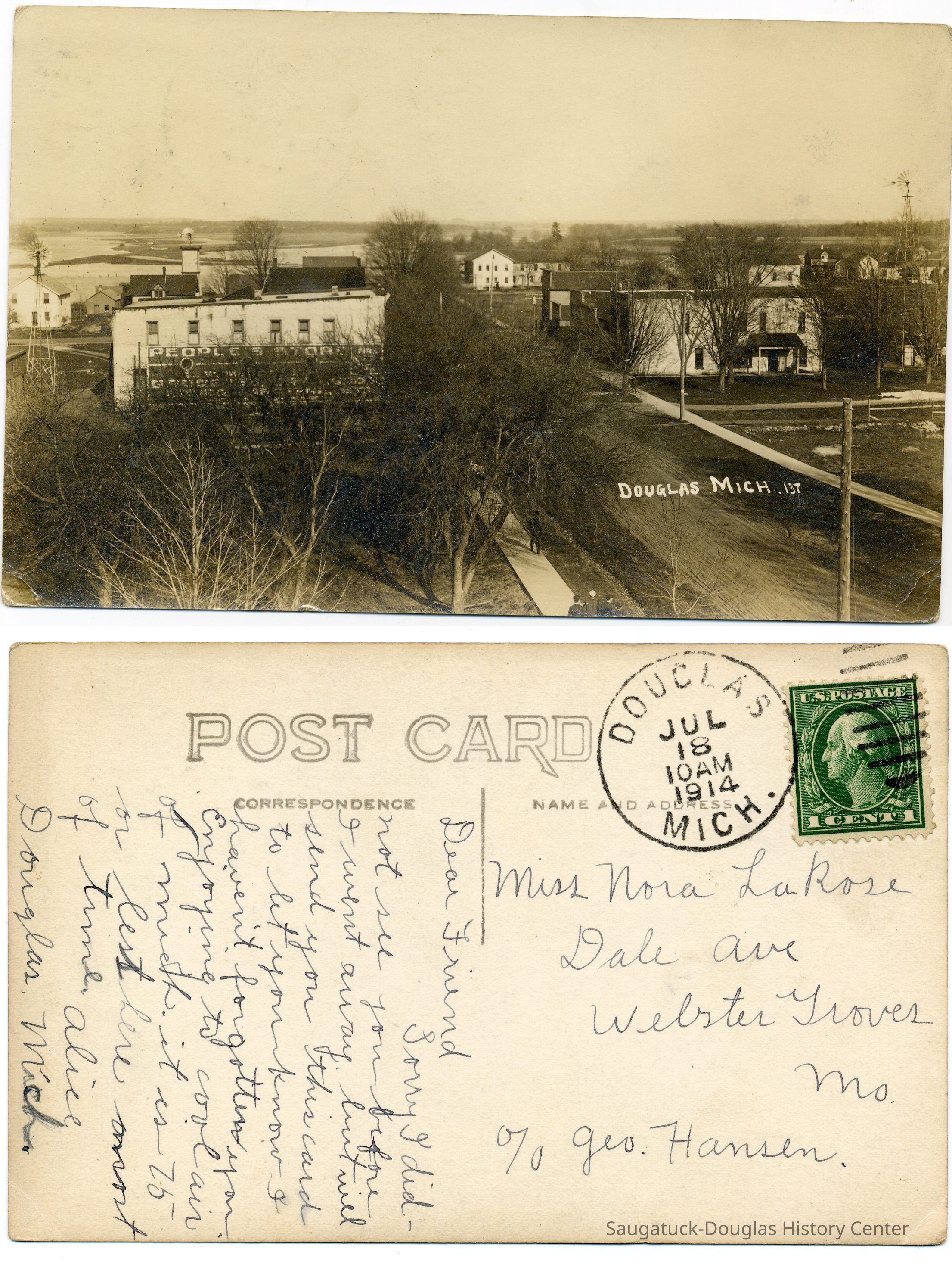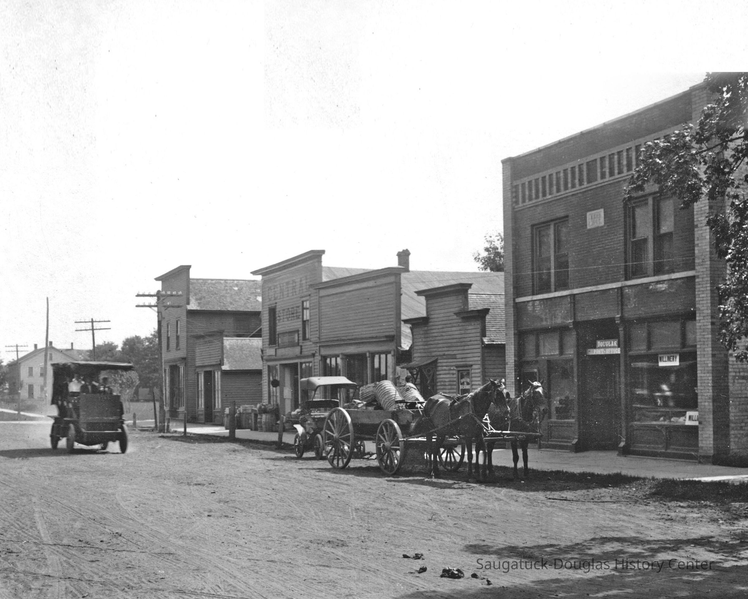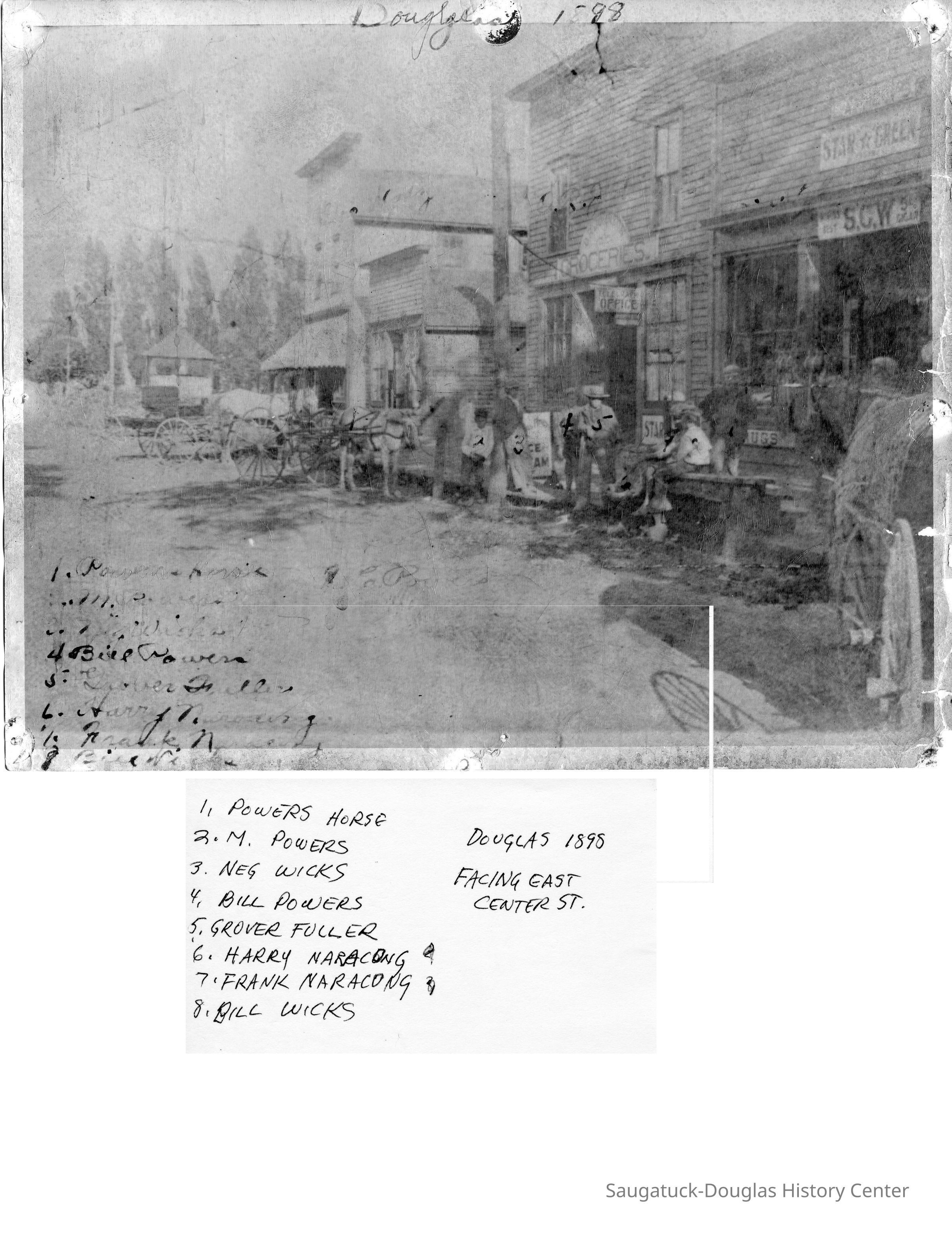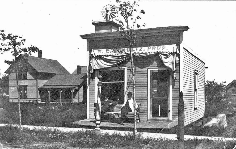 Happystance/8W Center/Chaps/Auction House/Douglas Cafe/Wiegert's Model GroceryEveryday People Cafe/11W Center/Douglas Dinette/Walz or Waltz Meat Market33 W Center/Kerr BuildingPost Office, current Douglas USPSCenter Street