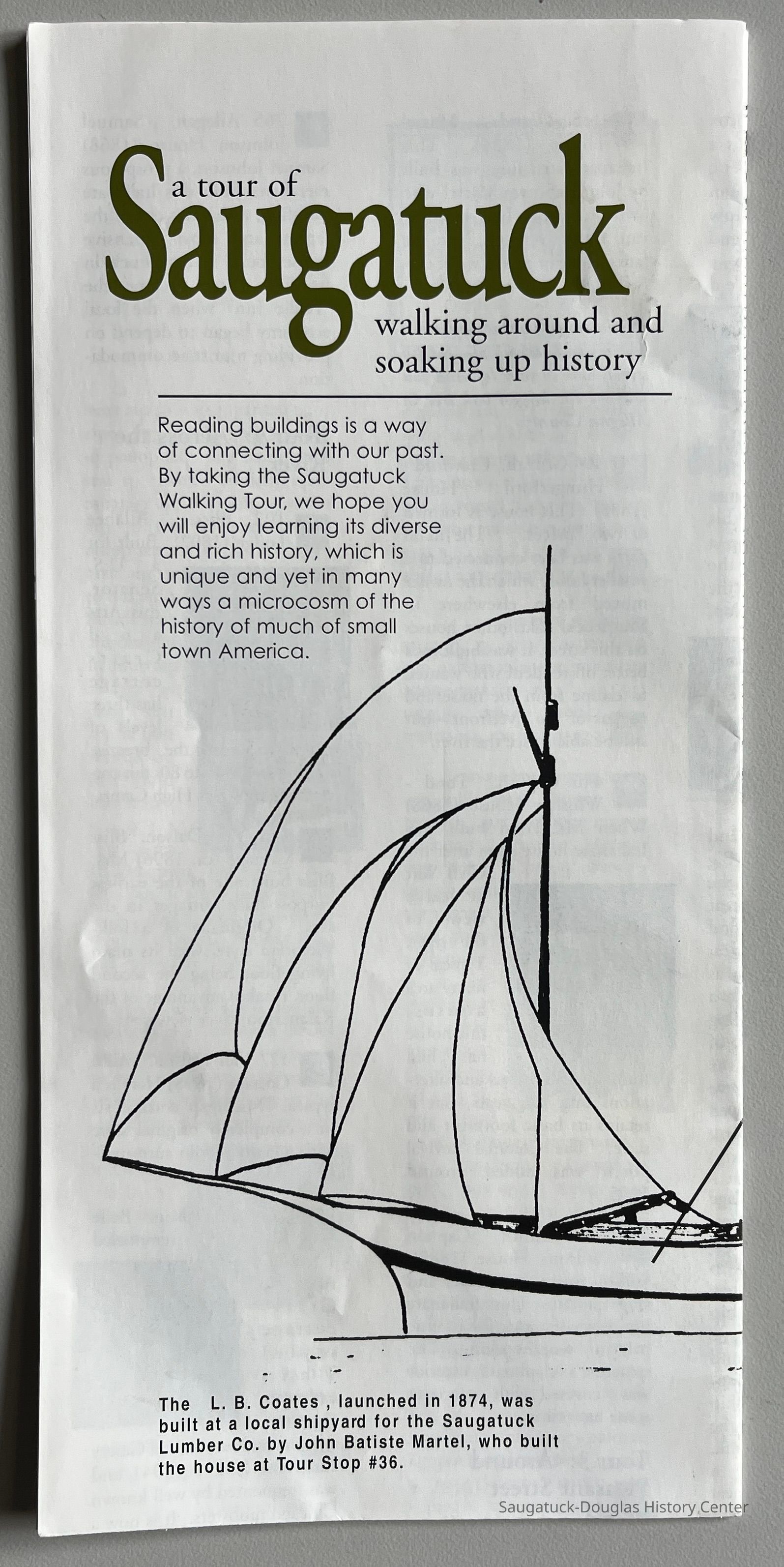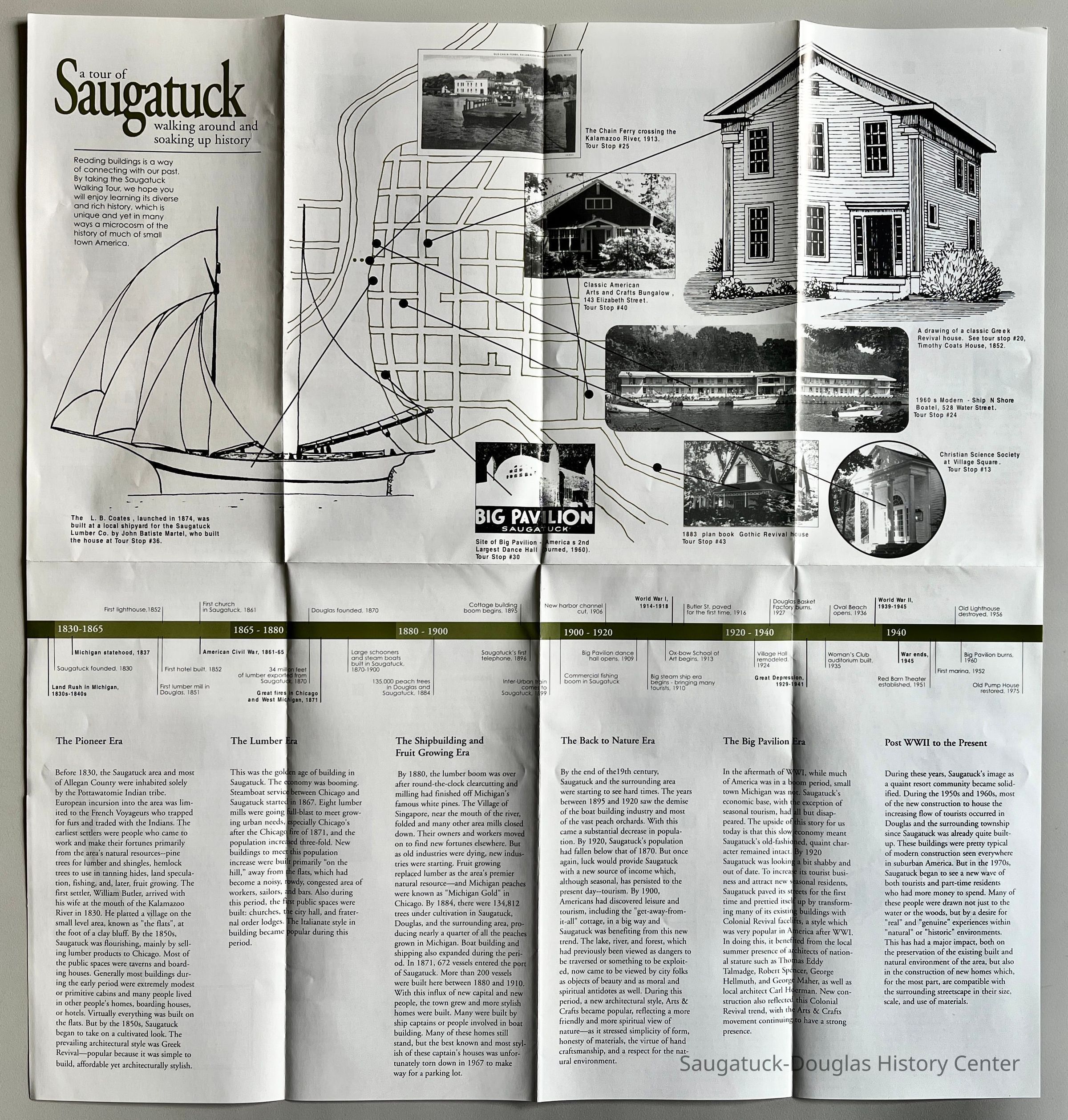 A circa 2001 project by the SD Historical Society to raise awareness of history and architecture. Hillman was a member of the Saugatuck Historic District commission. This brochure mentions the book "Raising the Roof: The Buildings and Architecture of Saugatuck-Douglas."