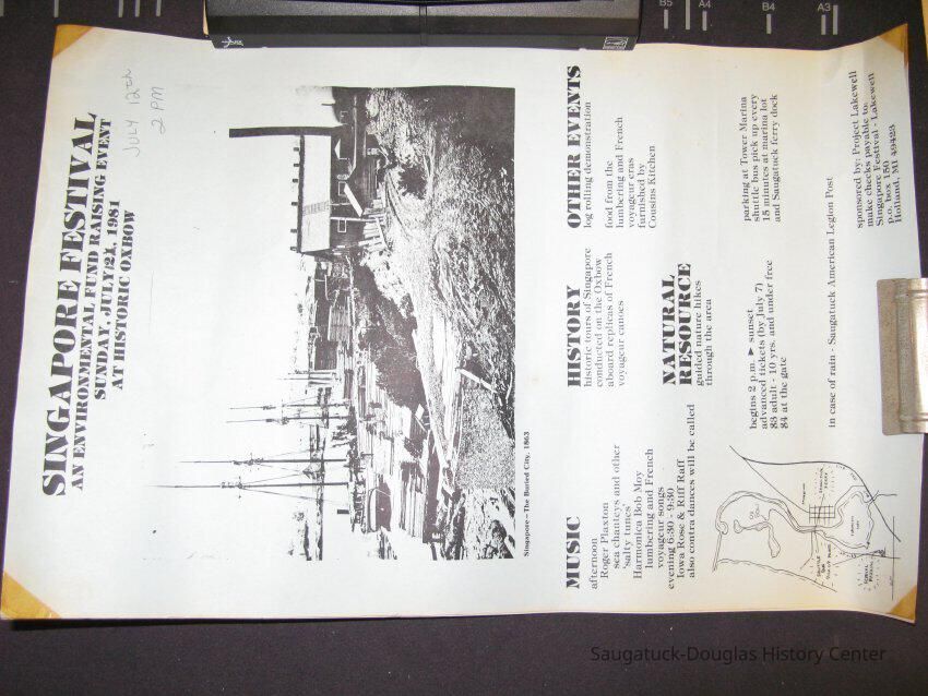 Two posters of the Singapore Festival, July 12, 1981 An Enviromental Fund Raiser at the Historic OxBow. The event featured music, food and tours of the natural areas around Singapore.
