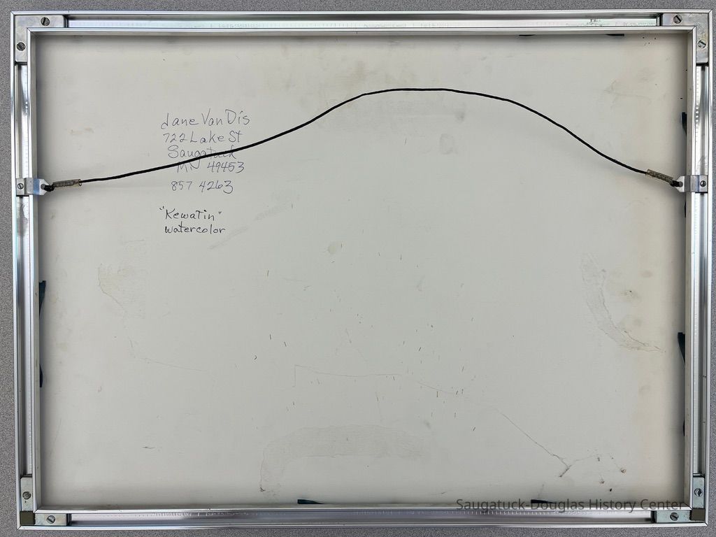 The adhesive residue on the glass suggest this painting was from the collection of art purchased by the City of the Village of Douglas from the Saugatuck Art Club's Waterfront Art Fair in the late 1990s and early 2000s.