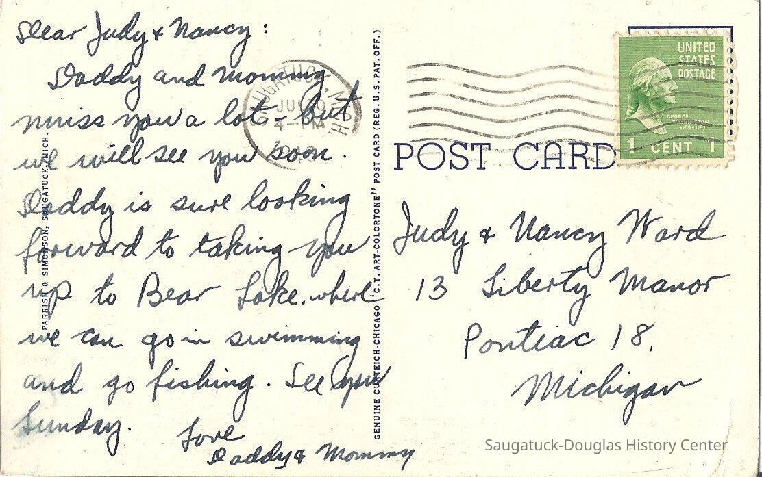 Daddy and Mommy miss you a lot - but we will see you soon. Daddy is sure looking forward to taking you to Bear Lake where we can go swimming and fishing. See you Sunday. Love, Daddy and Mommy