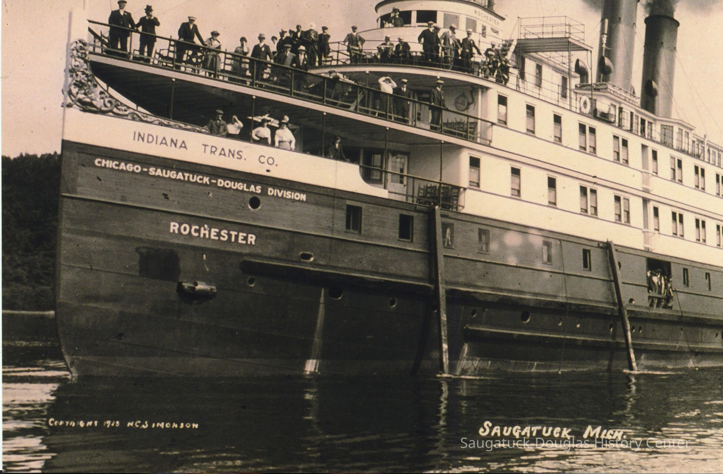 The top image was featured as History Mystery #11 with the solution: The Rochester first arrived on June 30, 1915 and made its last trip a month later. Service was ceased as a result of the worst Great Lakes disaster - the overturning of a sister ship - the Eastland - in the Chicago River.