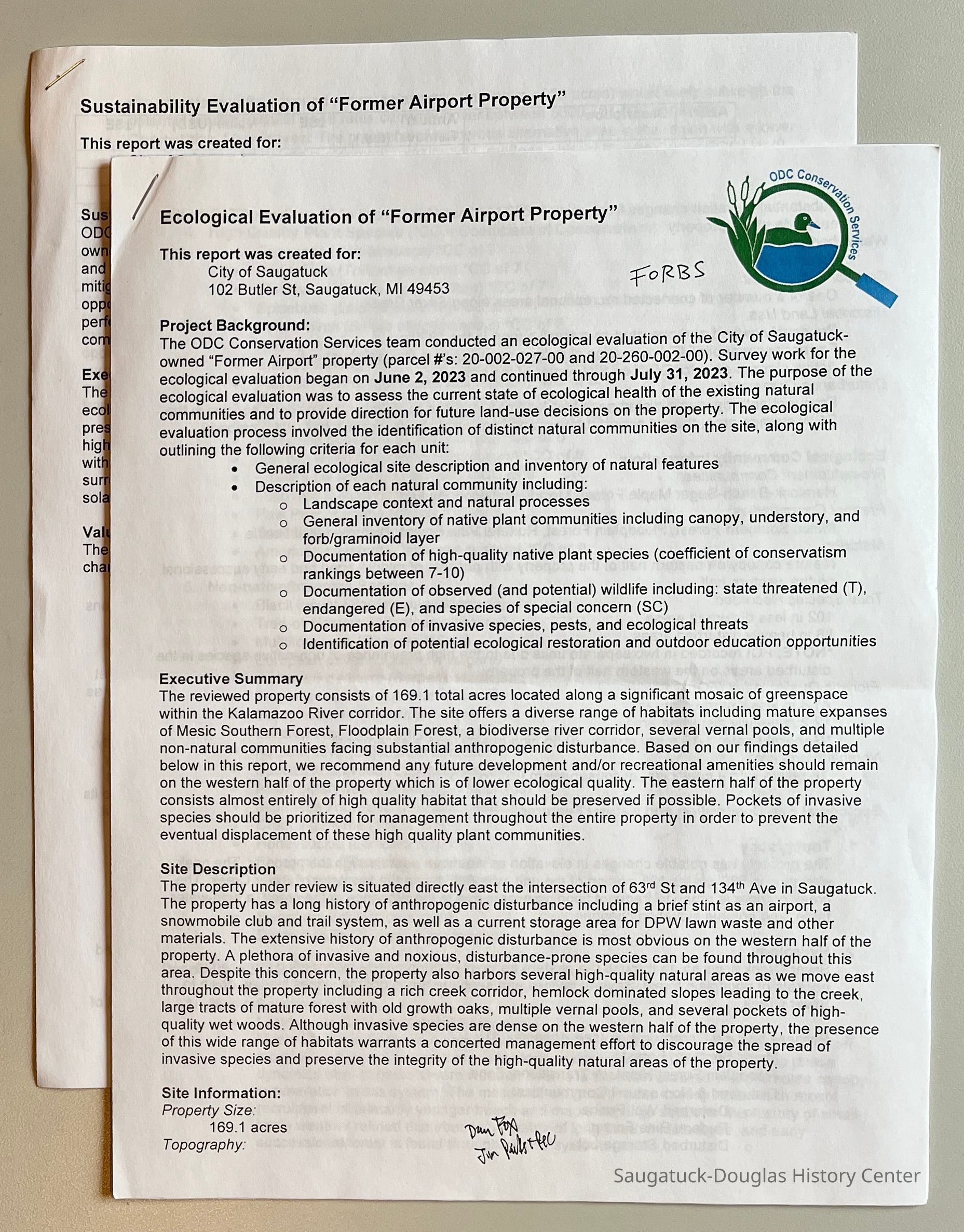 Two ecological surveys produced by the Outdoor Discover Center about a 169-acre parcel of land often referred to as the "Former Airport Property"
