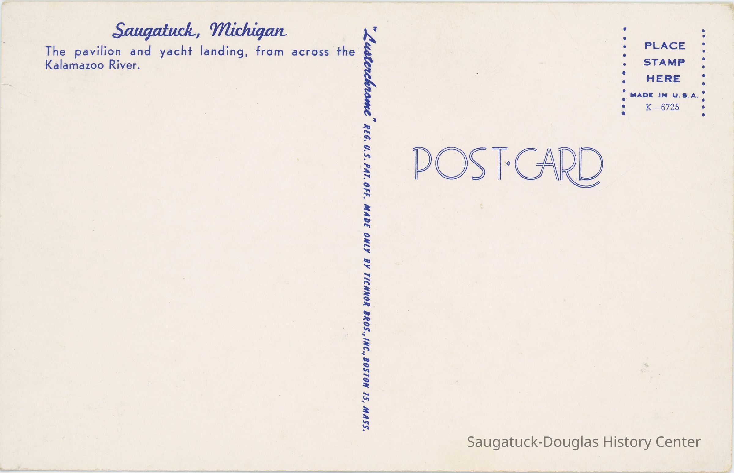 Saugatuck, Michigan The pavilion and yacht landing, from across the Kalamazoo River.