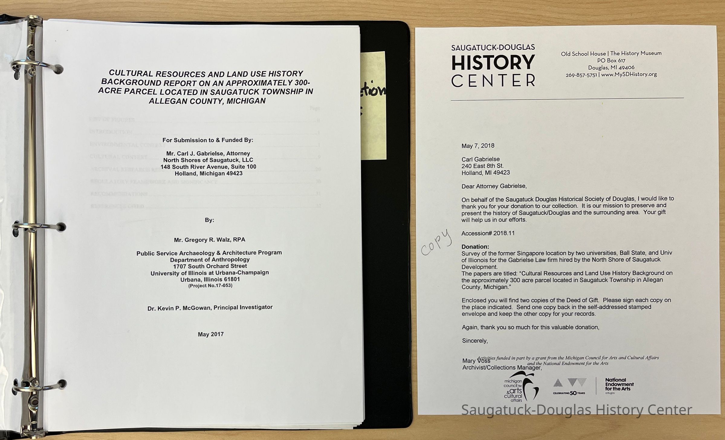 Notes: Both were put in a 3-ring binder with a copy in the file. Status: OK Status By: Mary Voss Status Date: 2018-05-07