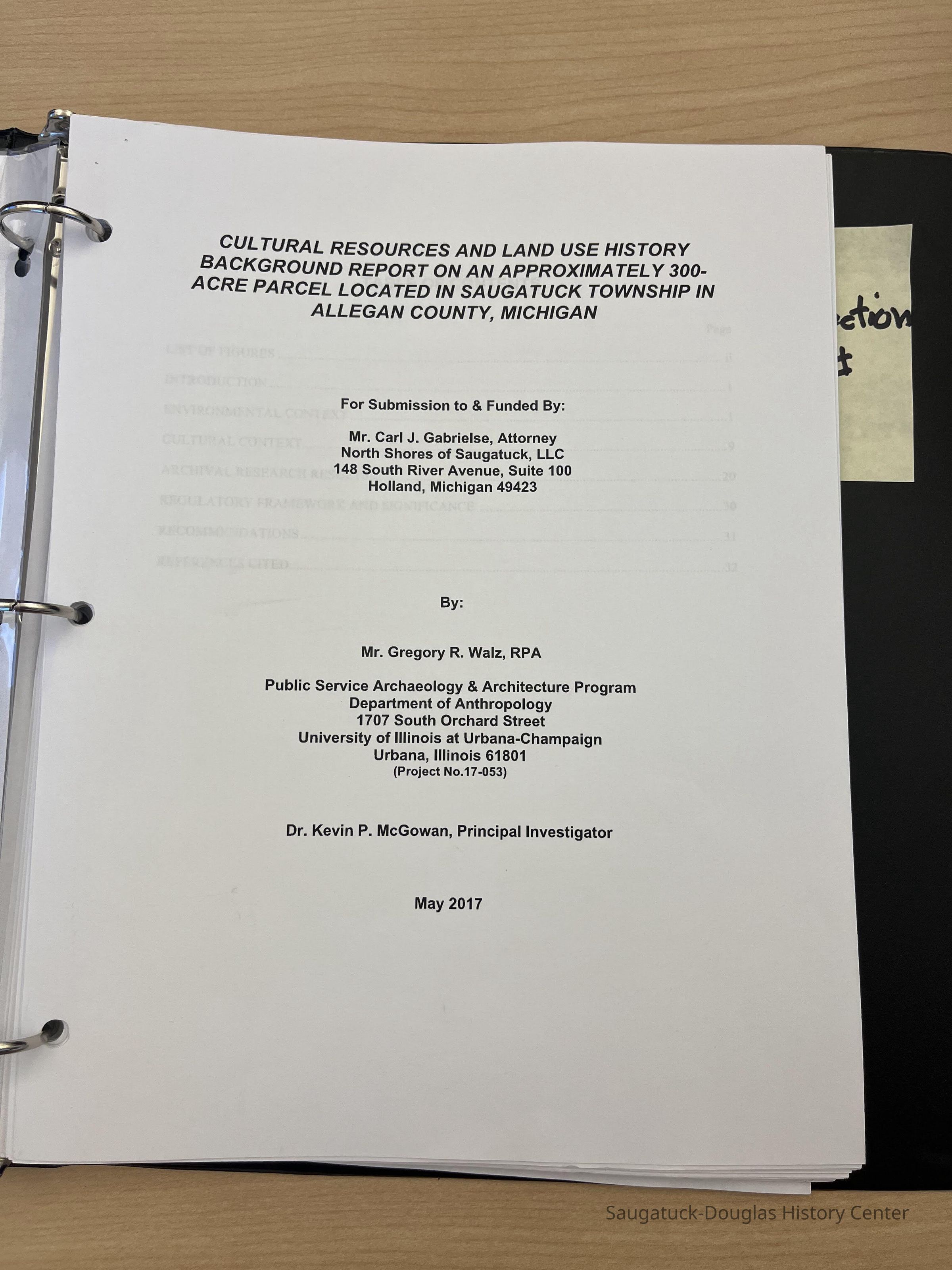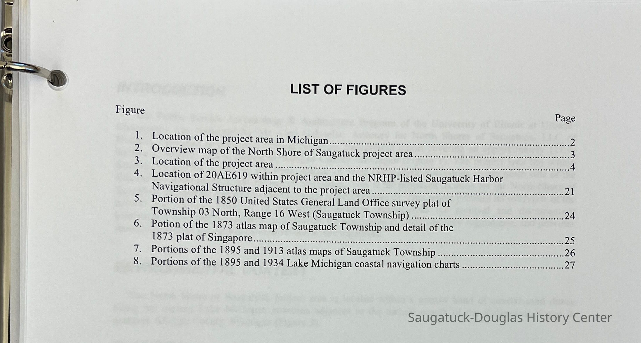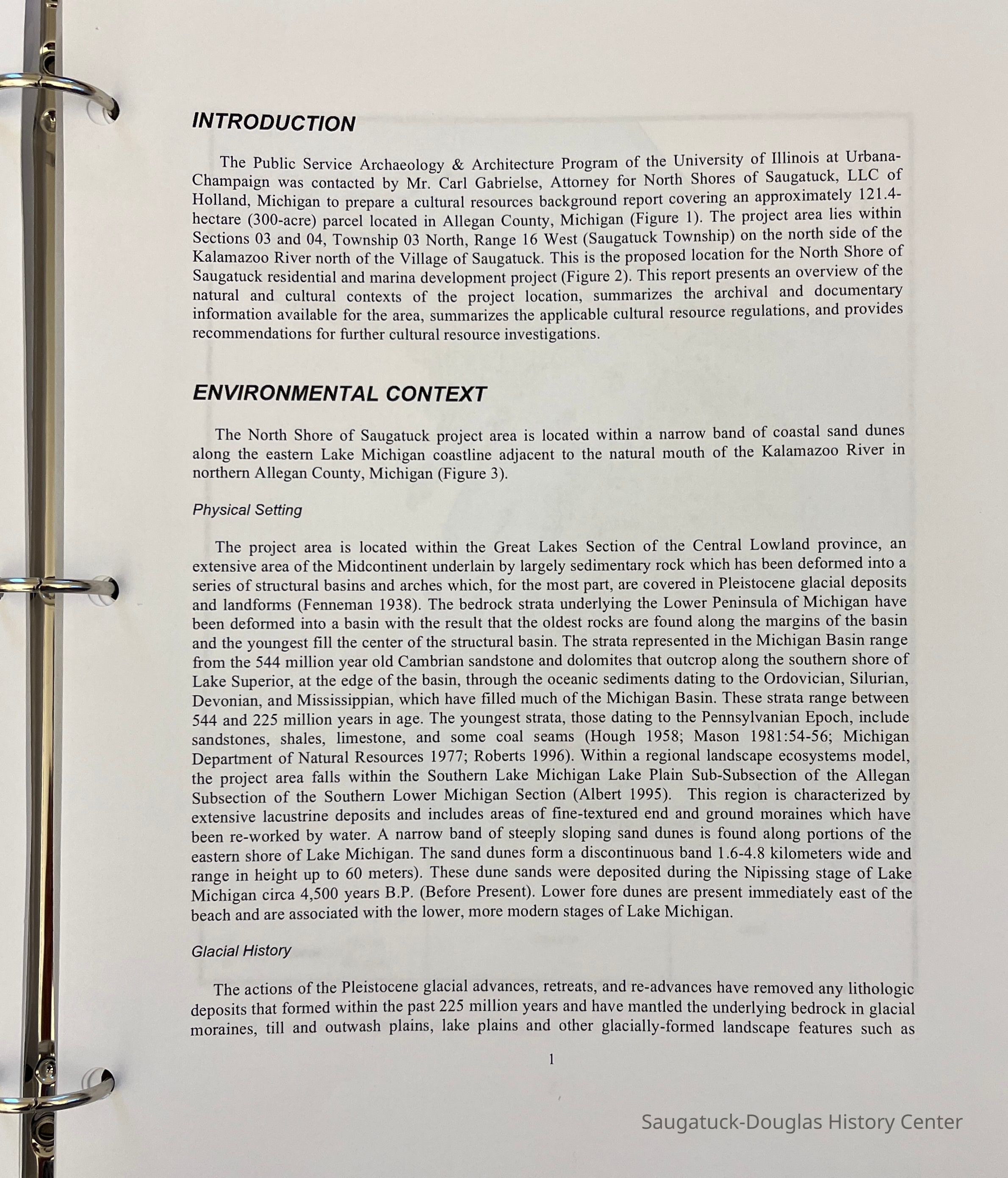 Two surveys done by Ball State University and University of IL at Urbana about the former Singapore site in Saugatuck Township. The survey was titled, "Cultural Resources and Historic Background on the approximately 300 acre parcel located in Saugatuck Township in Allegan County Michigan.