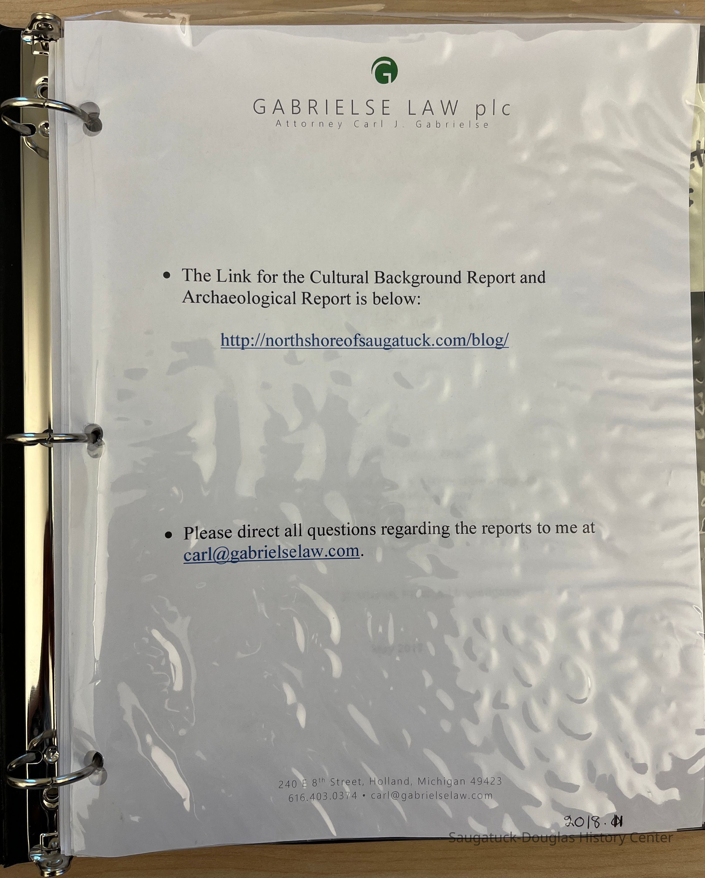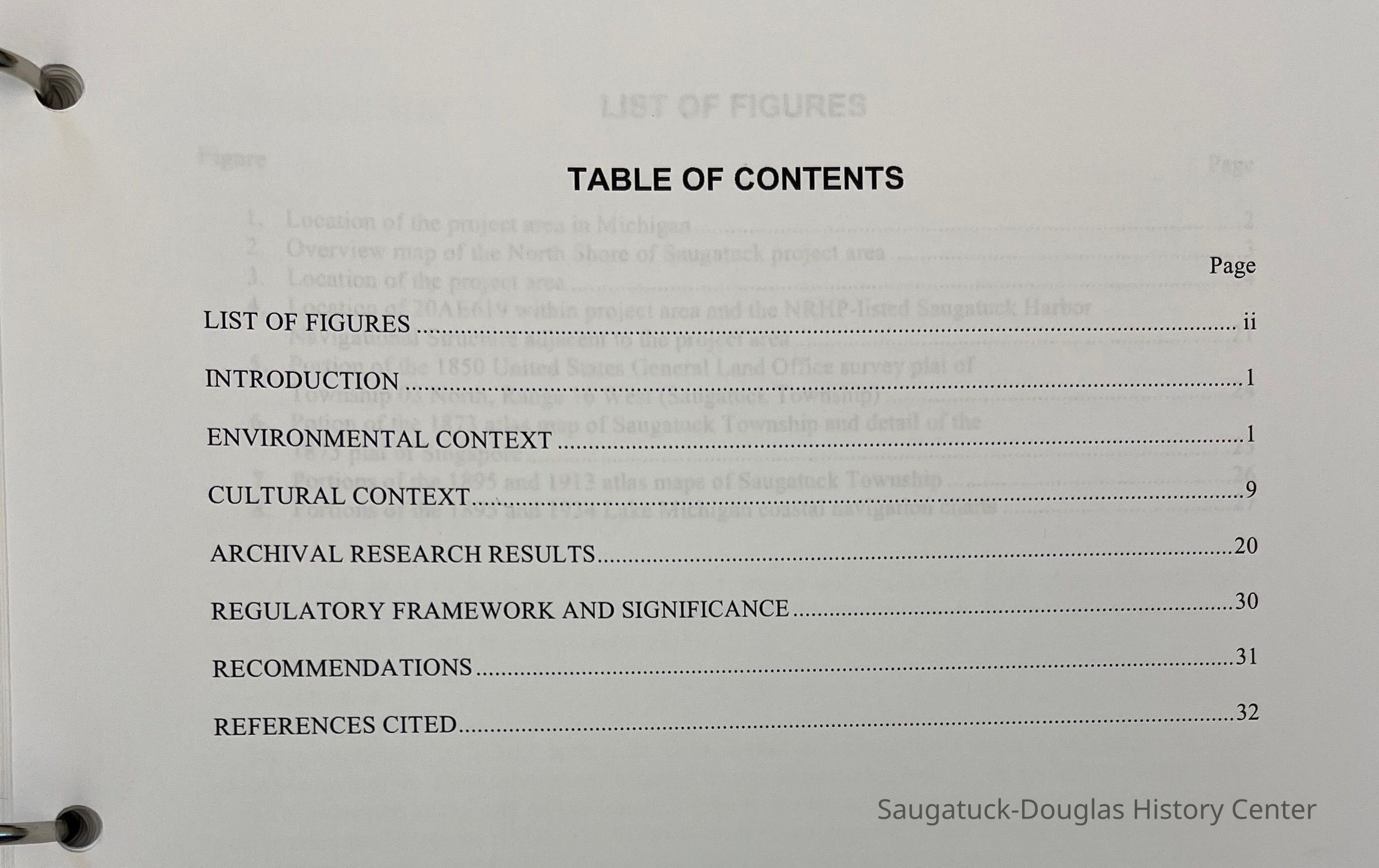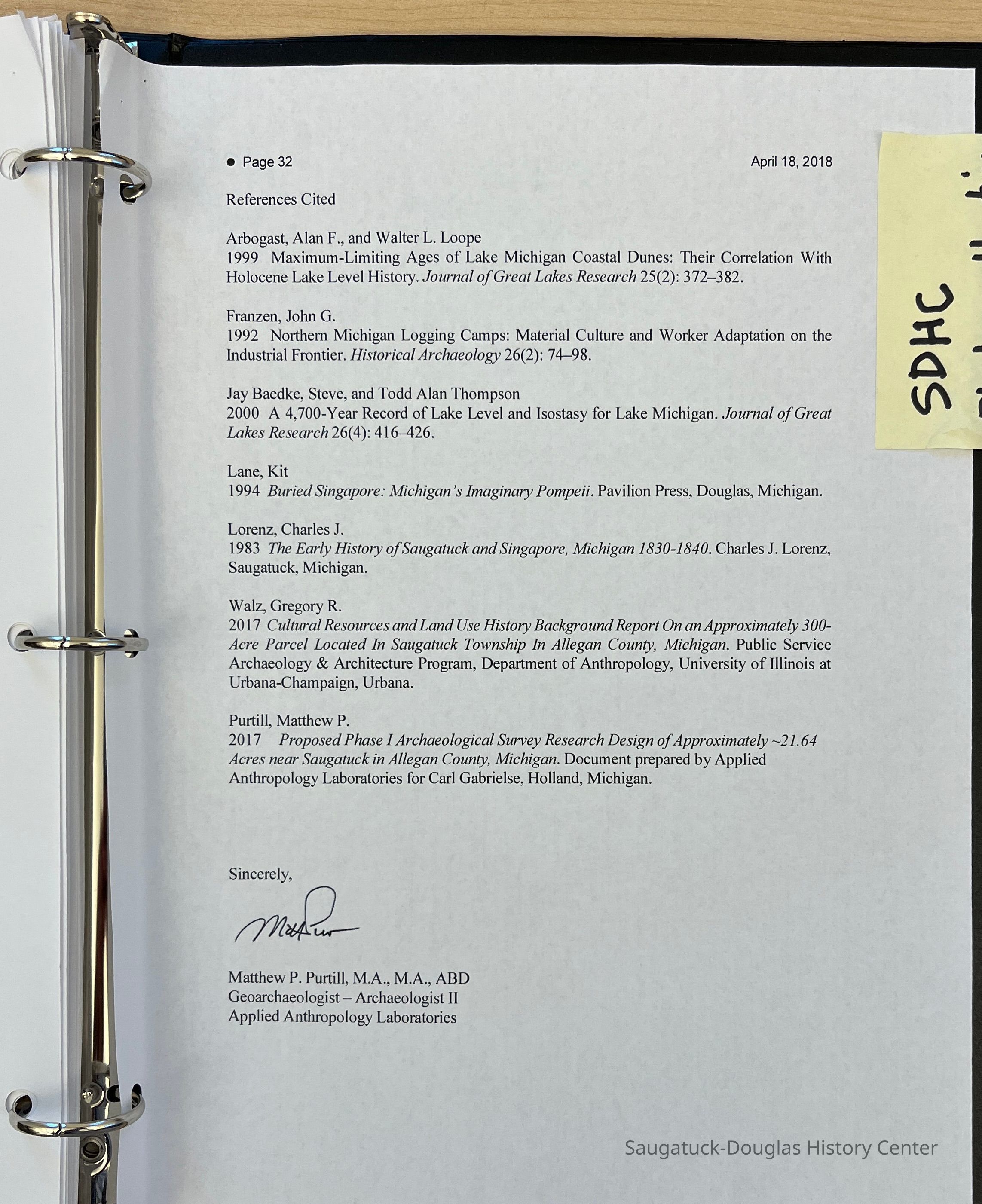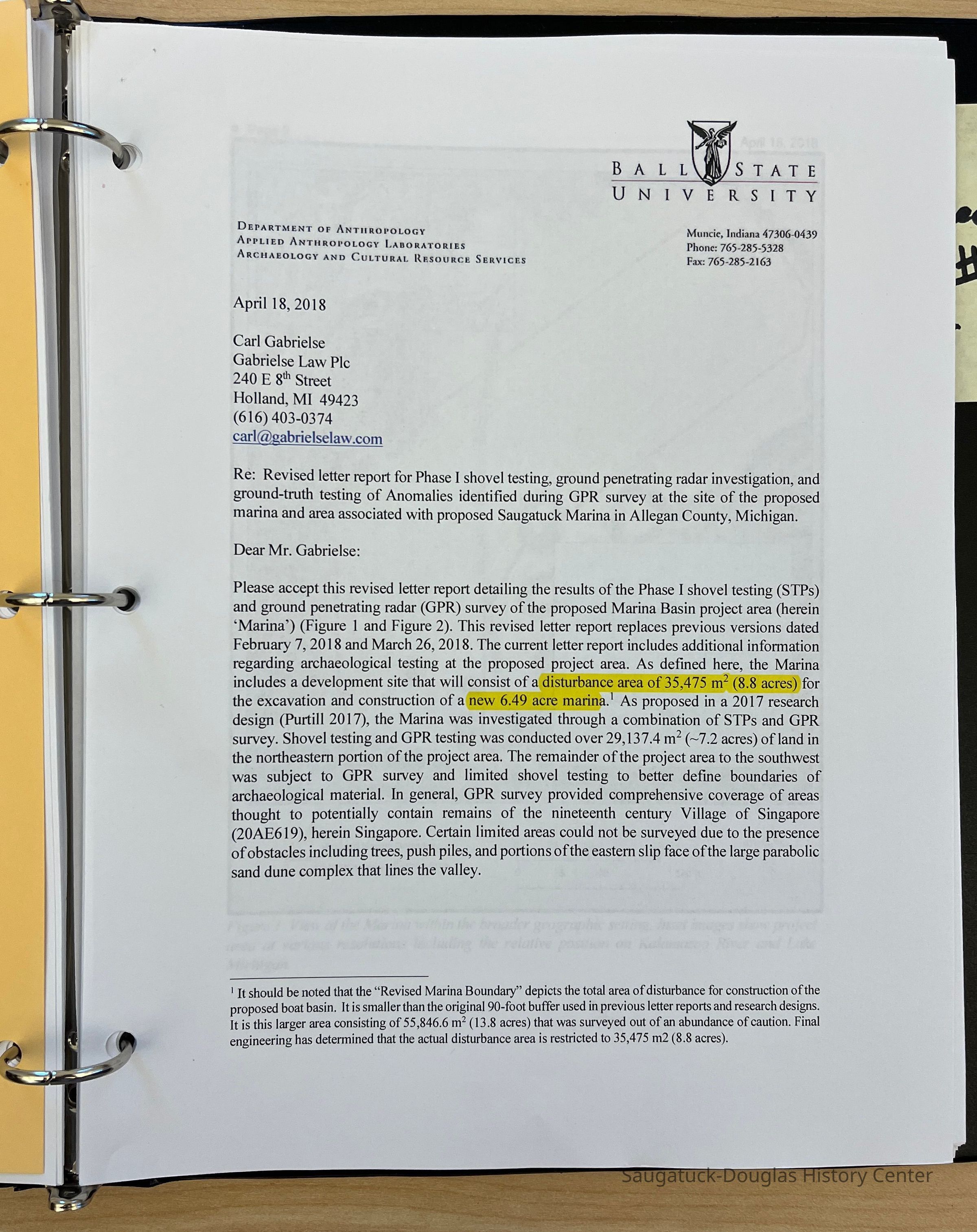 Two surveys done by Ball State University and University of IL at Urbana about the former Singapore site in Saugatuck Township. The survey was titled, "Cultural Resources and Historic Background on the approximately 300 acre parcel located in Saugatuck Township in Allegan County Michigan.