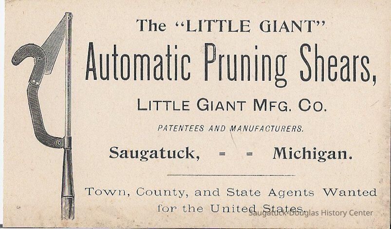 The "Little Giant" Automatic Pruning Shears, Little Giant Mfg. Co. Patentees and manufacturers Saugatuck, Michigan
