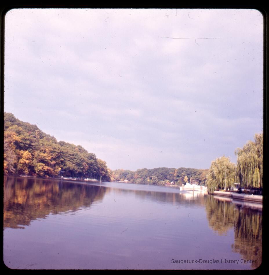 One slide of the Kalamazoo River with fall colors on the trees. No date