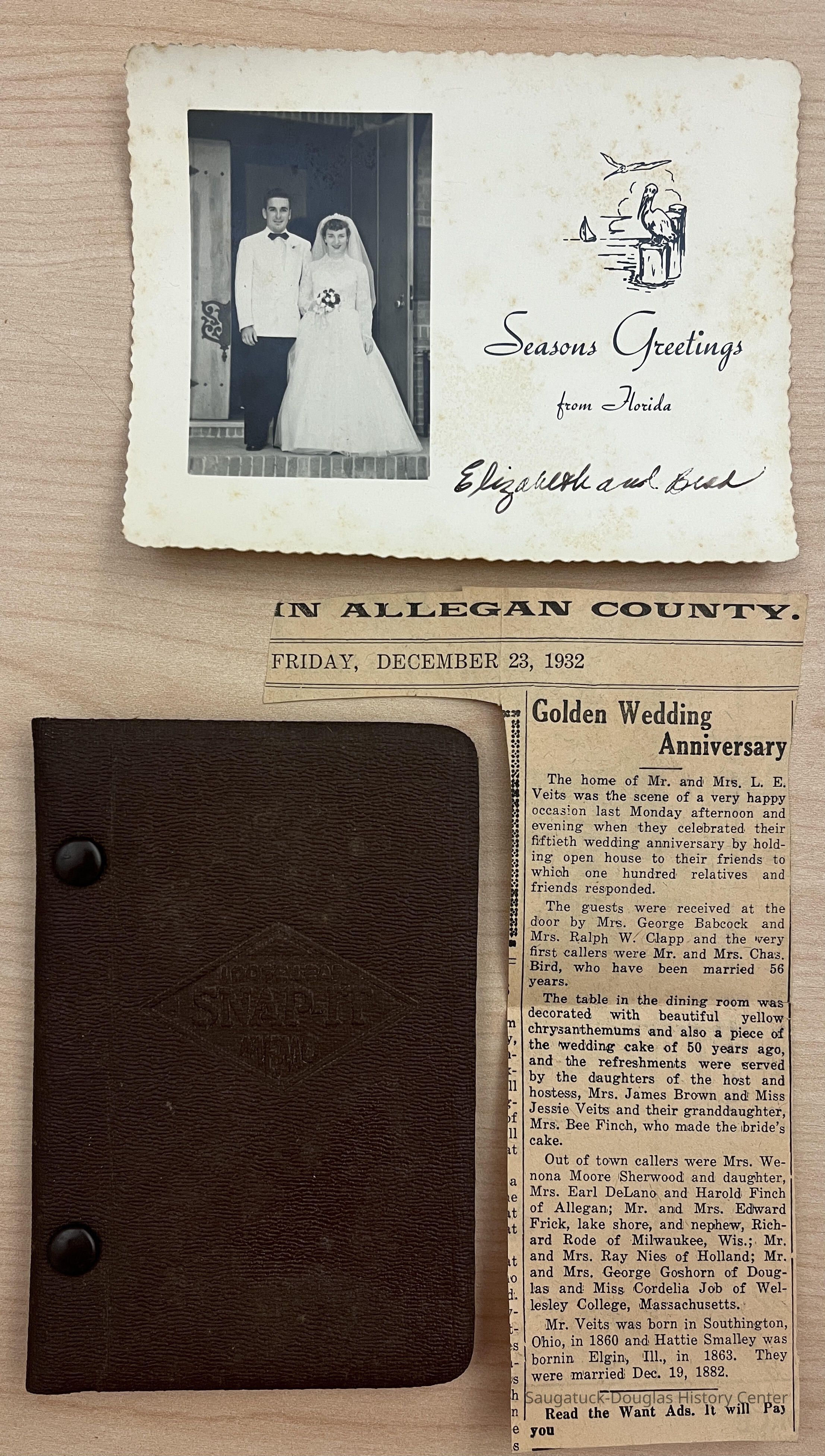 Dec. 23, 1932 newspaper clipping with headline "Golden Wedding Anniversary" of Mr. and Mrs. L.E. Veits.