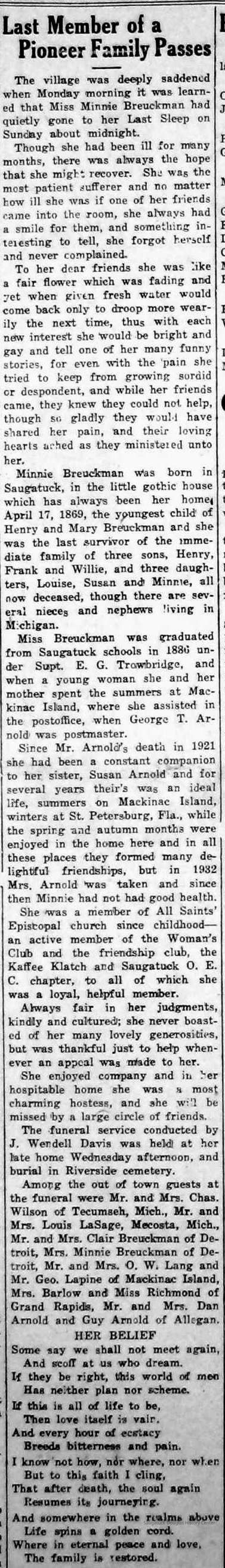 Breuckman, Minnie 1869-1934Saugatuck-Douglas District LibrarySaugatuck Woman's Club 1904-present