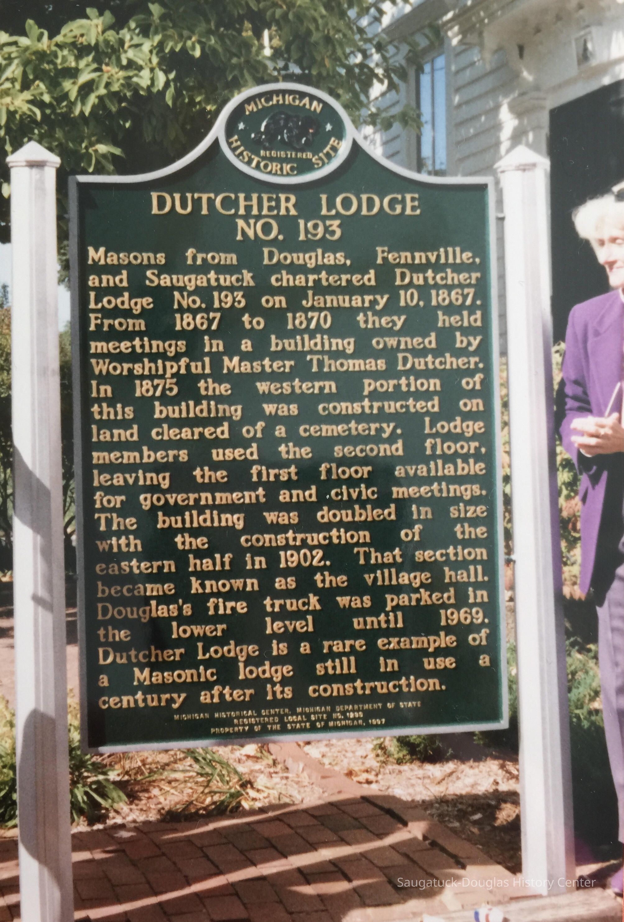 Anthrop, Judy (Bowman)Douglas Historical Preservation CommitteeLorenz, Charles J. 1942-1994Birkholz, Patty (Knoll) 1944-2018Olde House Antiques/Schoeneich/Dr. Asa Goodrich houseDutcher Lodge building 1867-400 S Union/Bonnie Meadows/Graham residenceSchoeneich, Dee