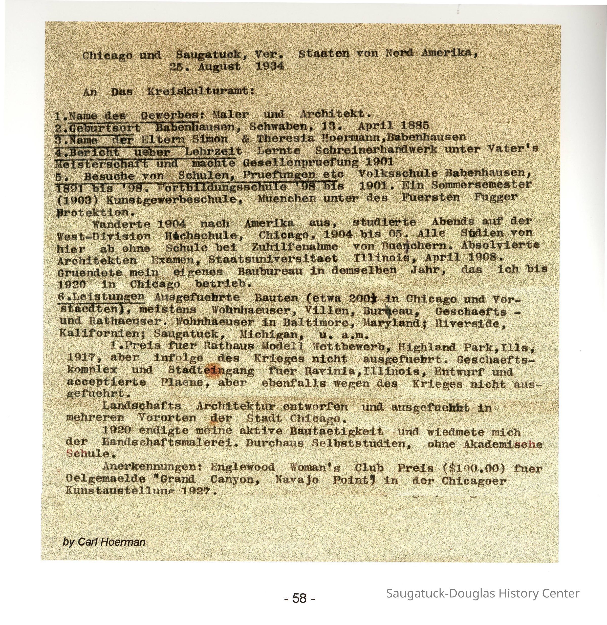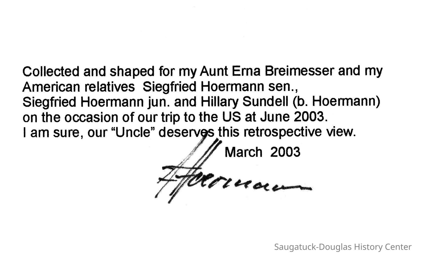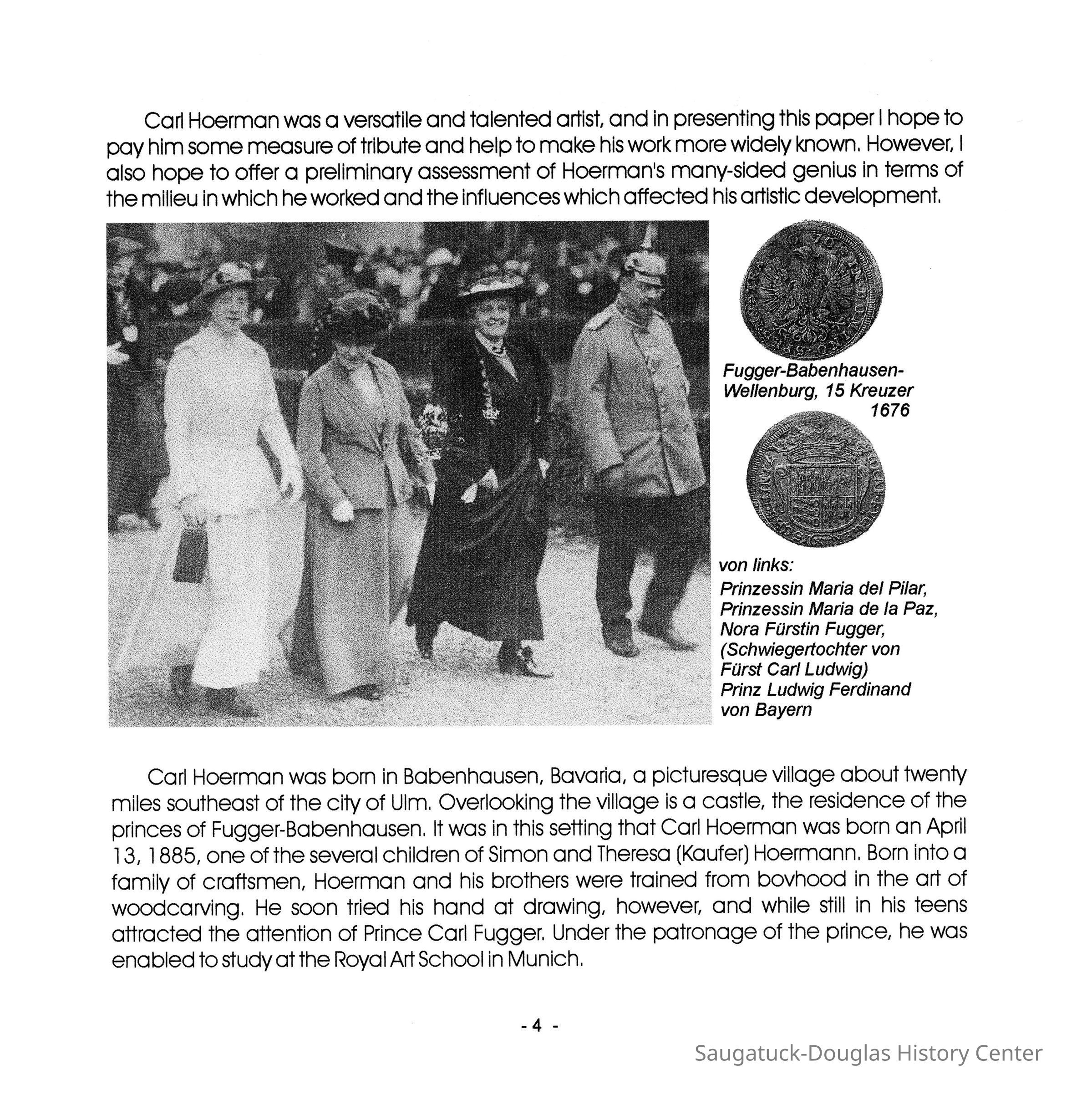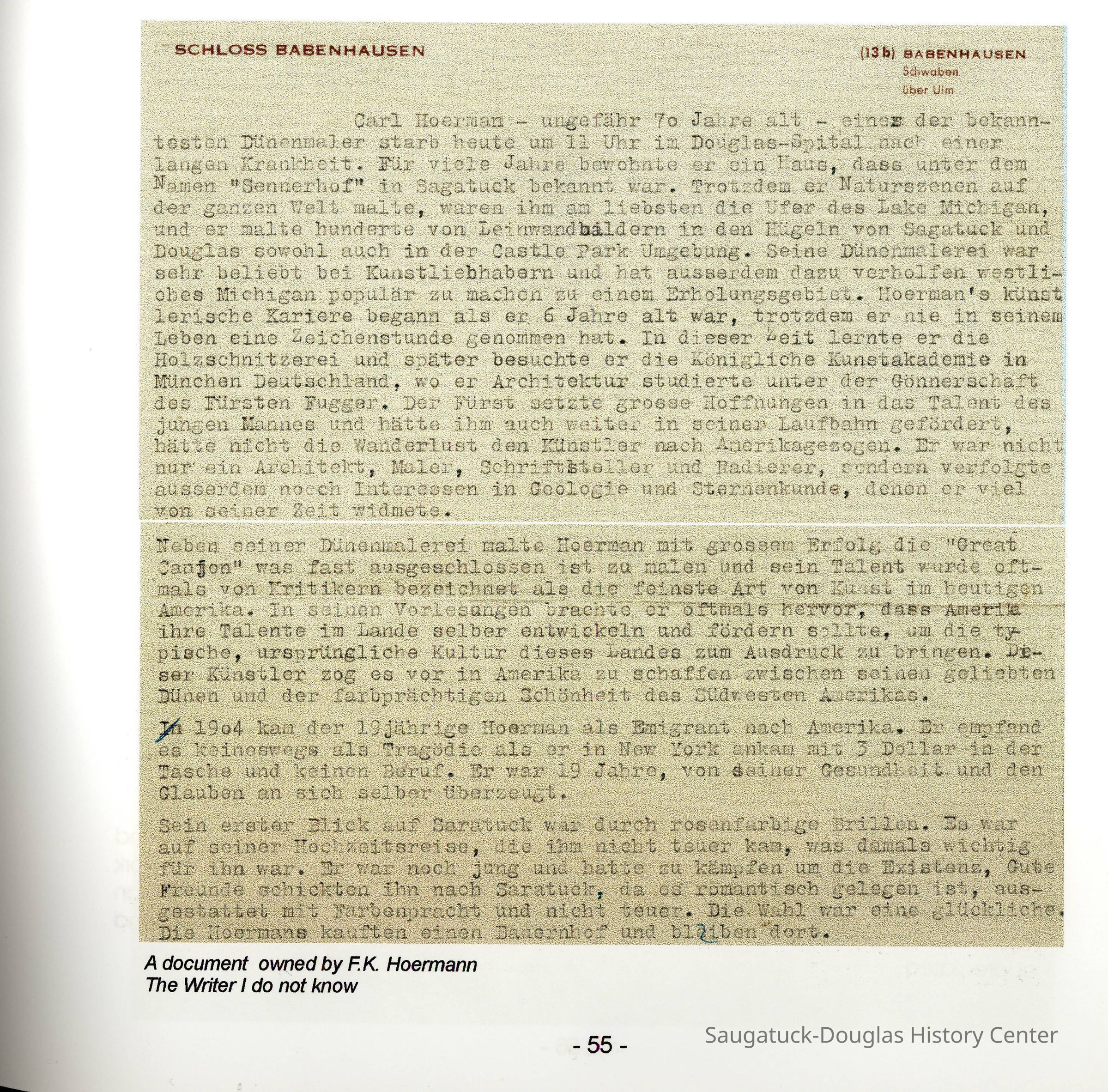 PDF emailed to Sally Winthers from Chris Yoder summer 2022. According to Mr. Yoder, "I copied things when the great-nephew Siegfried Jr and his wife lived in the Chalet. A Hoerman relative in Germany contributed to it."