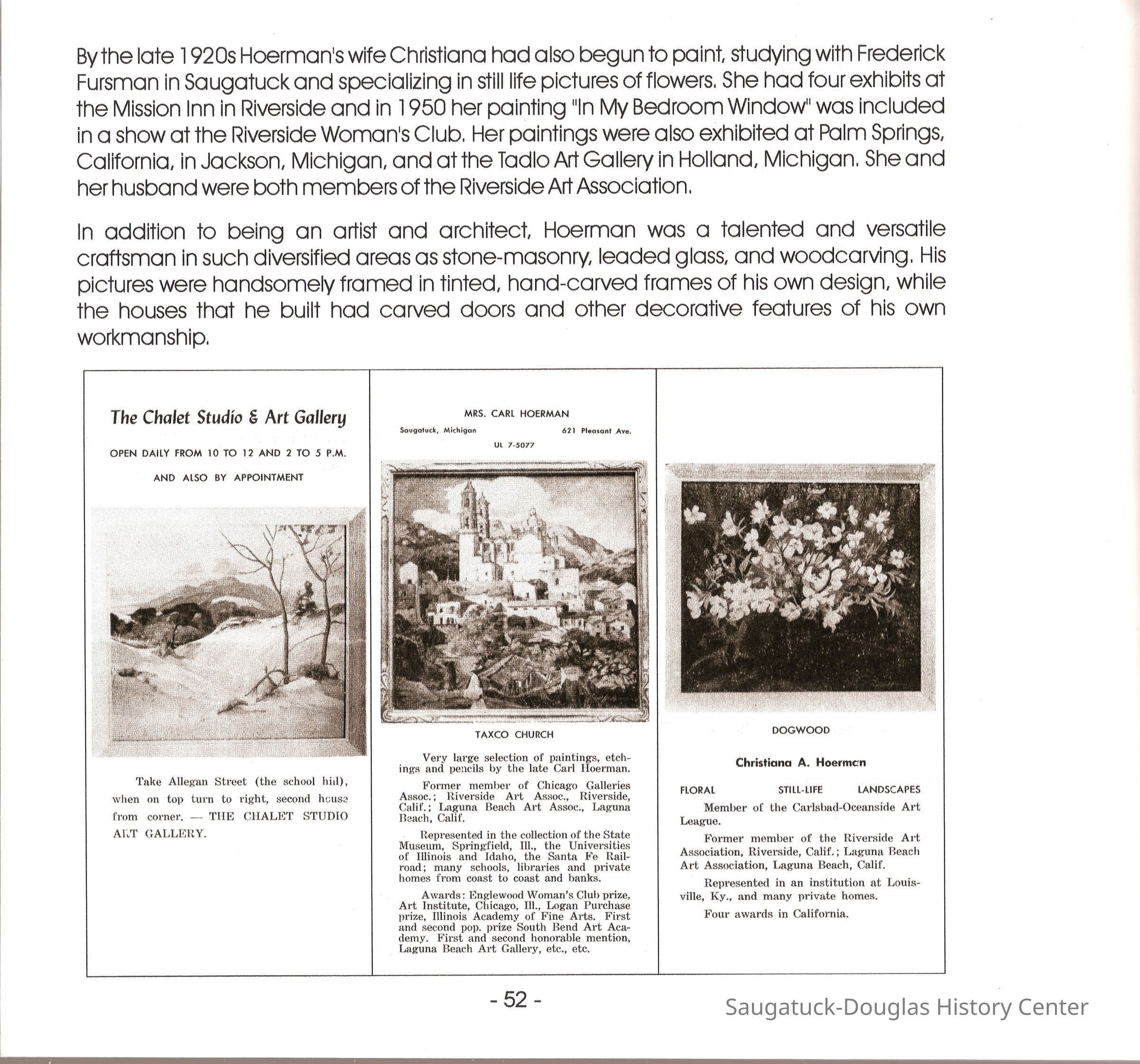 Hoerman, Carl 1885-1955Hoerman, Christiana A.Chalet Studio and Art Gallery