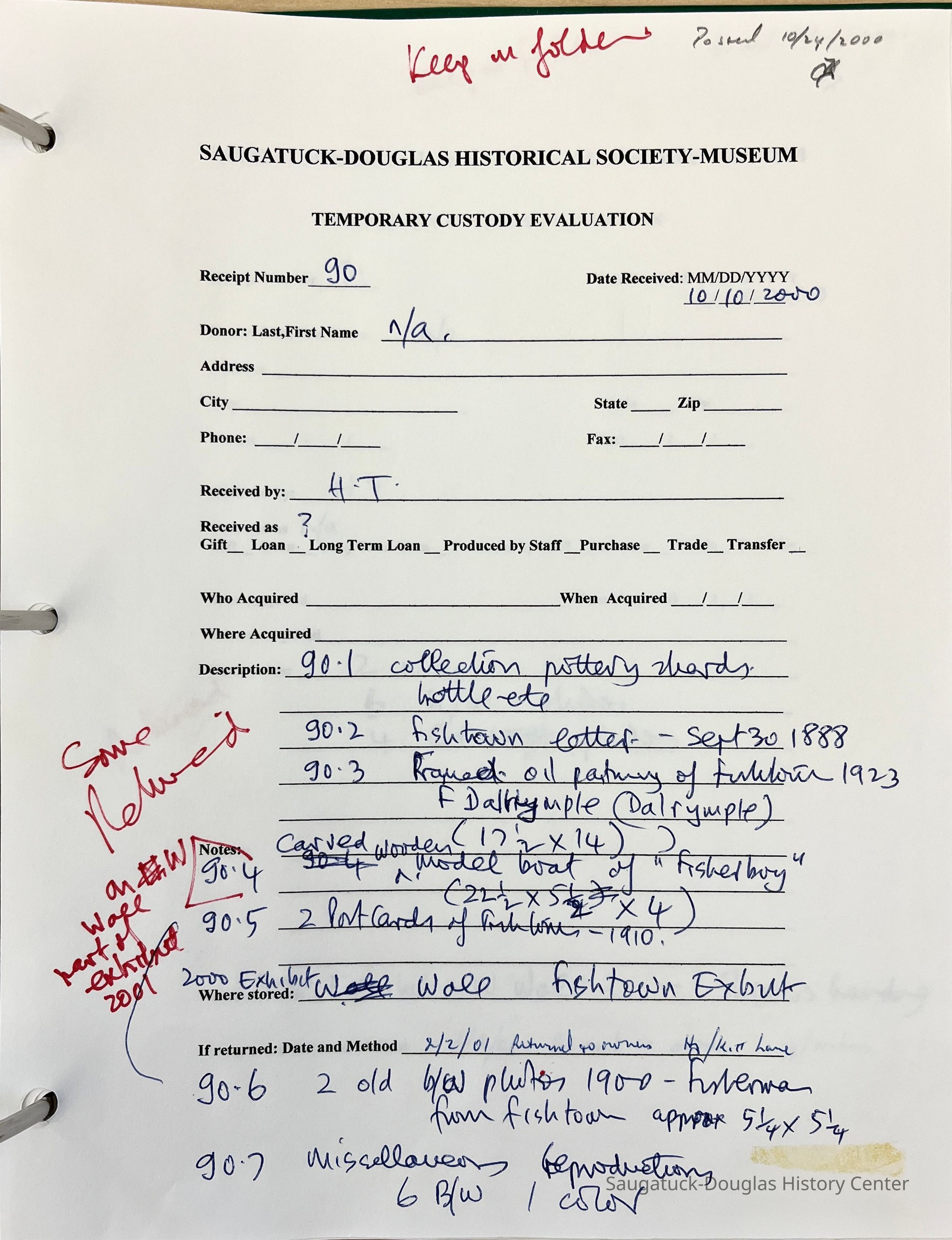 Collection of items "picked up off shore at Fishtown during low-water year 2000"