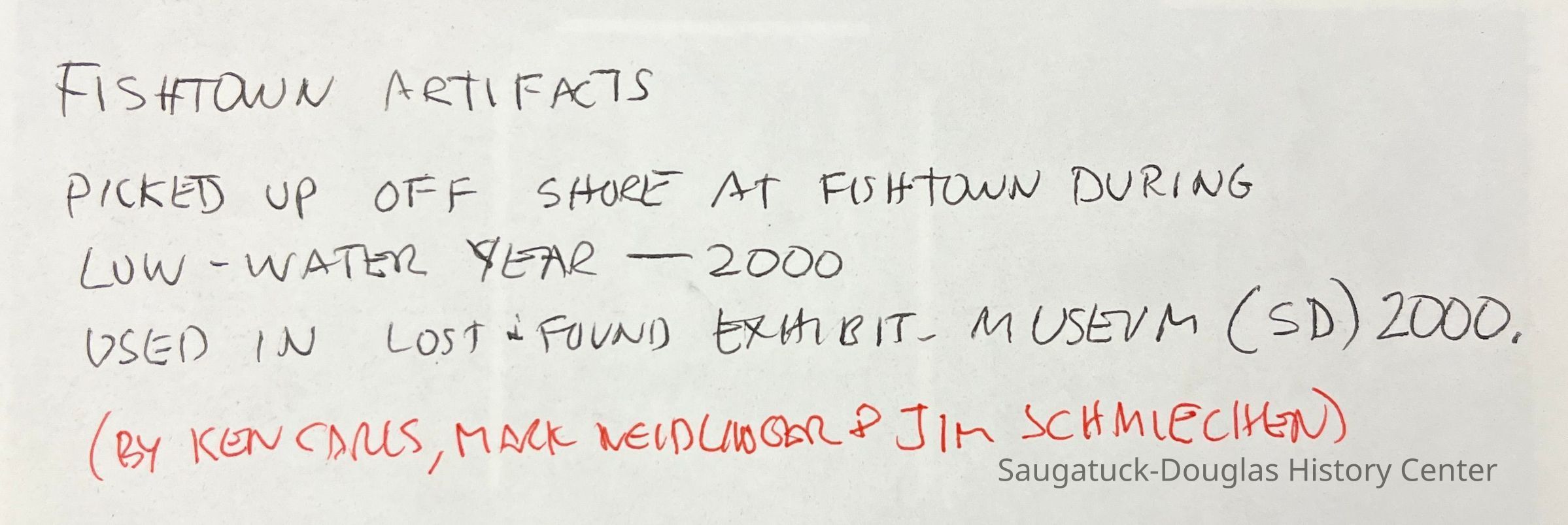 These items were displayed in the SDHS's 2000 museum exhibit "Lost and Found" The items were found by Ken Carls, Mark Neidlinger and Jim Schmiechen.