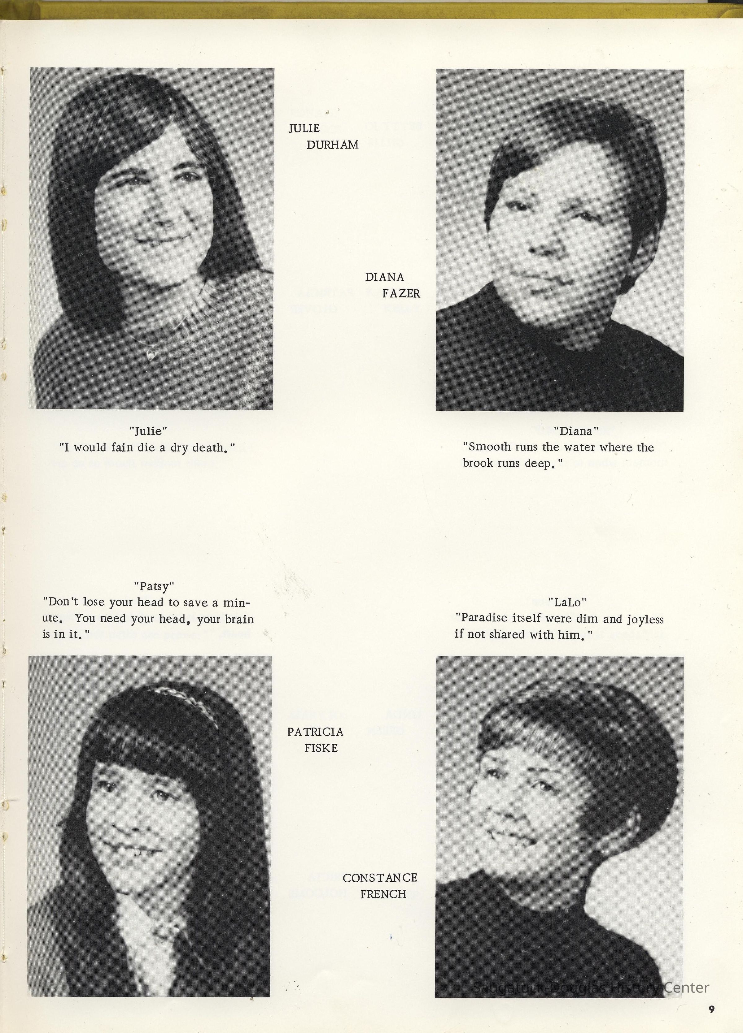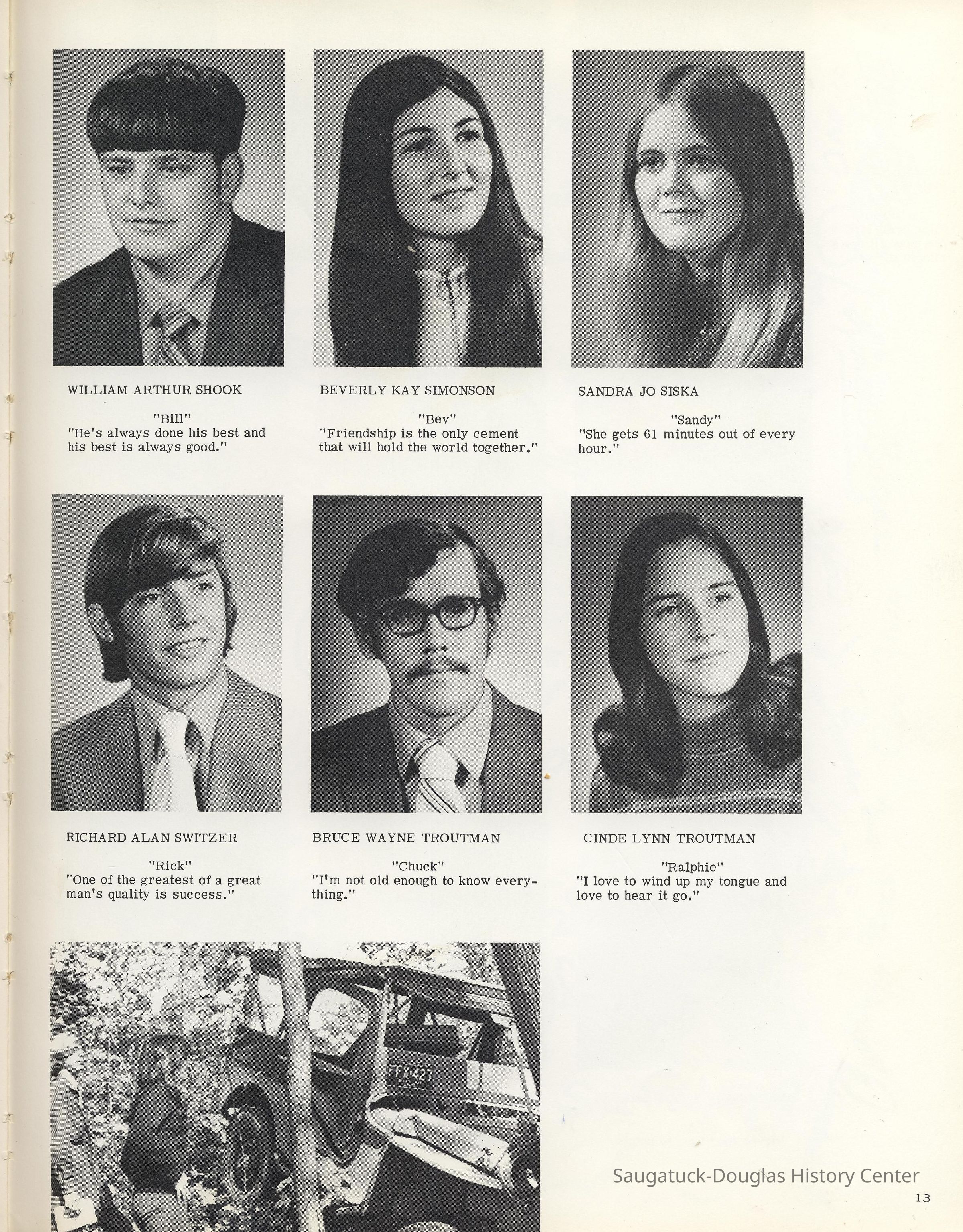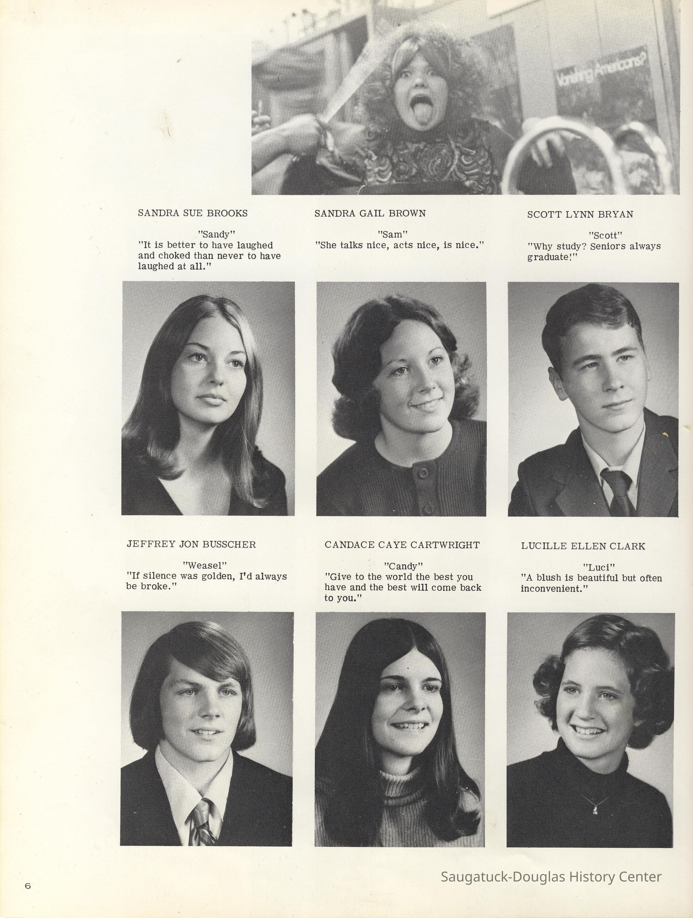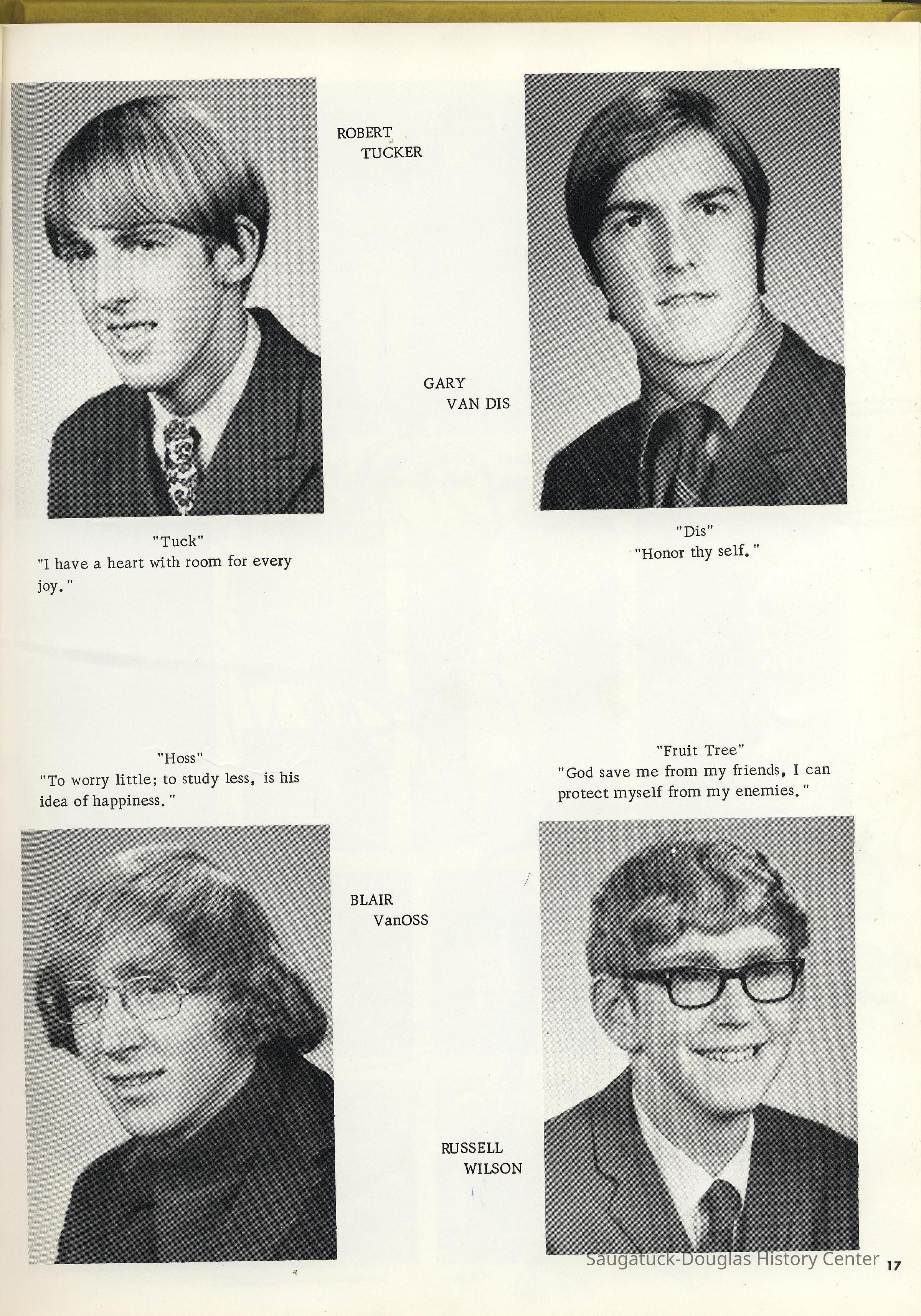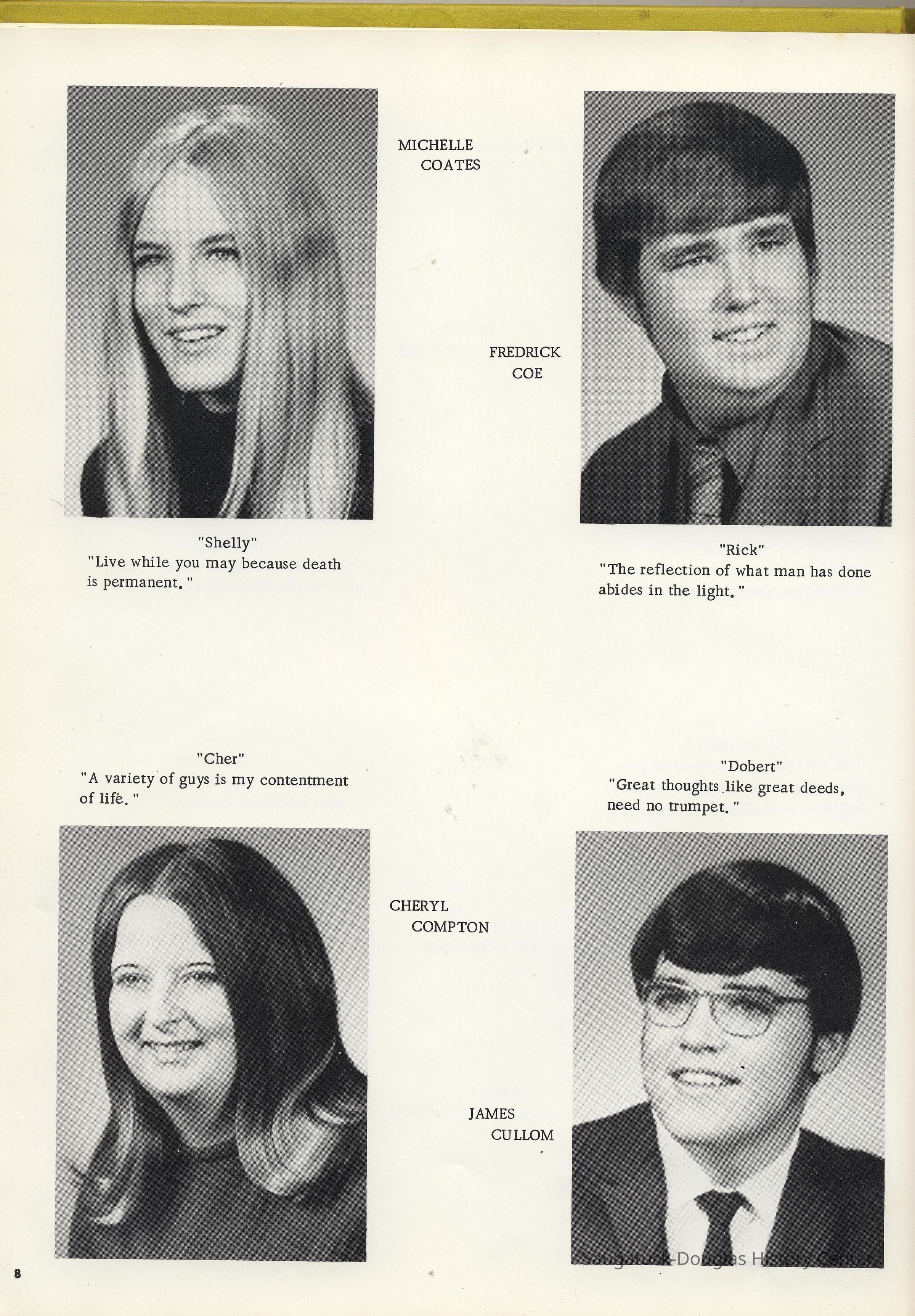 Senior portraits from of the class of 1970, class of 1971 and class of 1972 as printed in Saugatuck High School yearbooks. The yearbook pages were photographed by Chris Yoder in 2009.