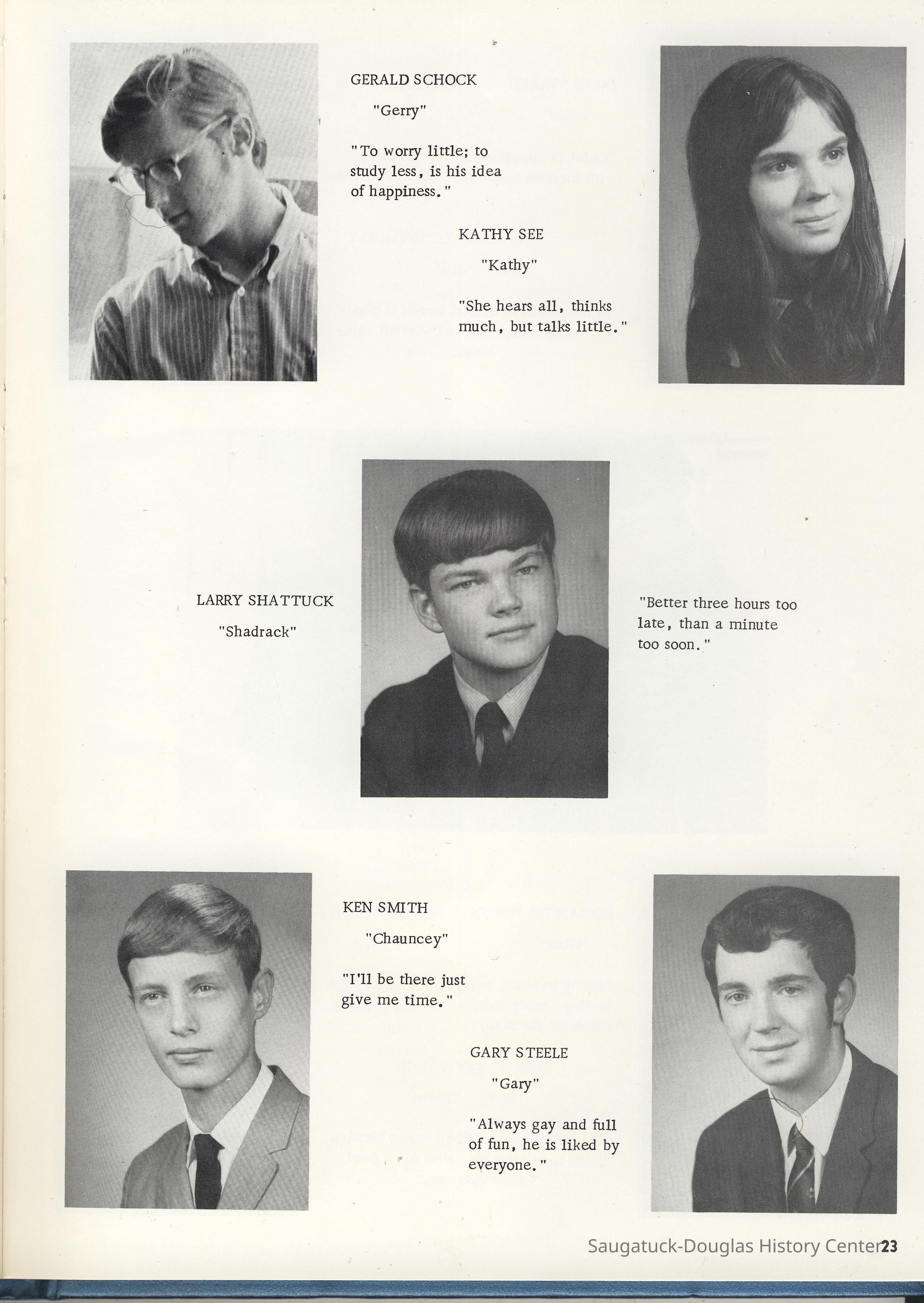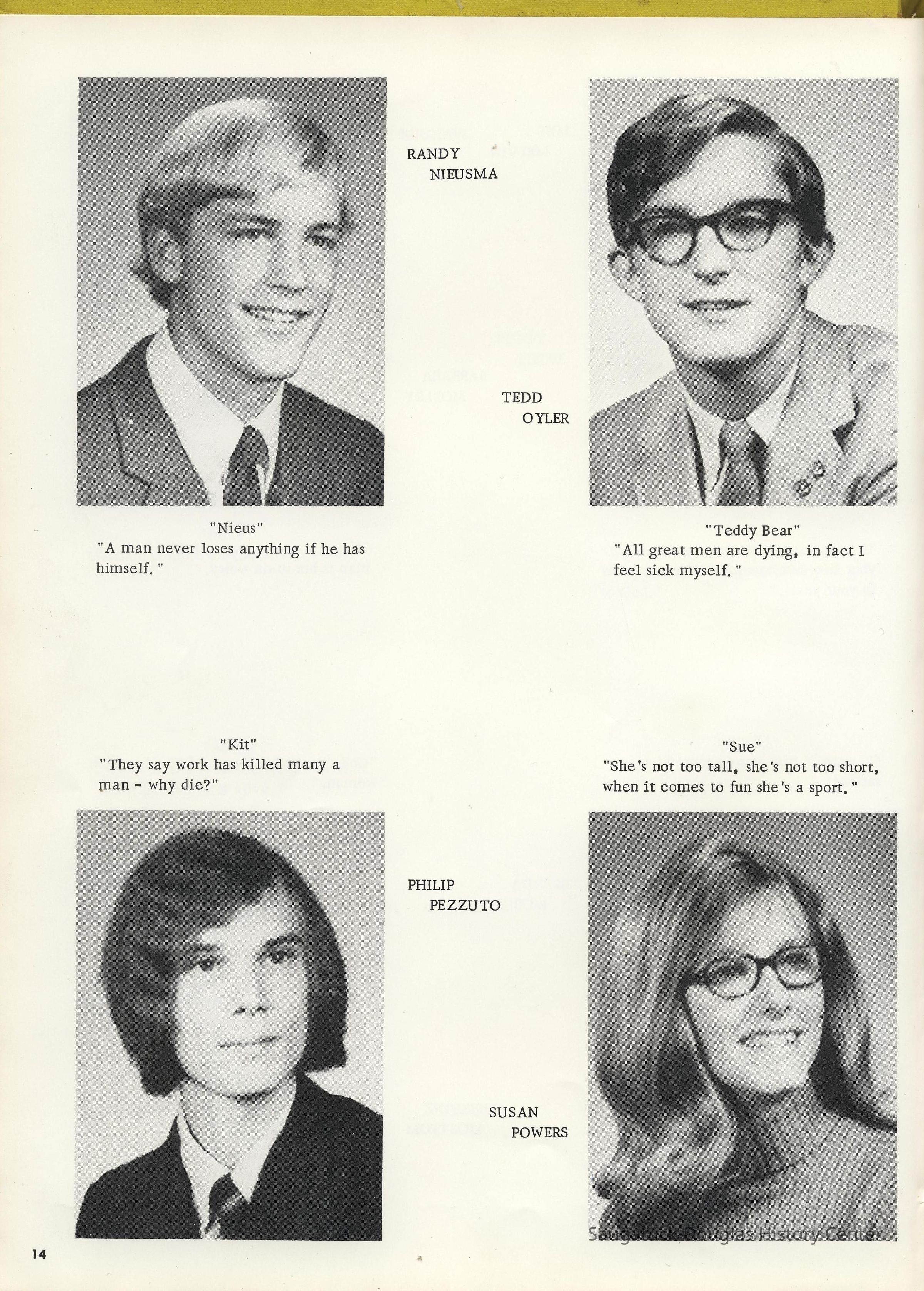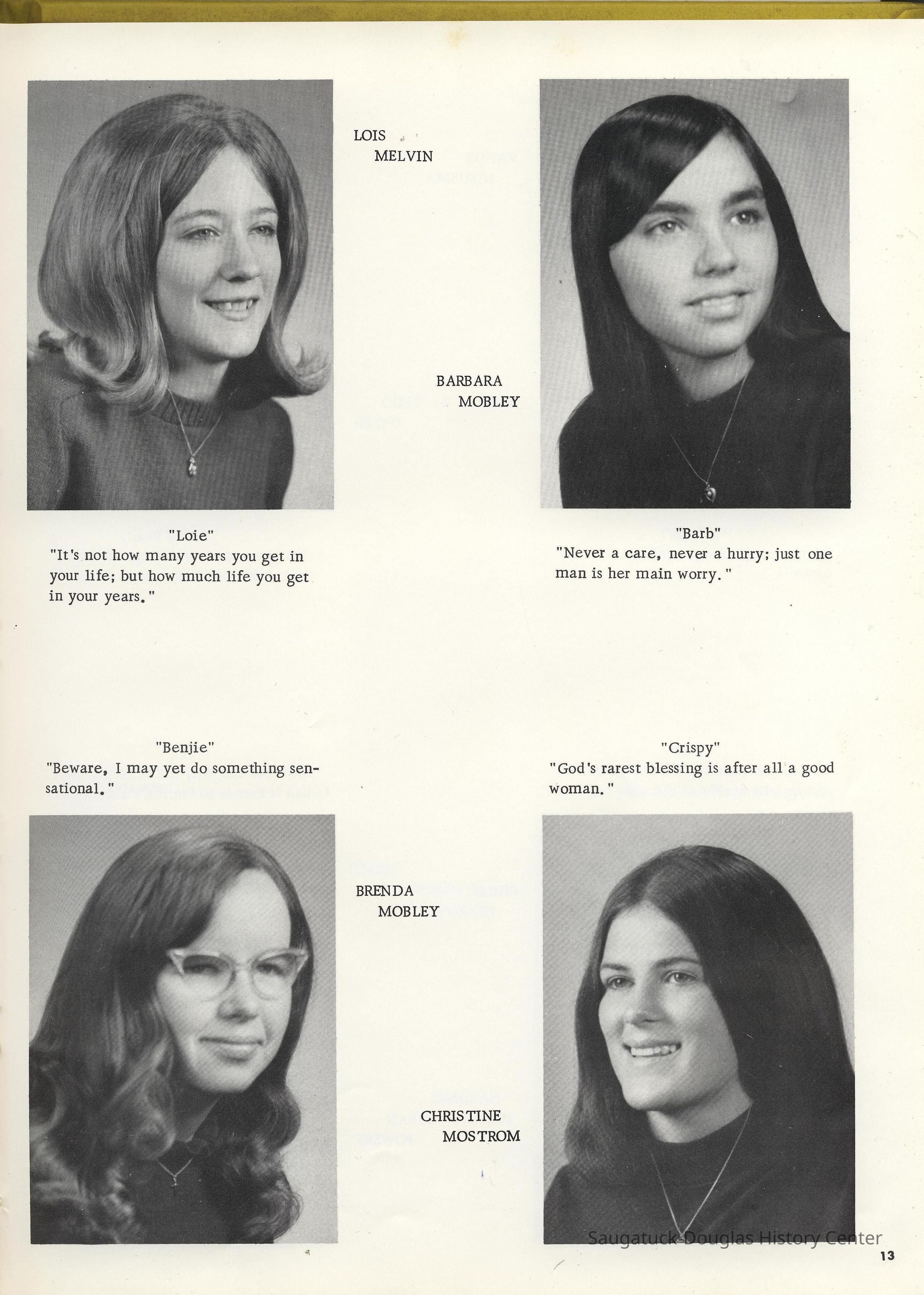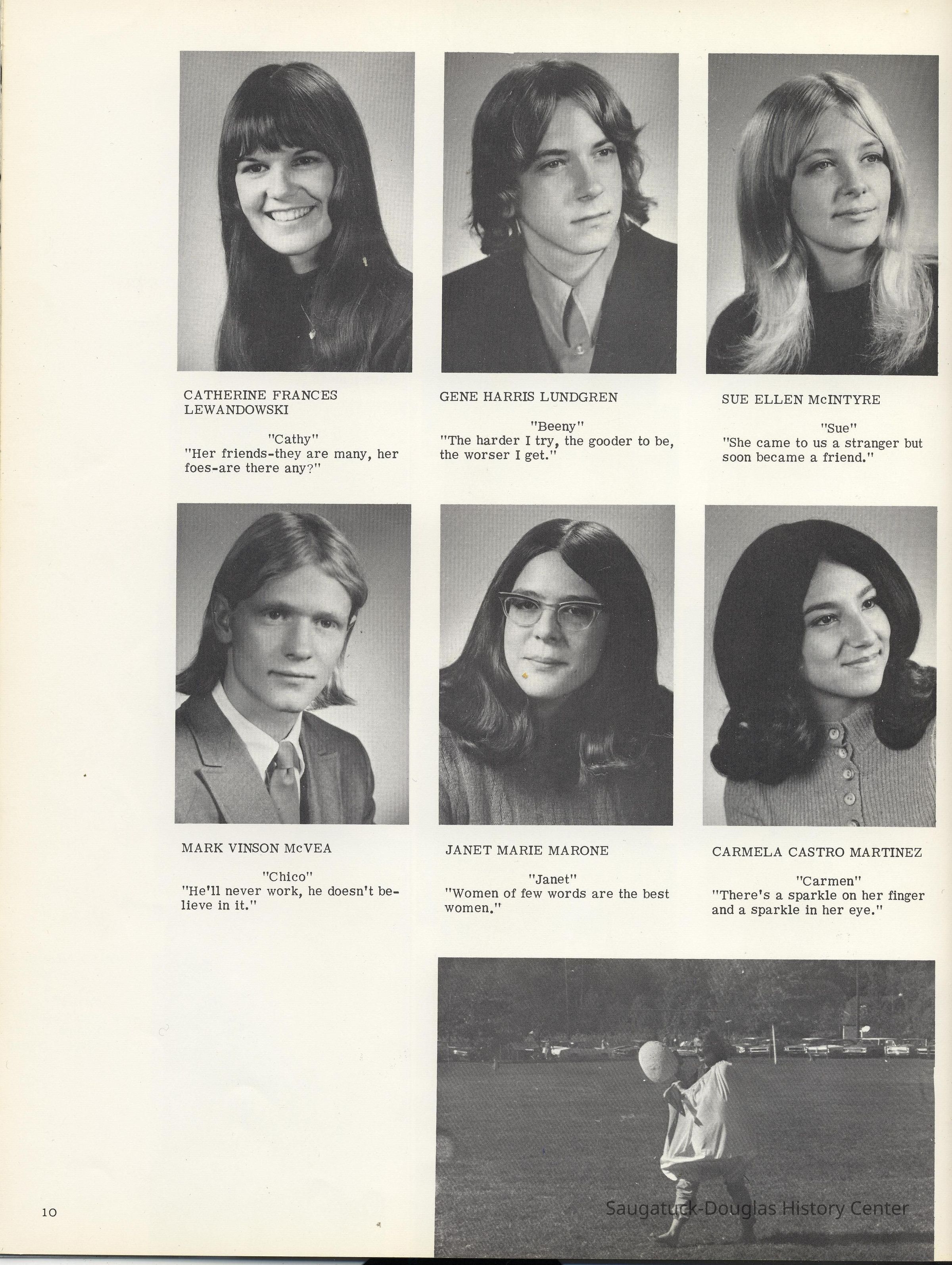 Senior portraits from of the class of 1970, class of 1971 and class of 1972 as printed in Saugatuck High School yearbooks. The yearbook pages were photographed by Chris Yoder in 2009.