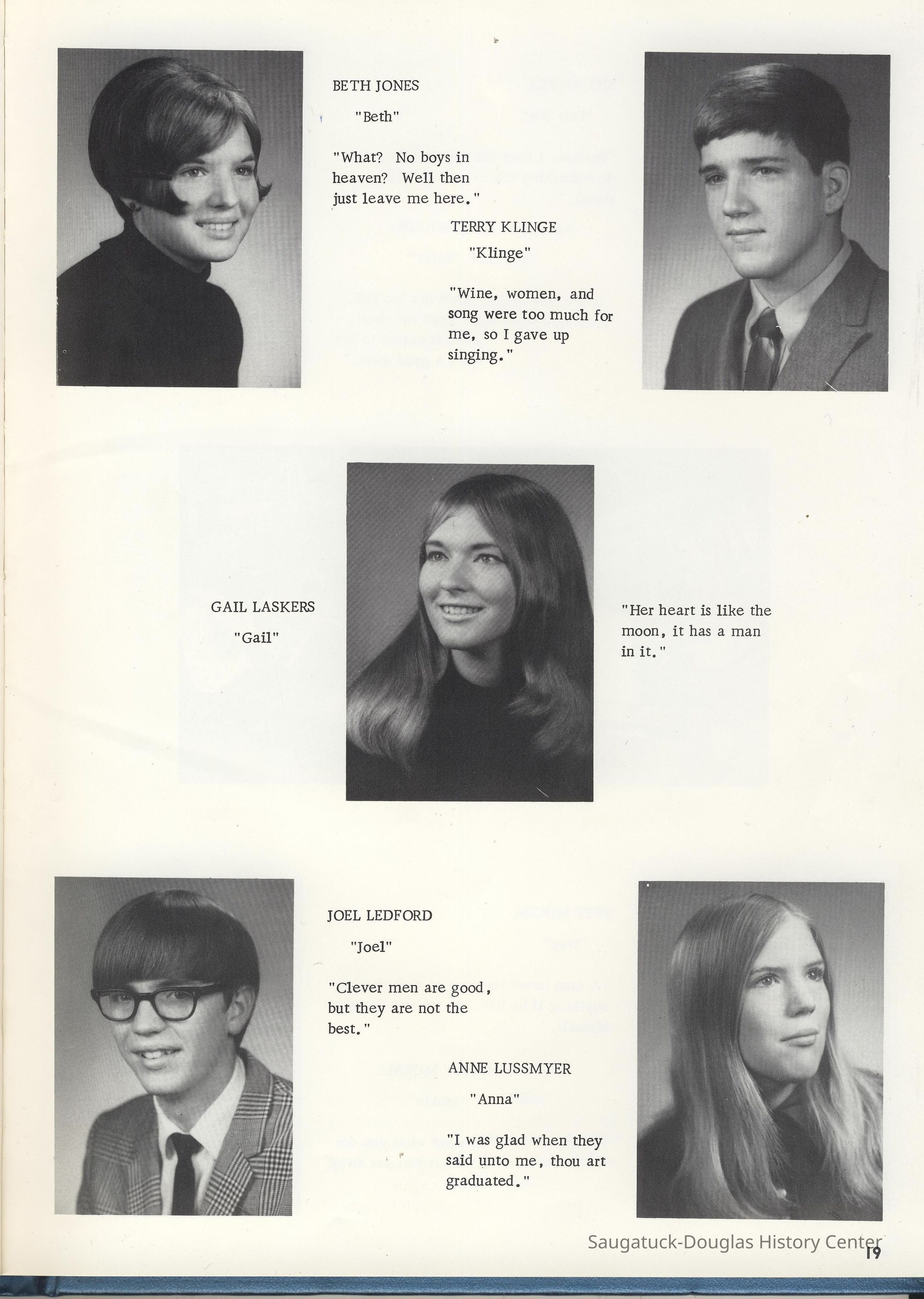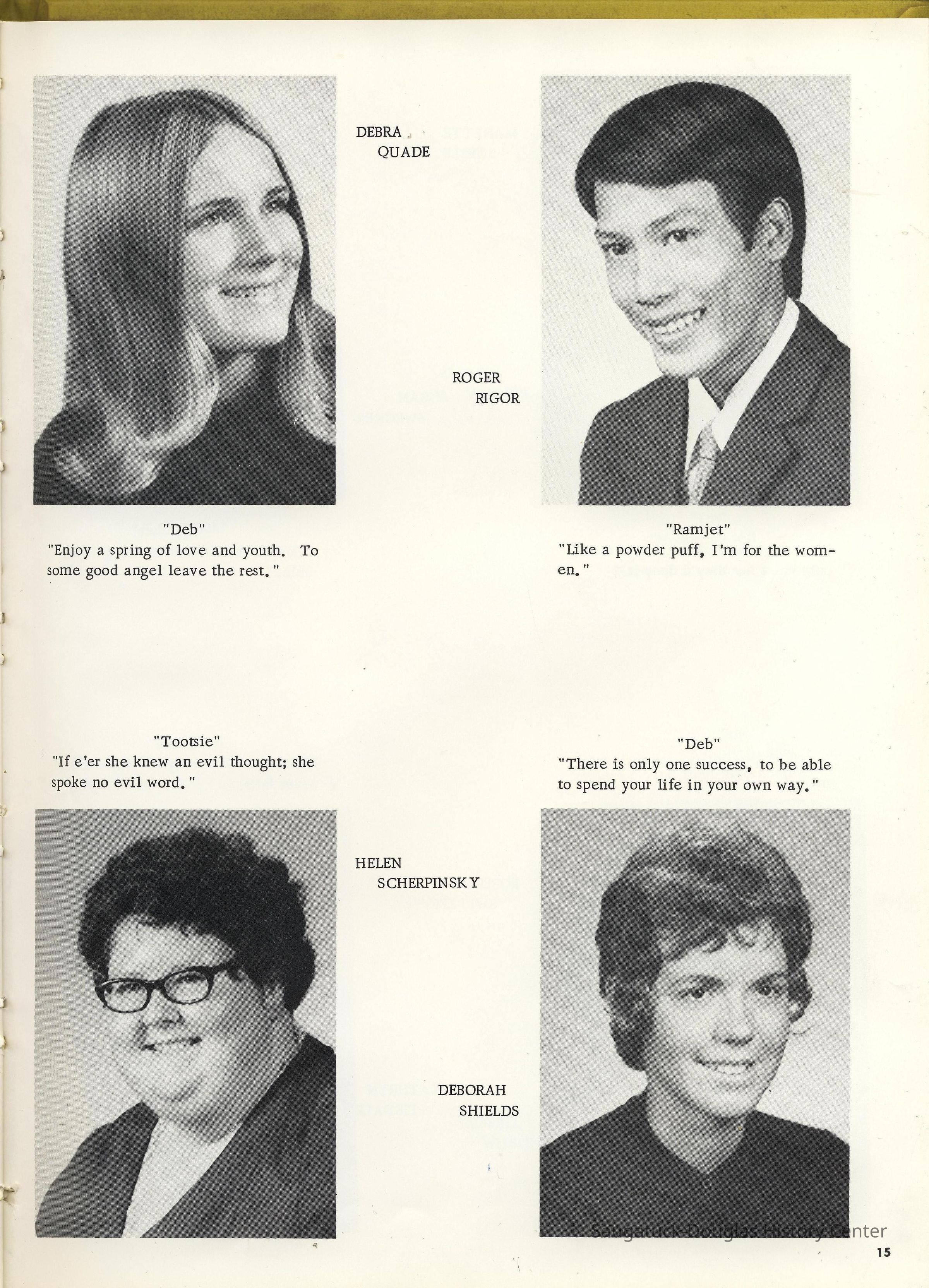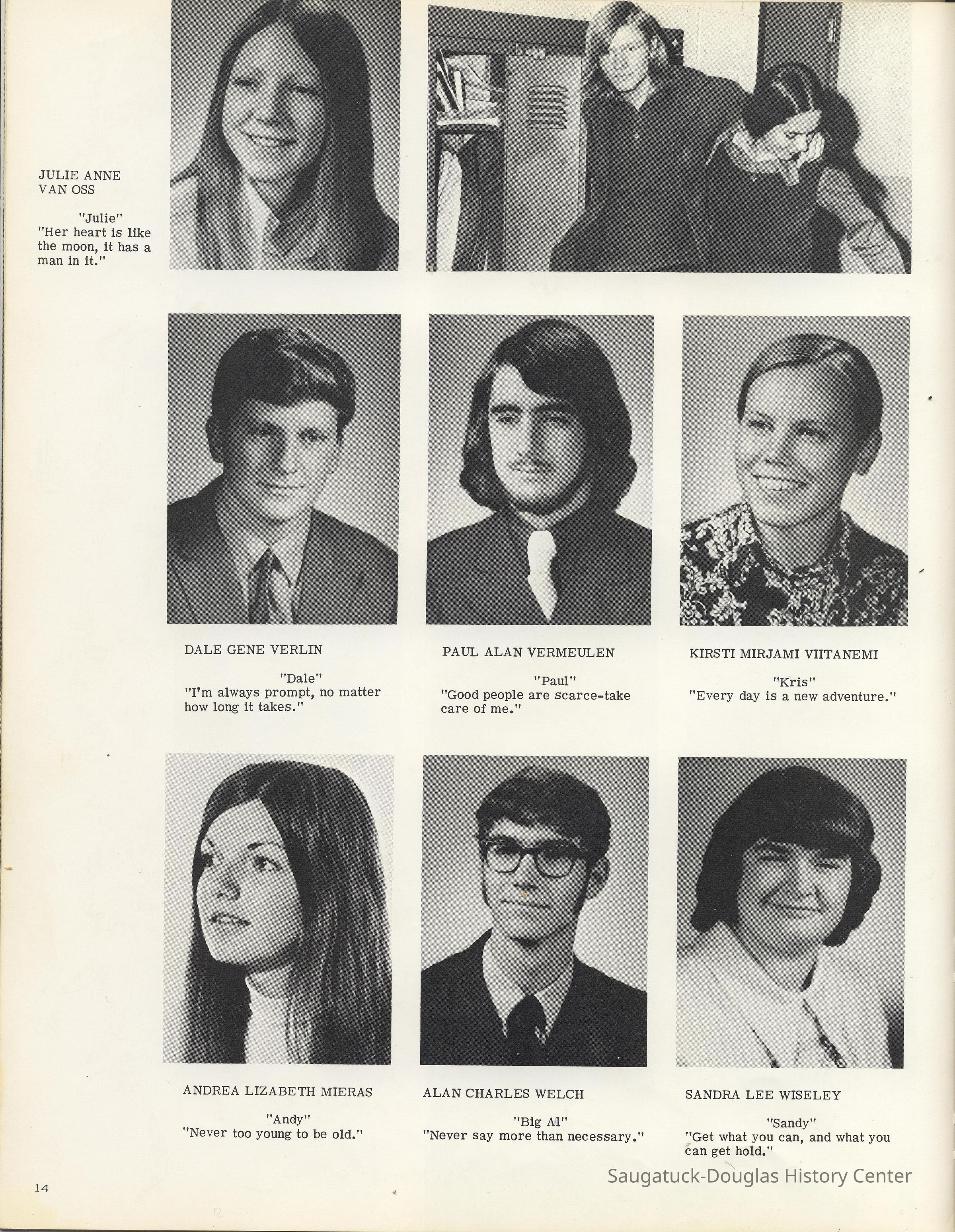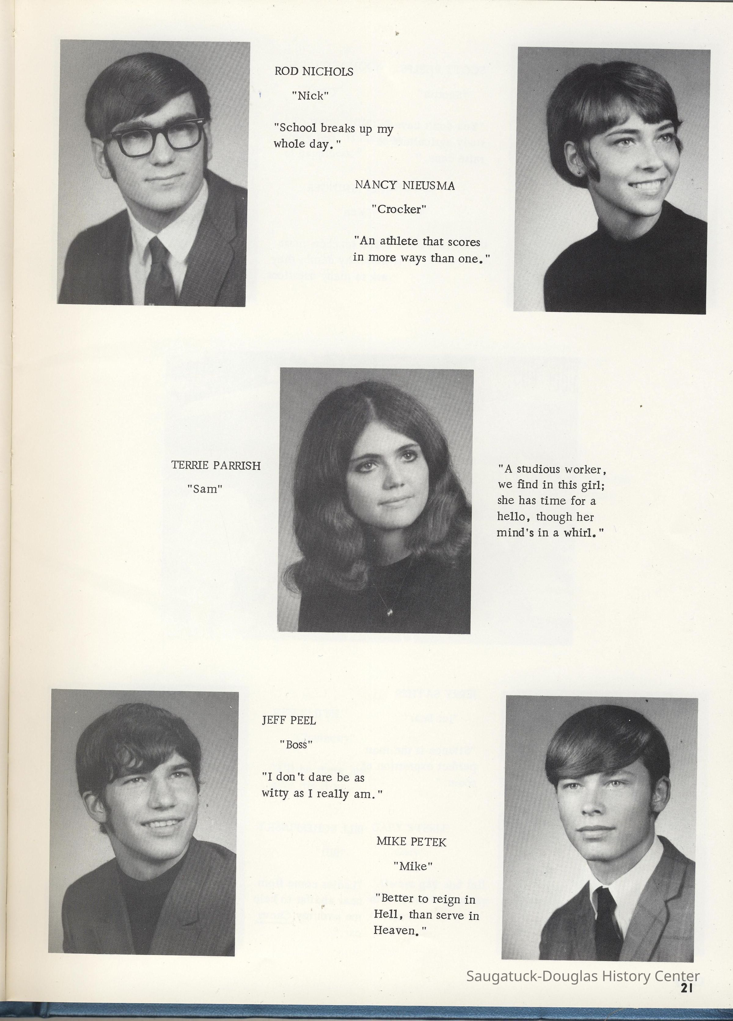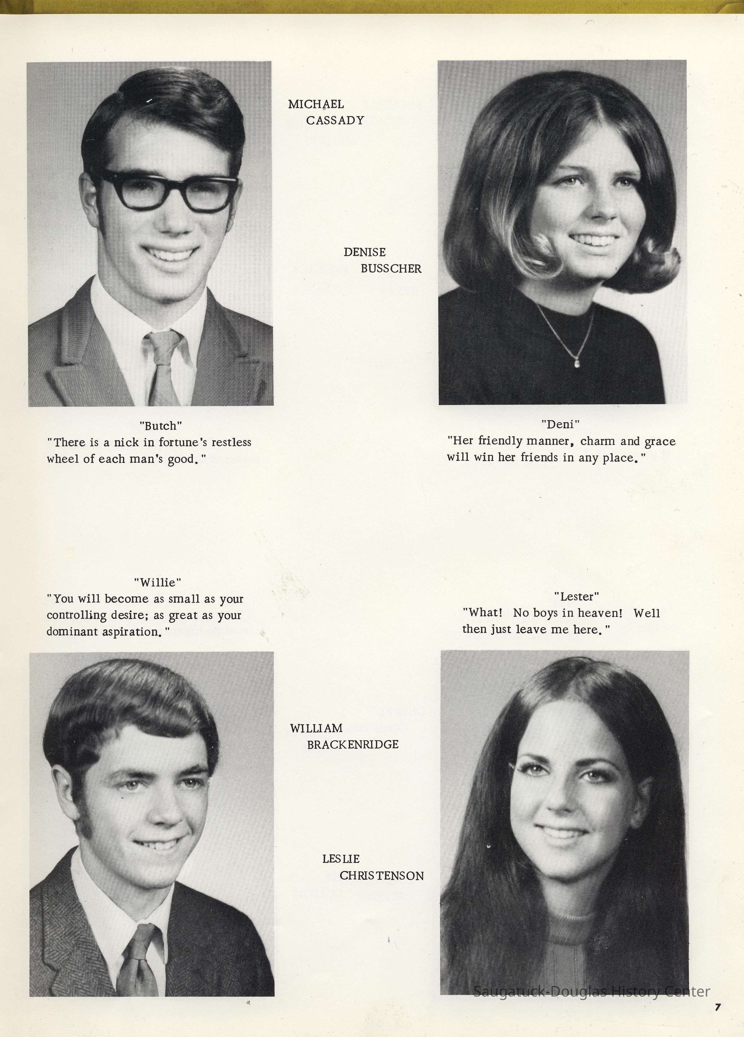 Senior portraits from of the class of 1970, class of 1971 and class of 1972 as printed in Saugatuck High School yearbooks. The yearbook pages were photographed by Chris Yoder in 2009.