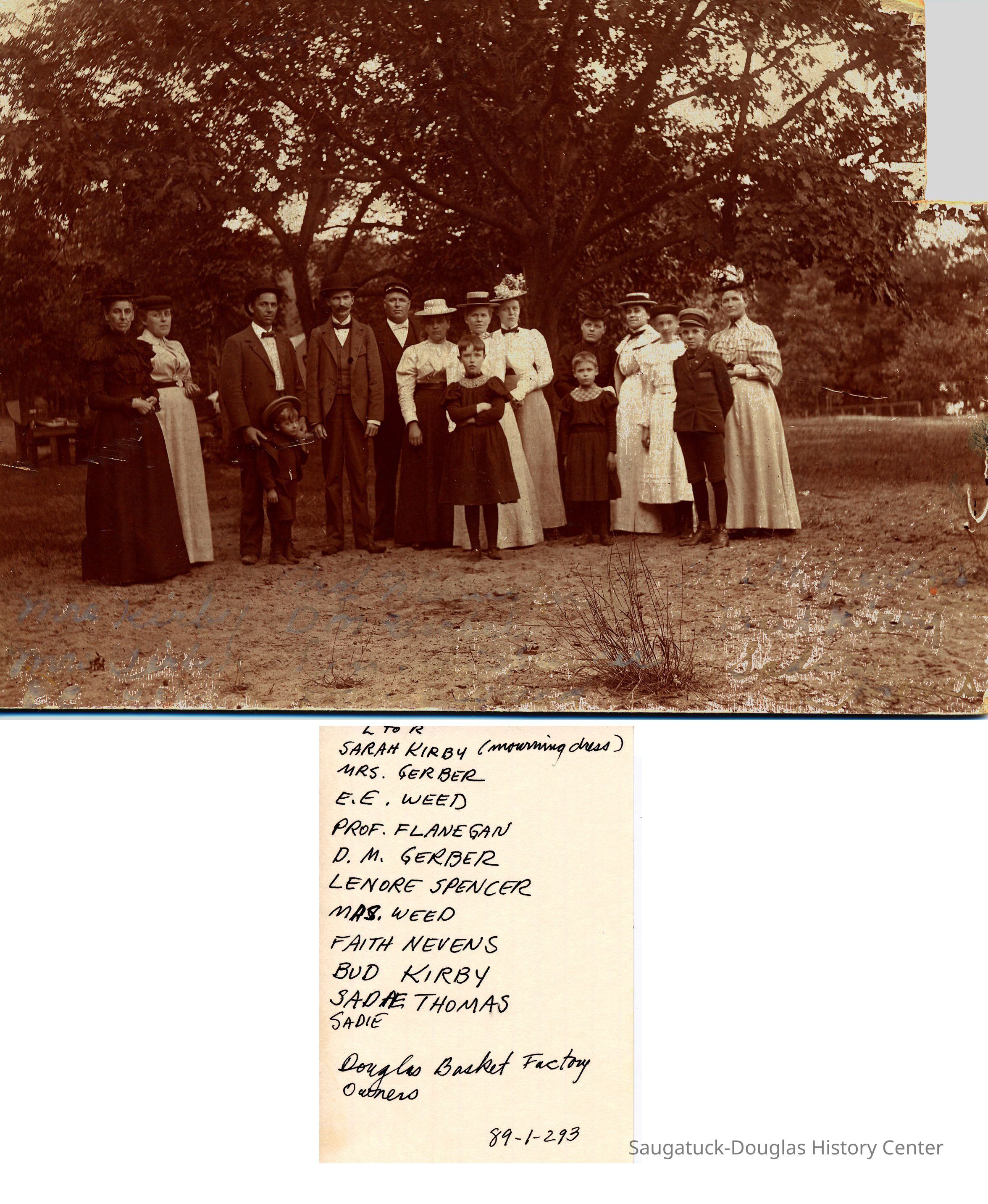 Basket Factories in Douglas circa 1851-1927Kirby, Sarah M. (Gill) 1861-1951Weed, Elmer E. "Deac" 1865-1936Gerber, Daniel Milton 1862-1929Kirby, Lois Faith 1884-1970Kirby, Willard John "Bud" 1887-1961Thomas, Sadie