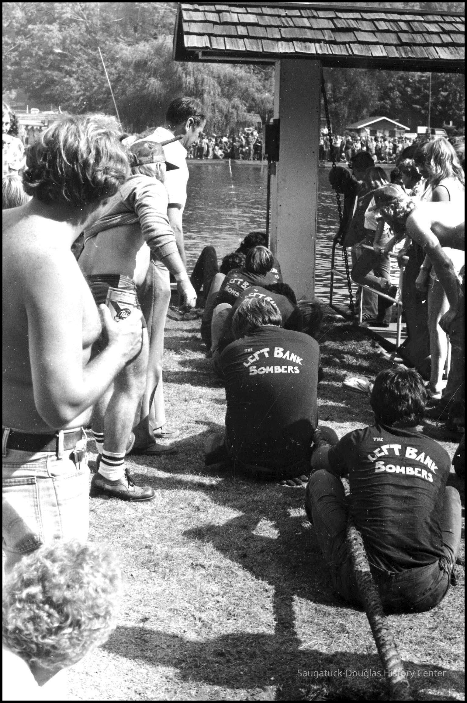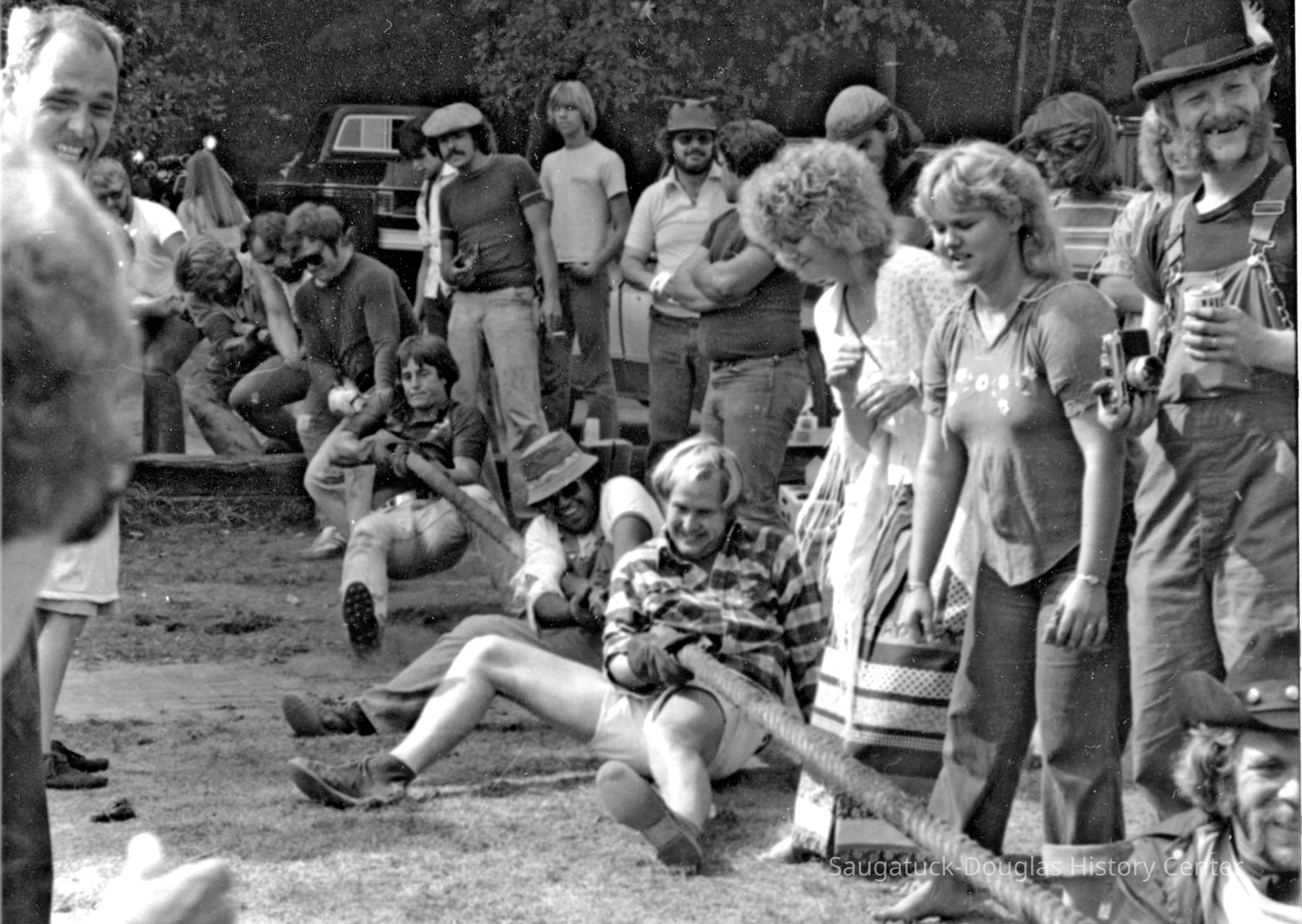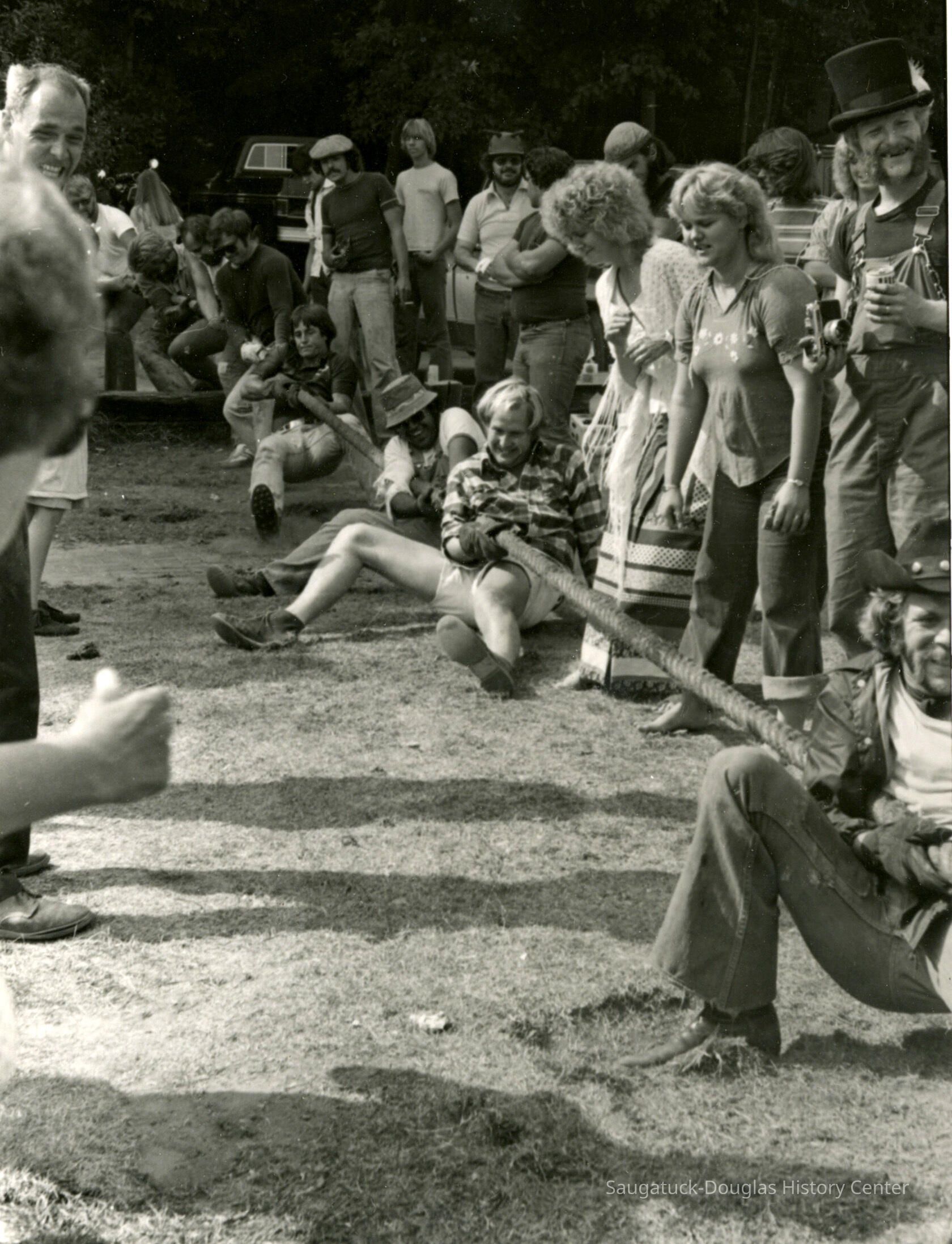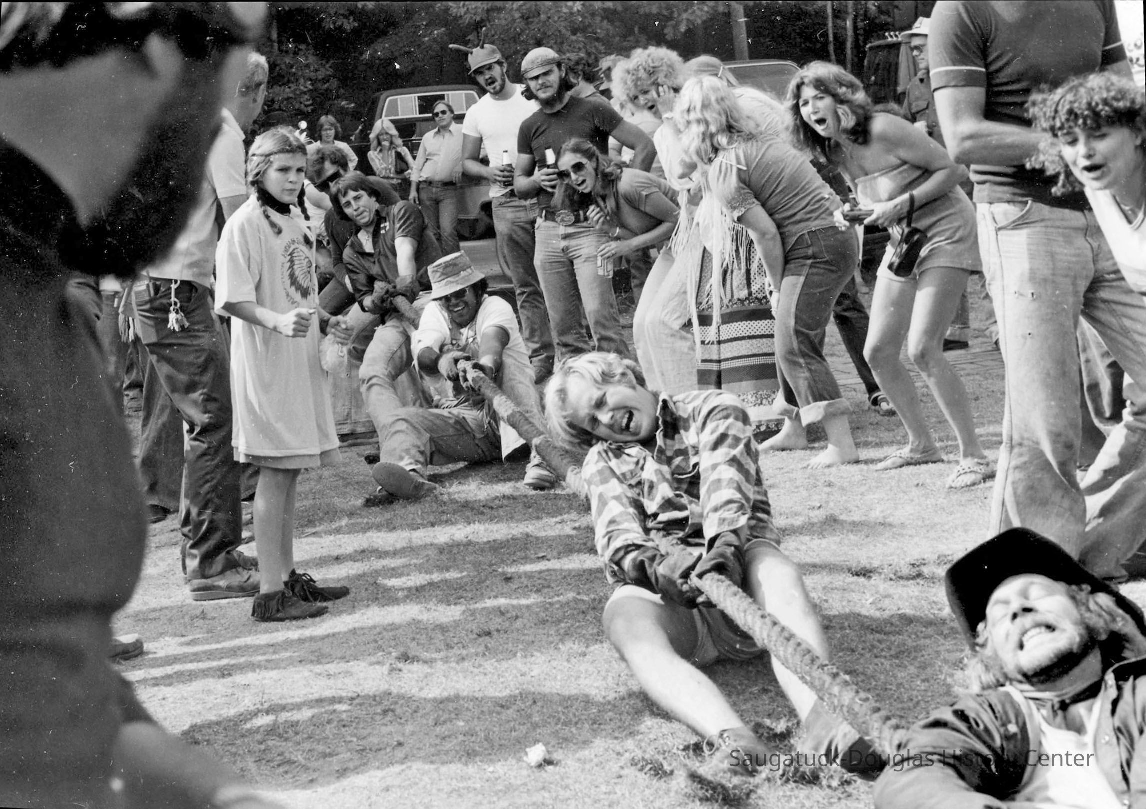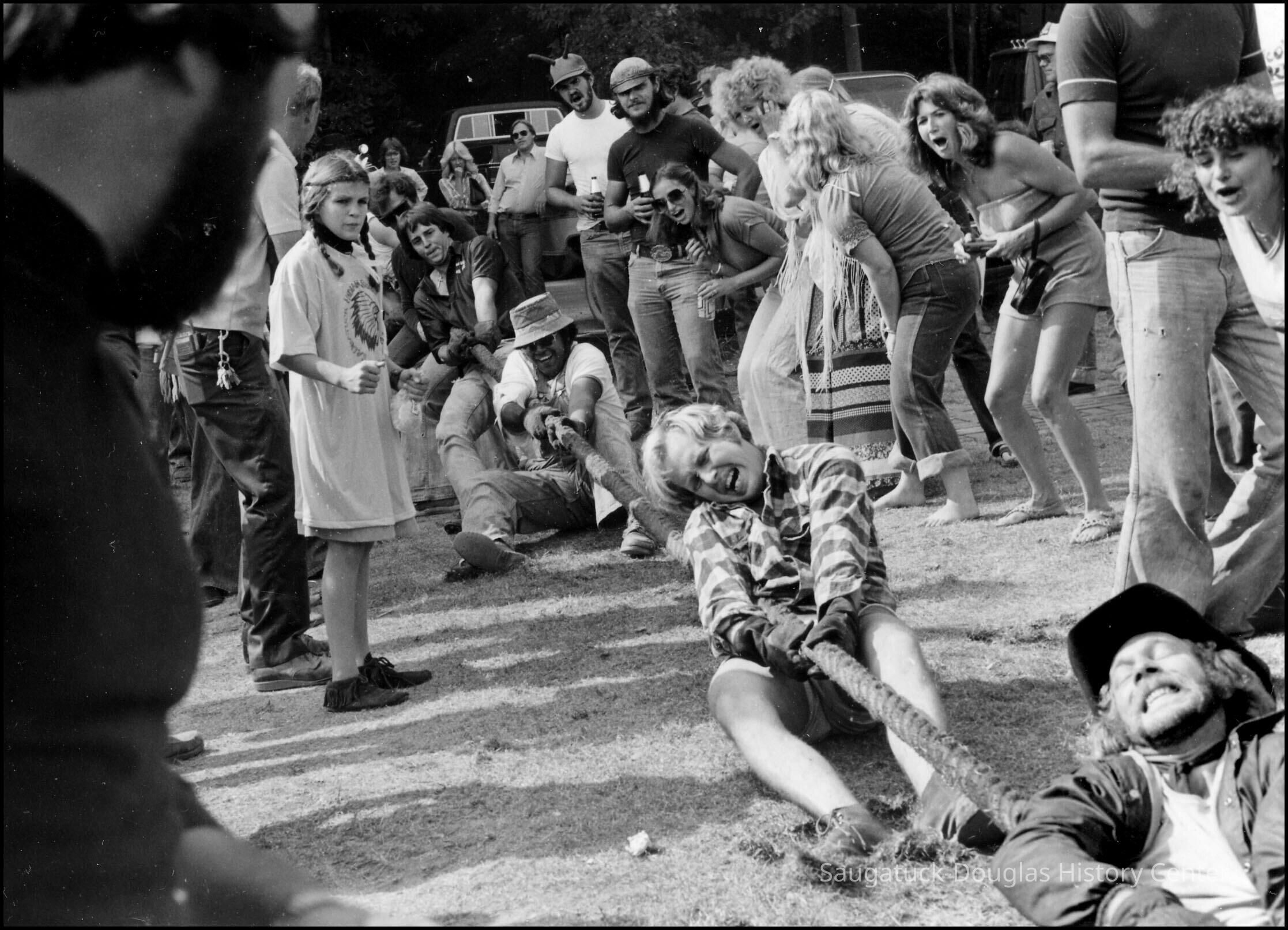 INDIAN SUMMER FEST--Some 27 years ago, a new fall festival was inaugurated in Saugatuck, and it got off to a splashing good start. It was called the Indian Summer Fest and featured a tug of war across the Kalamazoo river, canoe races, Native American Indian festivities, a muzzle loader display, and an outdoor fish fry. The August 30, 1979 issue Commercial Record reported on the upcoming festival: “A new event, the Saugatuck-Douglas Indian Fest will be held Saturday and Sunday, Sept. 29 and 30. The tug of war will be across the Kalamazoo river splitting Saugatuck against Douglas. Norm Archer, chairman, called the Indian Fest ‘a true all-outdoor fall program. ‘Fun for everyone, young and old alike’.” A surprising number of teams were recruited and trained (more or less) to participate in the grueling tug of war across the river. Eight-man teams were positioned at the east and west ferry landings grasping the 3 inch hawser rope that spanned the river, and digging in as best they could before the tug began. The winner of the tug-of-war was decided by pulling your opponent’s lead person into the river. Published results listed Wilson Electric the winner over the Boathouse in a tug-off. Winning time for the canoe race was an hour and fifteen minutes paddling from New Richmond to Wicks Park in Saugatuck. Third place finishers were Mark Erlandson and Joe Siska. Winners in the Indian costume contest were Kit and Eric Lane of Douglas, Angela Holmes, and Cindy Riem. The inaugural Indian Summer Festival was such a big hit that a second annual festival was held in September, 1980 with some brand new events. In addition to the tug of war, there was a boat demolition derby (participants must wear life jackets), a fishing contest, and—shockingly new in Saugatuck—a beer tent. And in the tug of war events, there was an equal-opportunity new women’s division. Women’s teams scheduled to compete were: Naughtin’s Marina, Loaf & Mug Deli, the Interurban Cowgirls, and Century 21 Real Estate. Men’s teams included the Sandbar Saloon, Embassy Tuggers, Queen of Saugatuck, Douglas Building Center, Wilson Electric Wire Nuts, Billie’s Boathouse Bulls, Left Bank Bombers, What Not Inn Weekend Warriors, and the Woodshed. The festival took place again next year, but then disappeared into the sunset. But it was great fun while it lasted. by Rob Carey
