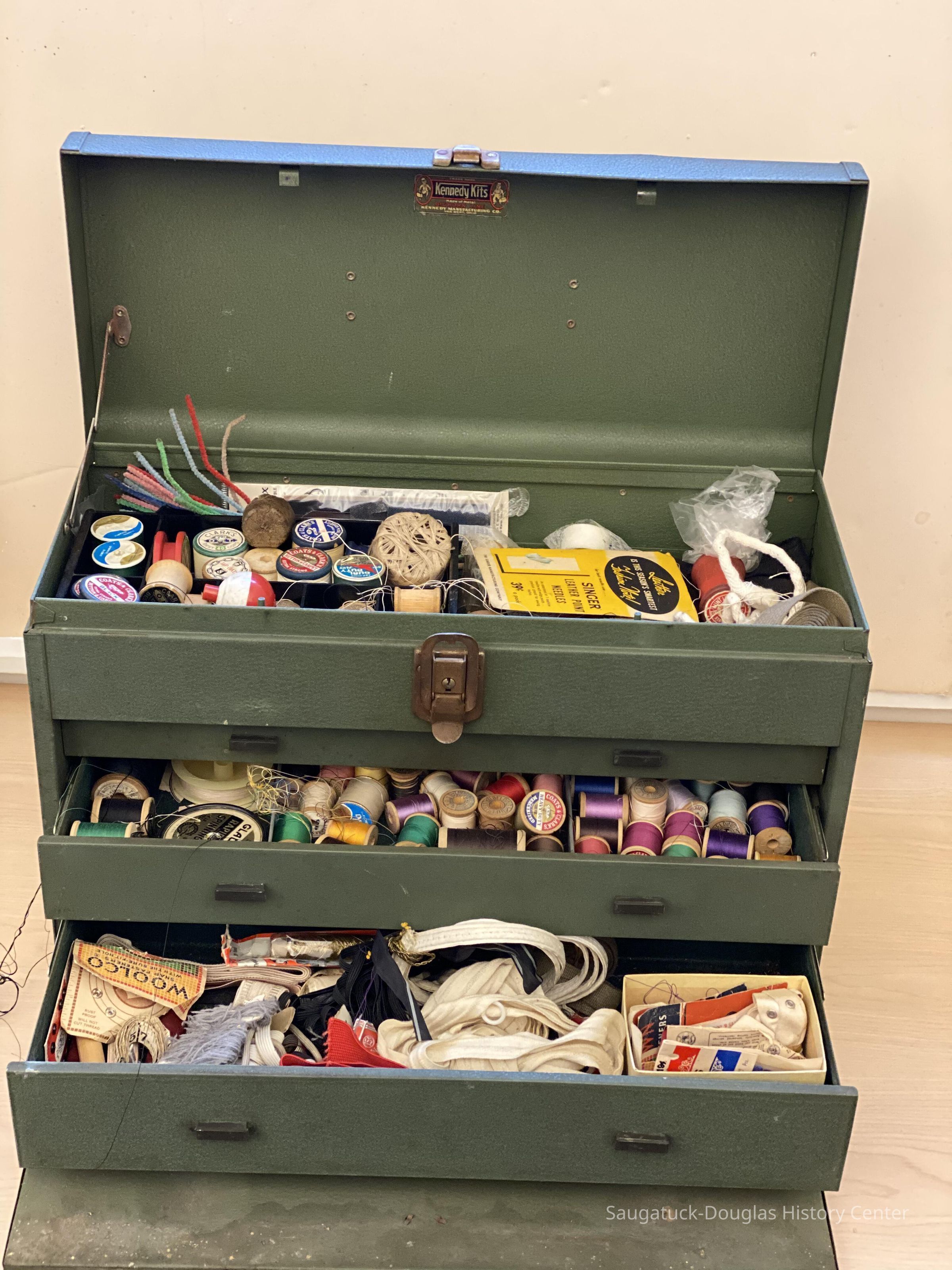 Burr Tillstrom's toolbox and sewing kit