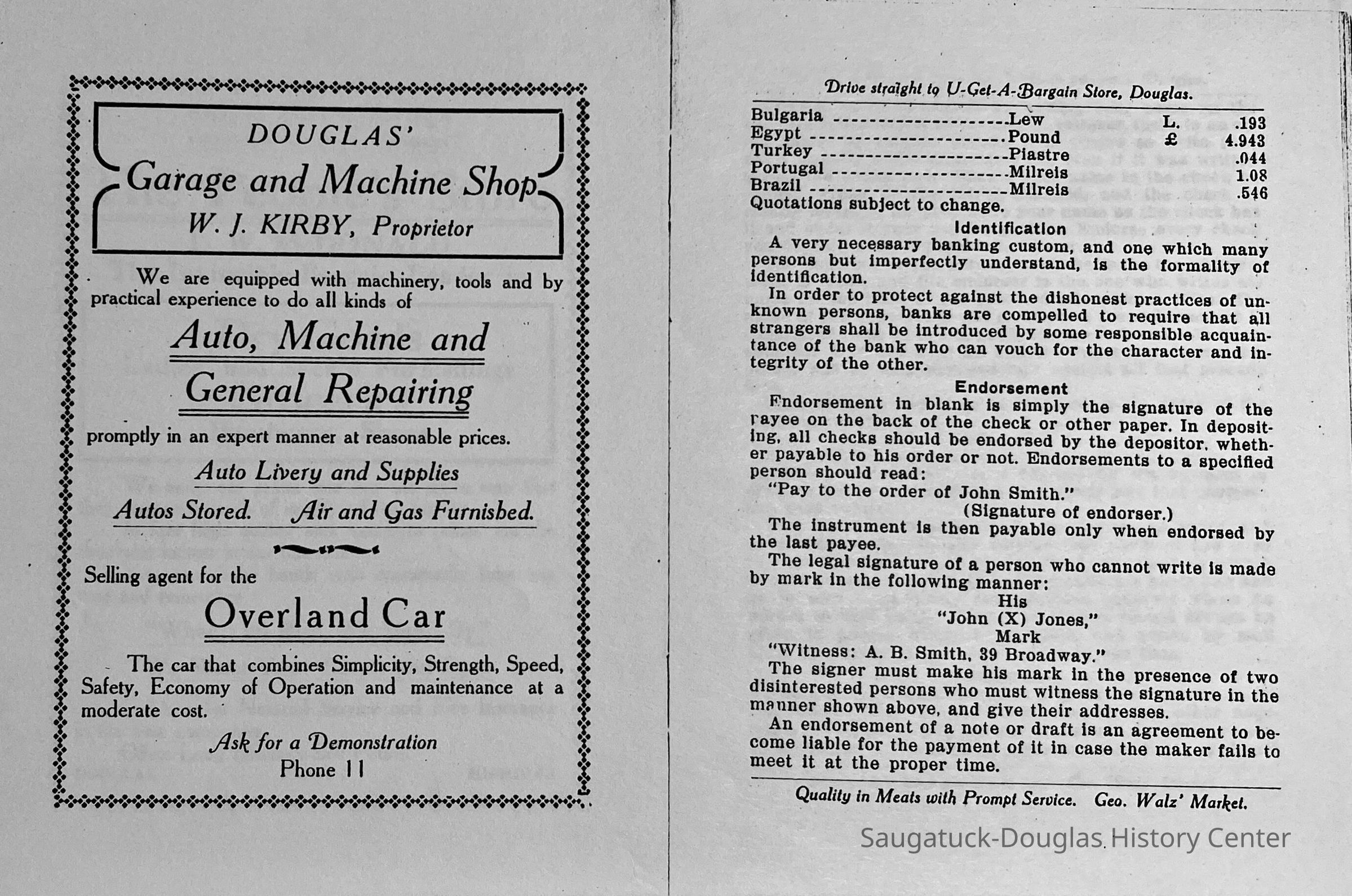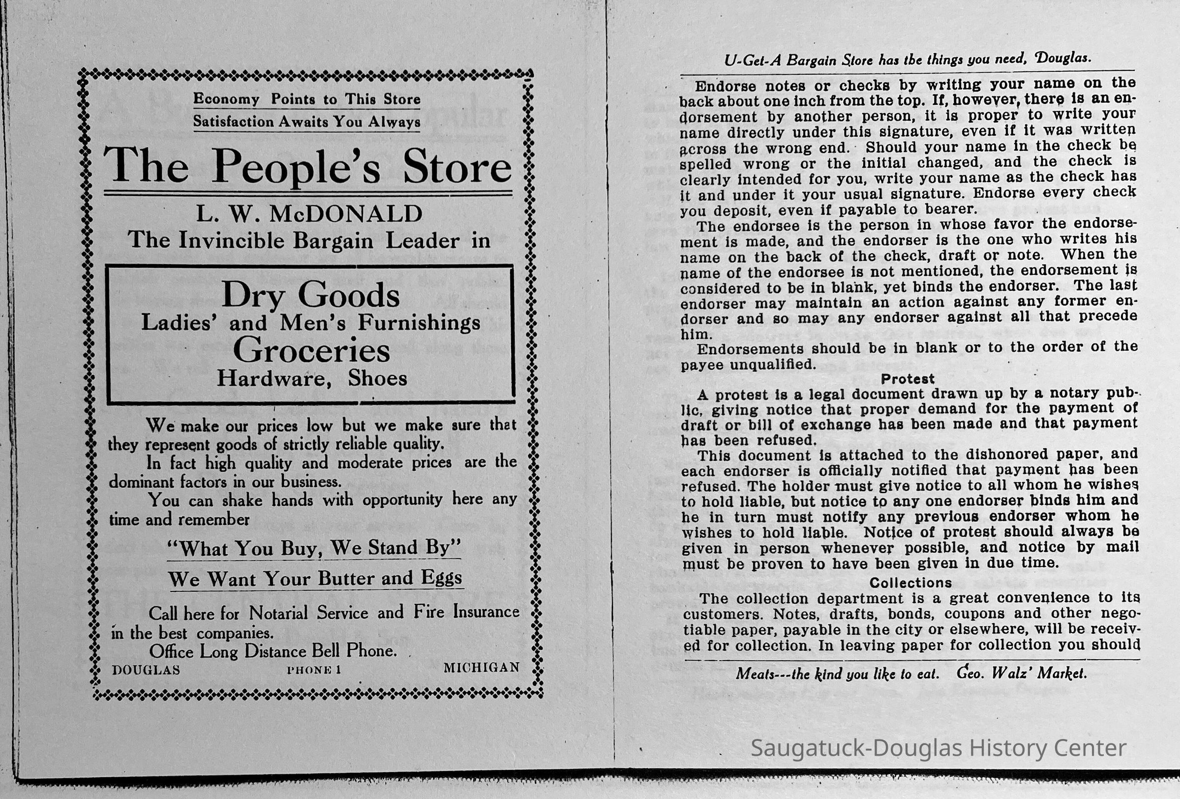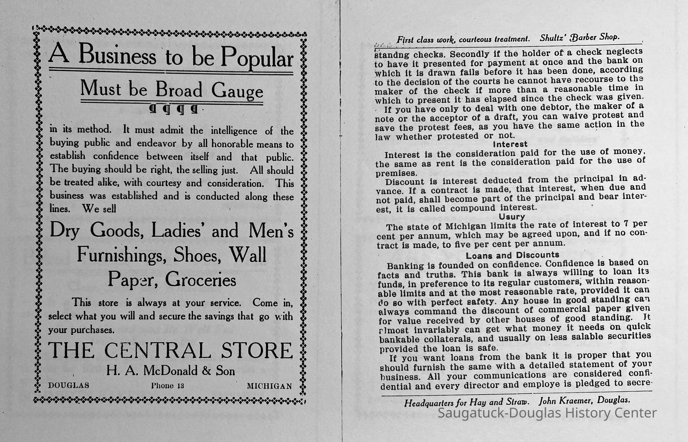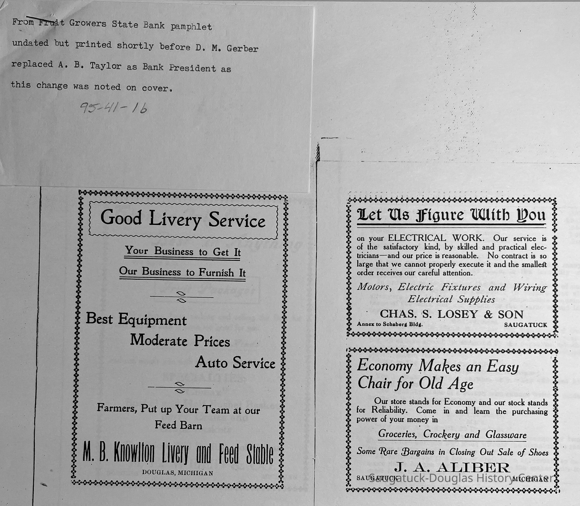 Originally cataloged at 95-41-1b, the copy includes a note "undated but printed shortly before D.M. Gerber replaced A.B. Taylor as Bank President as this change was noted on cover. Whoever made the photocopies seemed to focus on the advertising rather than the banking content or the cover.