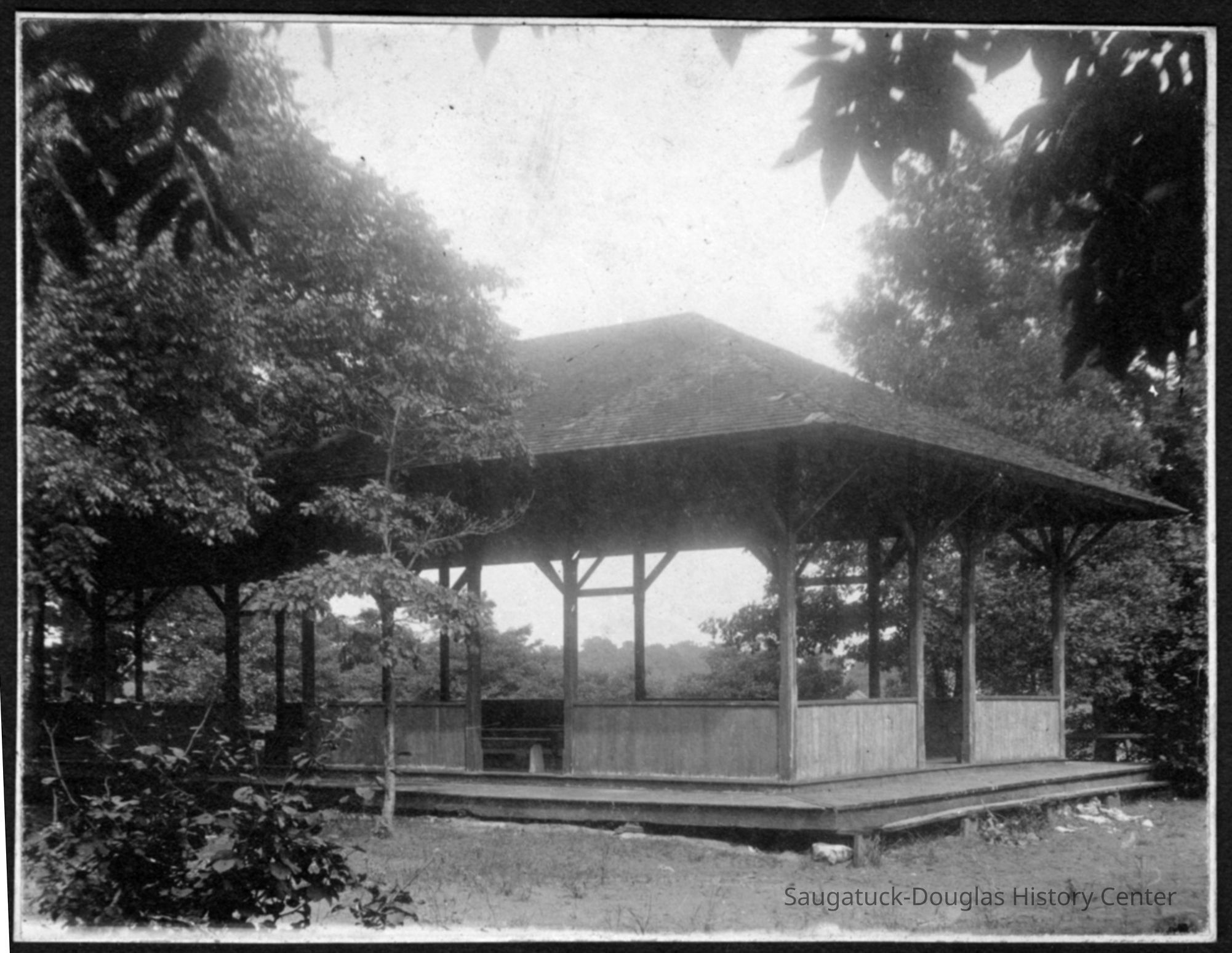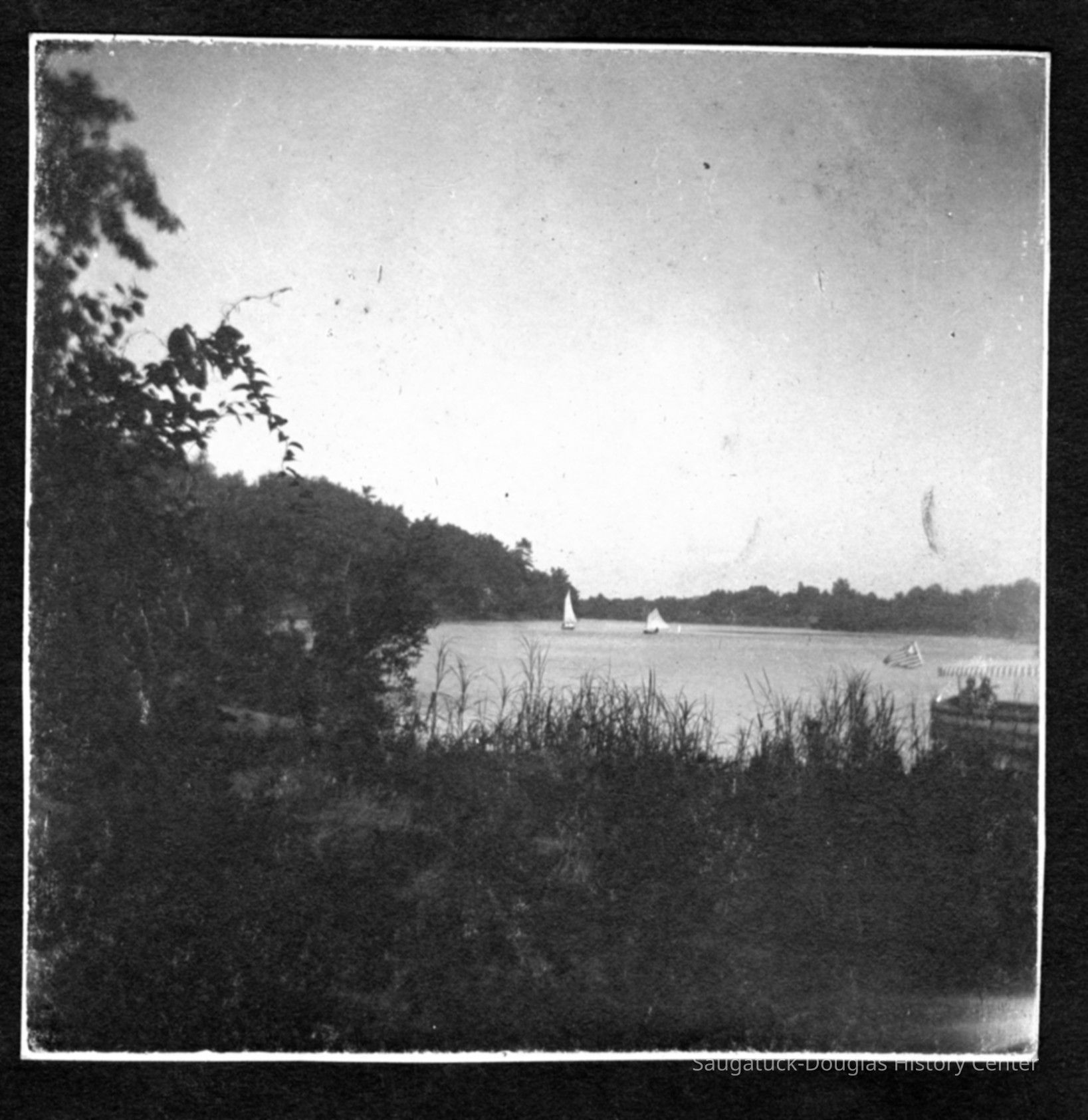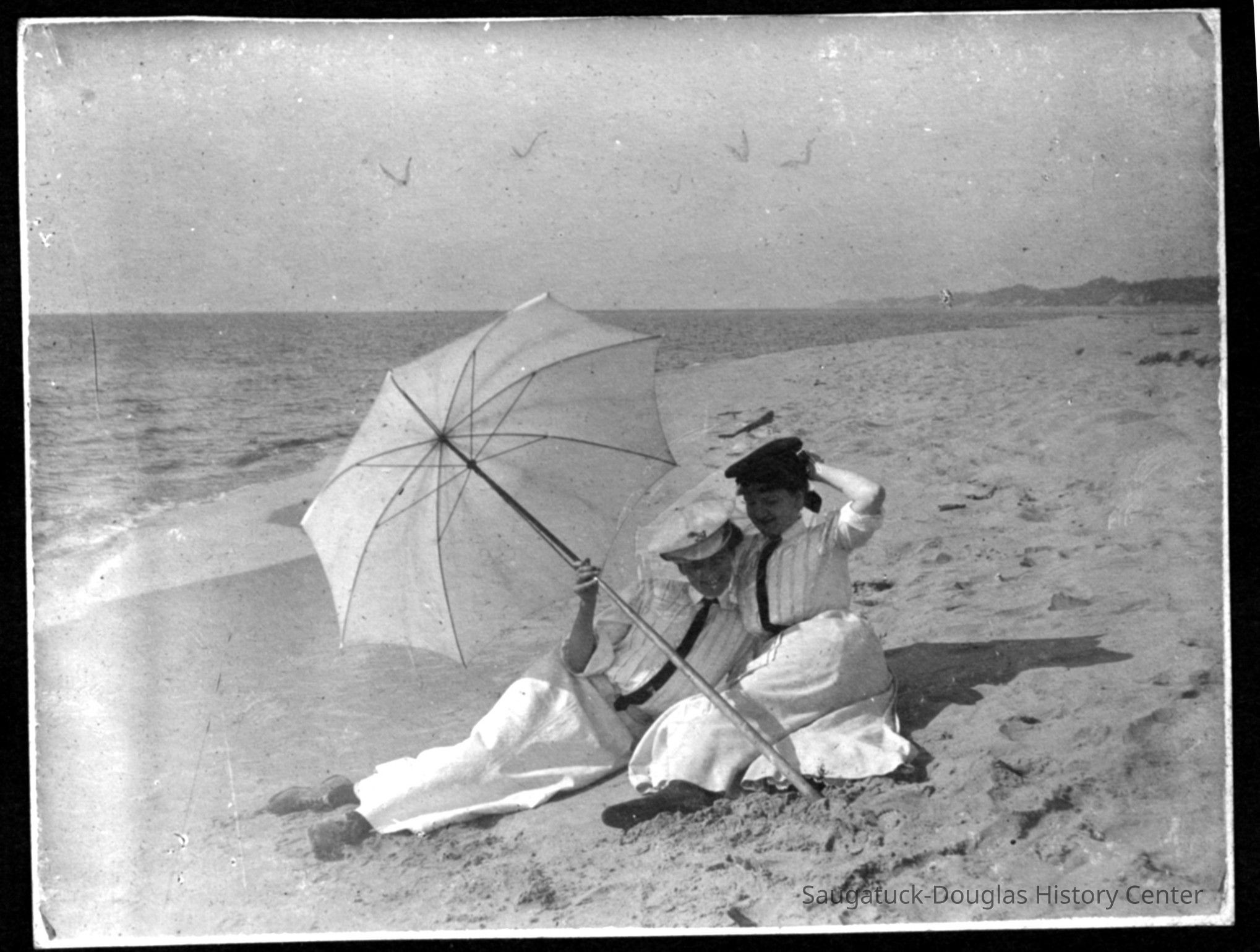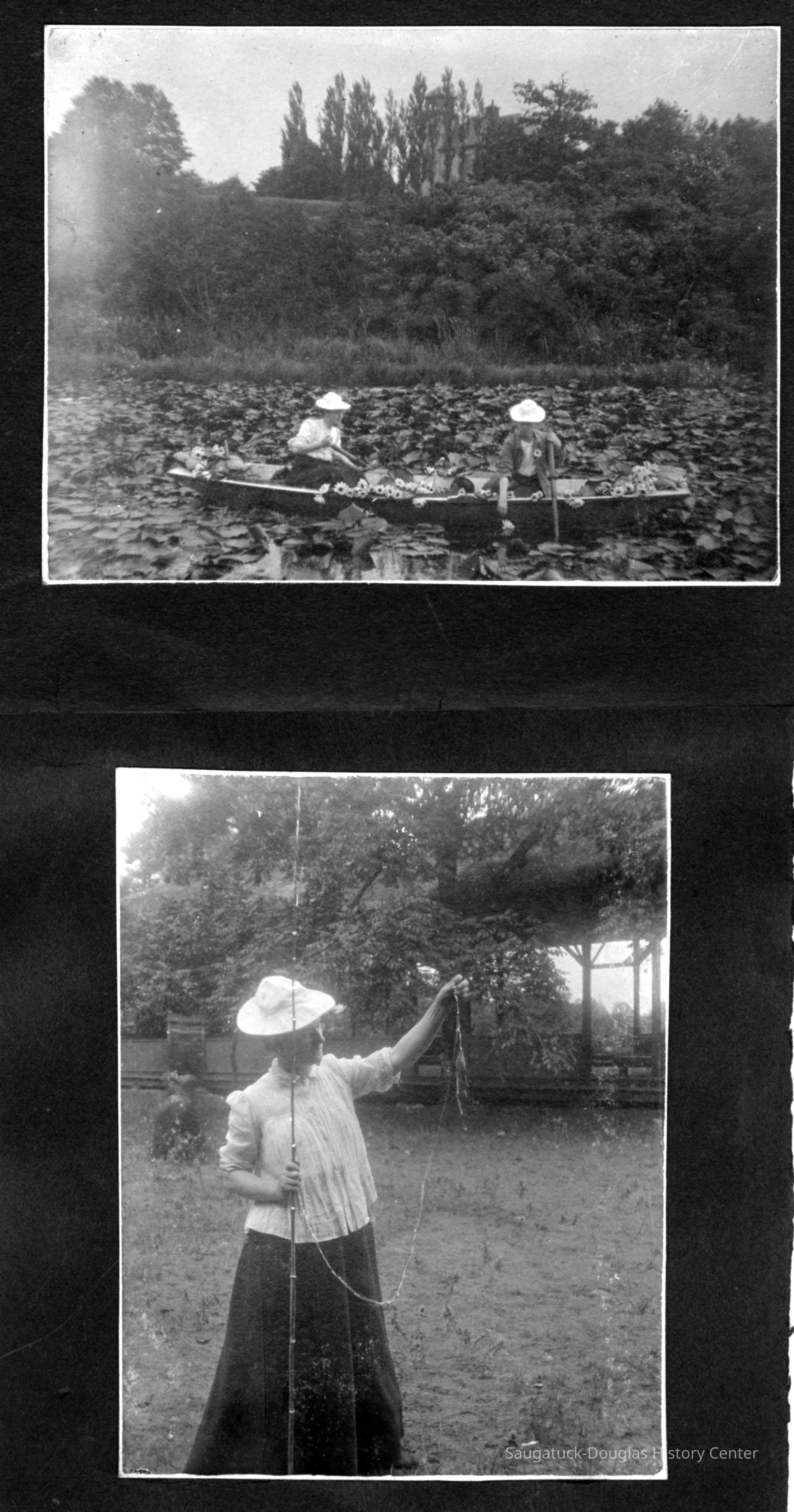 Digital scans of photos and postcards of people getting the rest they need at a tent camp located at the foot of Mt. Baldhead. Many of these scans were from a photo album loaned by Erik Peterson. The album was stamped as property of the Saugatuck Marine Museum and donated by Herman Hirner.