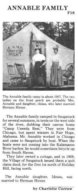Hirner, Herman 1881-1966Peterson, ErikWise Residence/515 Park/Ferry Store/Heath Shop 1917-1980s?Park Street Camp GroundsMount Baldhead Dune/ParkAnnable, John Quincy 1859-1927Annable, Mary Ellen (Bowen) 1857-1940