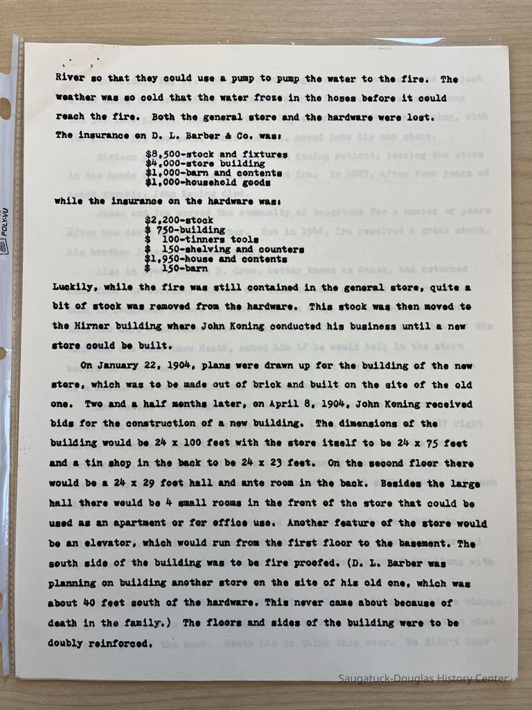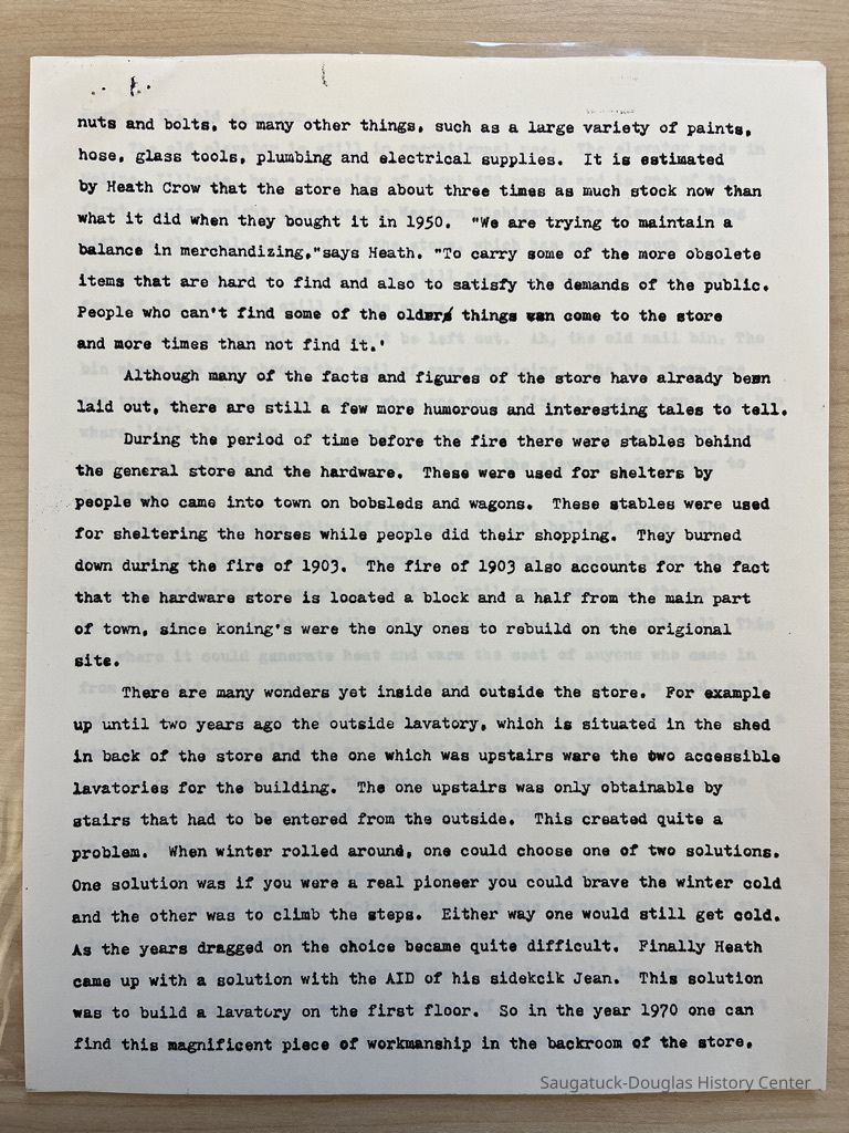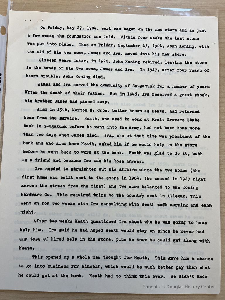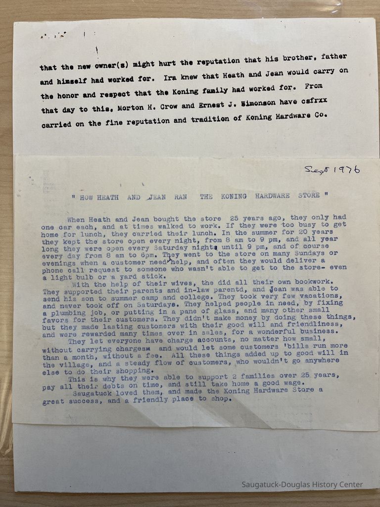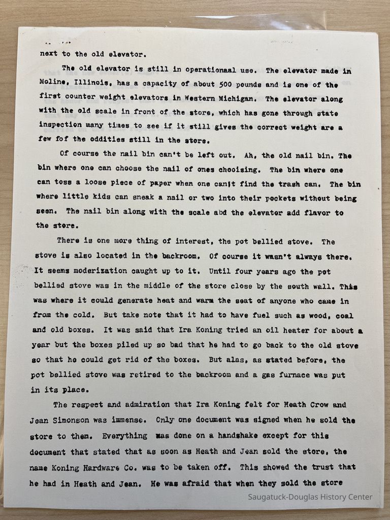 "The History of Koning Hardware Co. by Frederik H. Geerdink," was brought by Mr. Faasen to the Archive for photocopying and placement in the properties files.