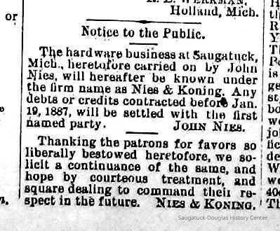 439 Butler/Butler Pantry/Wilkins/Koning/Nies HardwareKoning, John 1858-1927Crow, Morton H. "Heath" 1910-1976Simonson, Earnest Jean 1916-1996Nies, Jan "John" 1836-1920Wilkins, Ronald "Ron"Koning, Arie James "Ira" 1883-1975Kofsky, Richard J. 1931-Wilkins, Bonnie