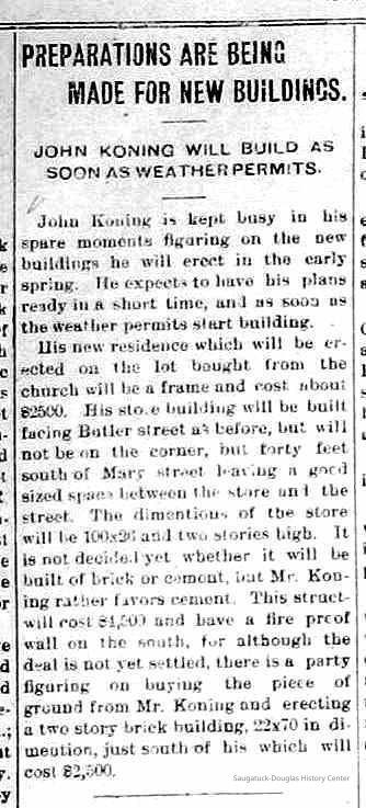 Photographs and documents collected by James T. Faasen during research about the Koning Hardware store building at 439 Butler Street. Digital items emailed to Sally Winthers in September 2022.