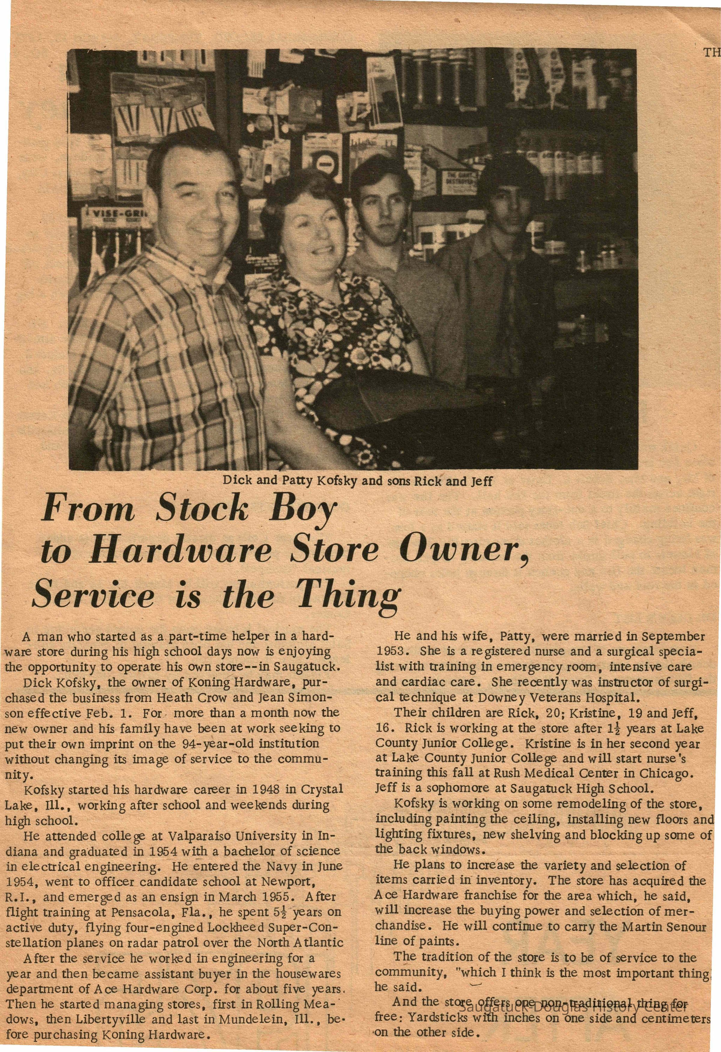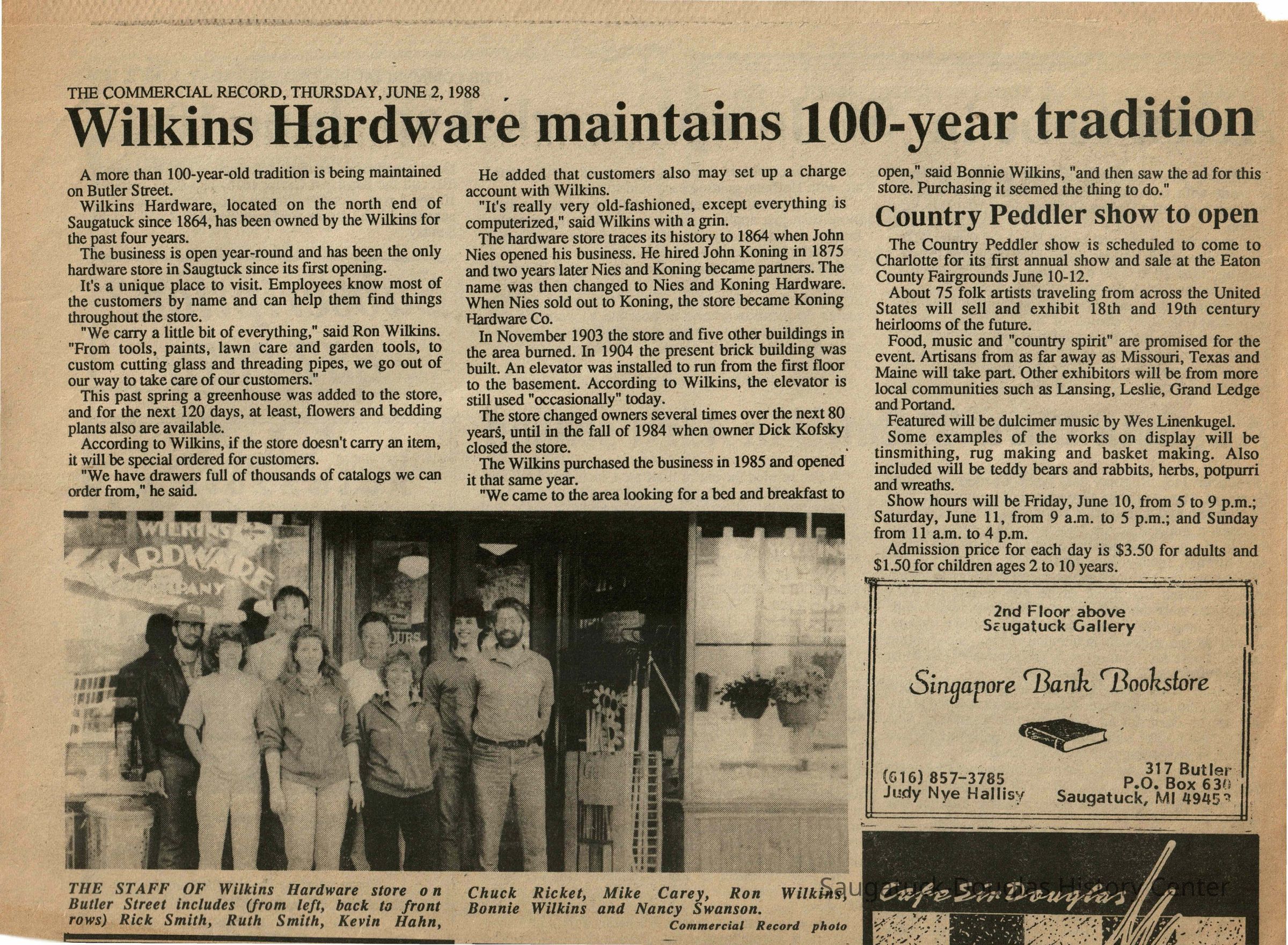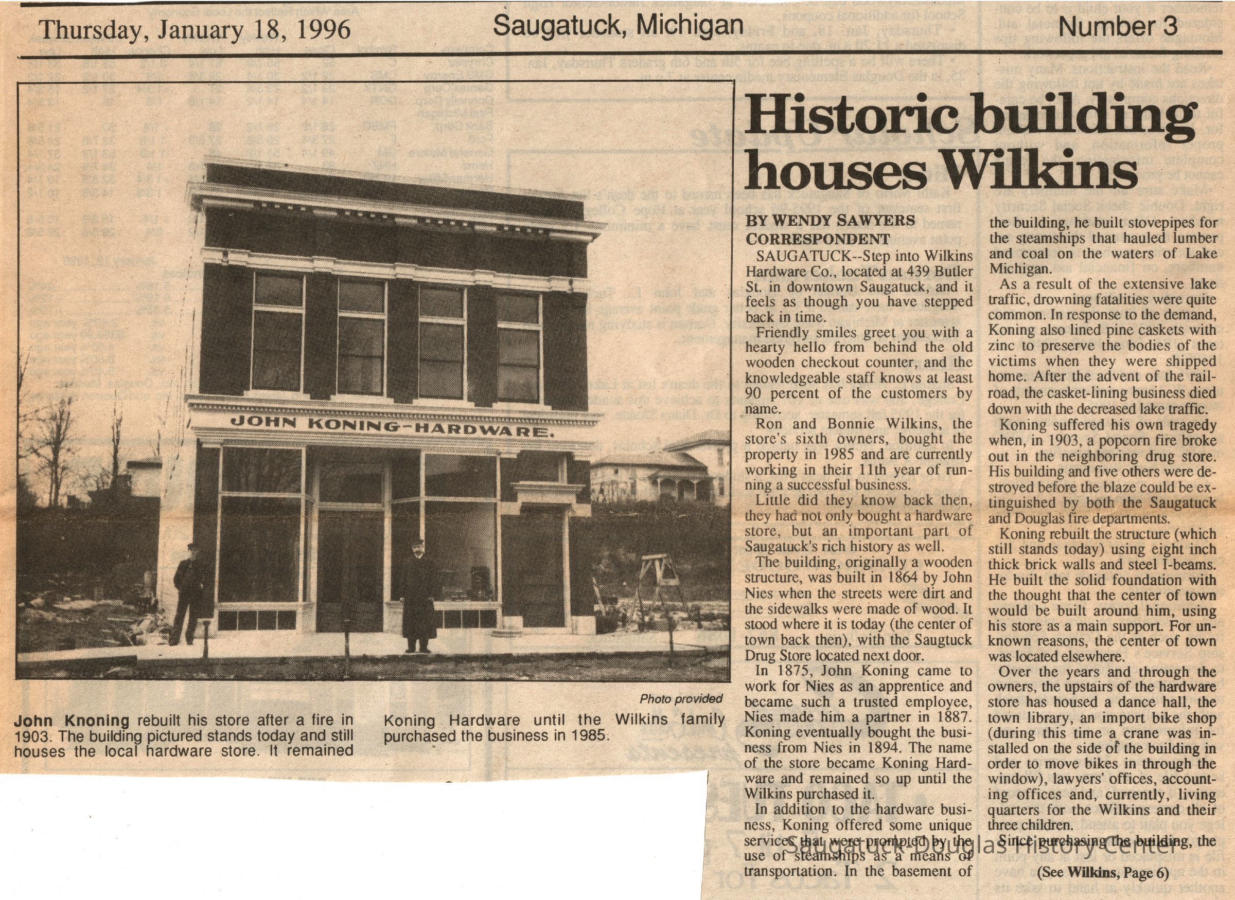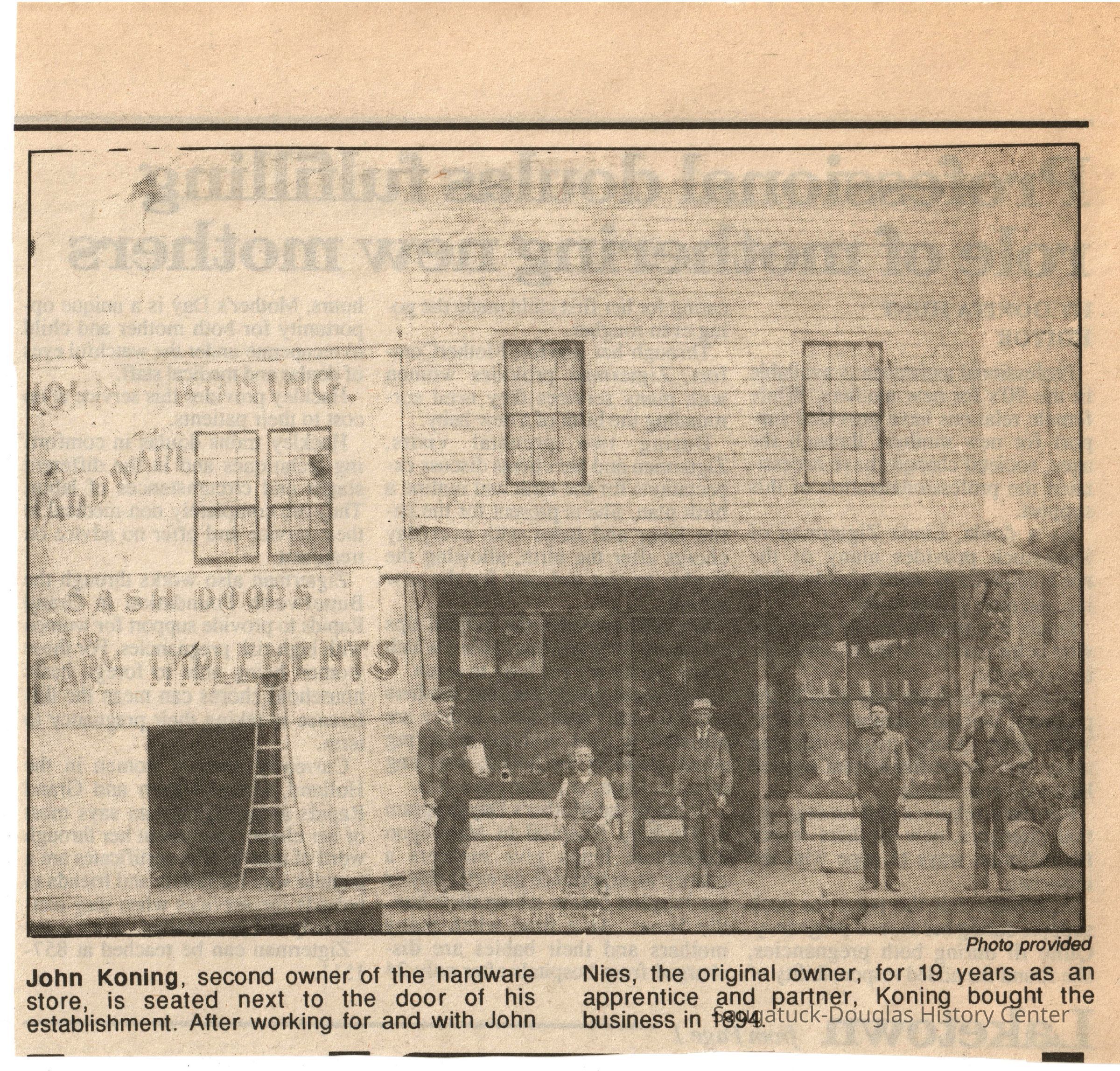 After many years of running a hardware store in the Koning building, Ron and Bonnie Wilkins sold the property in 2022. The new owners engaged Mr. Faasen to research and write the building's history.