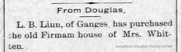 Pond, James Munroe 1823-1900Hames, George W. 1834-1917Hutchinson, Franklin 1840-1884Collier, Thomas c1841-1871Owen, Jonathan Sayre 1830-1889Ryan, John 1826-1893Dunn, George E. 1835-1903Firman, N.C.Thomas Gray & Co./T.B. Dutcher StoreGoodrich, Asa C. 1834-1900Heath, George Peter 1820-1875Gardner, Amos 1842-1907Morrison, Stephen A. Jr. 1815-1905Houtcamp, JamesPayne, John Sage 1834-1900Richards, Chauncy 1837-1916Nies, Jan "John" 1836-1920Moore, Horace Duncan 1821-1915Billings, Erastus D. 1856-1922Goodrich, Charles Langdon 1825-1903Reid, Adam 1844-1917Phelps, GeorgeMcClintock, Elizabeth (Dodge) 1845-1922James L. Brown 1824-1893Unity Lakeshore Church/Douglas Adventist ChurchWoodworth, Warren A. 1836-1922Tuttle, Pardon 1827-1908Thake, William John 1847-1930Doud, Judson 1835-1921Durham, C.W.Pond, William H. 1855-1929Robinson, Miller 1859-1940Walz, Fritz "Fred" 1858-1934Henry, John F. 1834/6-1918Priest, John 1836-1922888 Holland/Park House/Clover's Waffle House/H.D. Moore residenceUpham's Opera House/Miller's HallTuttle, Levi 1829-1921Reed, Samuel Caleb 1848-1923Schumann, Andrew J. 1841-1932Tahaney, John 1824-1893Griffin & Henry Lumber Yard/Griffin & Henry Sawmill/Griffin & Williams/Stockbridge & Johnson/Wells & Johnson/M.B. Spencer MillHuff, John Homer 1863-1958Holt, Henry "Harry" 1838-1918Stimson, Henry H. 1824-1916Coates, WayneIra Chaffee (ship) 1867Brown, John H.C. 1837-1910Brown, Lemuel 1865-1950Weed, Arthur L. 1858-1918Plummer & McDonaldMcDonald, Henry Ambrose 1850-1925Fisch, NicholasWinslow, Clarence Morton 1885-195819 S. Washington/Douglas House and Tavern/Eagle Hotel/Wades HotelJohnson, O.R. 1815-1895Menold, Charles N.Davis, James F.Reed, David Samuel 1872-1939Williams, Garret 1837-1902Thew, Charles Nelson 1865-1927Jacobson, James 1882-1943Carver, William 1830-1911For the Love of Shoes/Butler Pantry/Collins Bowling Alley306 Butler/Landsharks/Tripp's/Kruger's/C.E. Bird's/Ensign Drug Store/Wilcox BuildingTaylor, Alfred Blake Sr. 1846-1920Wallbrecht, Henry 1819-1892Brandt, Bertha Amelia (Wallbrecht) 1848-1934Forrester, Harry E. 1873-1936Slater, Frank Ray 1883-1963Crock, Gerrit 1837-1918Kibby, Jervis H. 1843-1933Stroud, Harley A. 1848-1915Hancock, Phillip Henry 1849-1913Brown, Ida H. (Deming) 1863-1920525 Butler/Heathcote 2nd/First Congregational Parsonage346 Griffith/Hames/Capt. Leland
