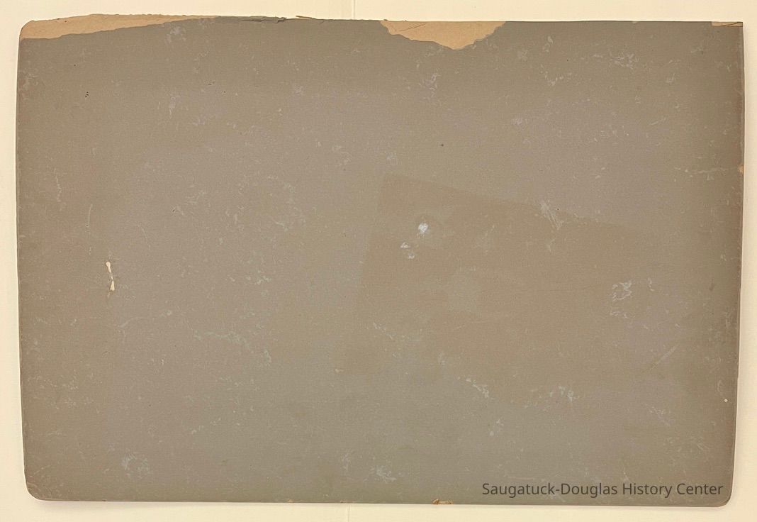 This photo is from the collection of Olive Koning (1884-1981). A note, handwritten on the card under the photo, identifies the volunteers as Richard Rode, Fred Walz, Charles Redebaugh, Chris Walz, Fred Metzger, Lee Leland, Dr. Davis, Fred Davis, Ira Koning, Carl Bird, Jim Koning, Homer Adams and Herman Hirner. During this period, the Saugatuck Village Hall served as the firehouse and the firefighting equipment on display was two hose reels (that were pulled by the men to the fire scene) and buckets.