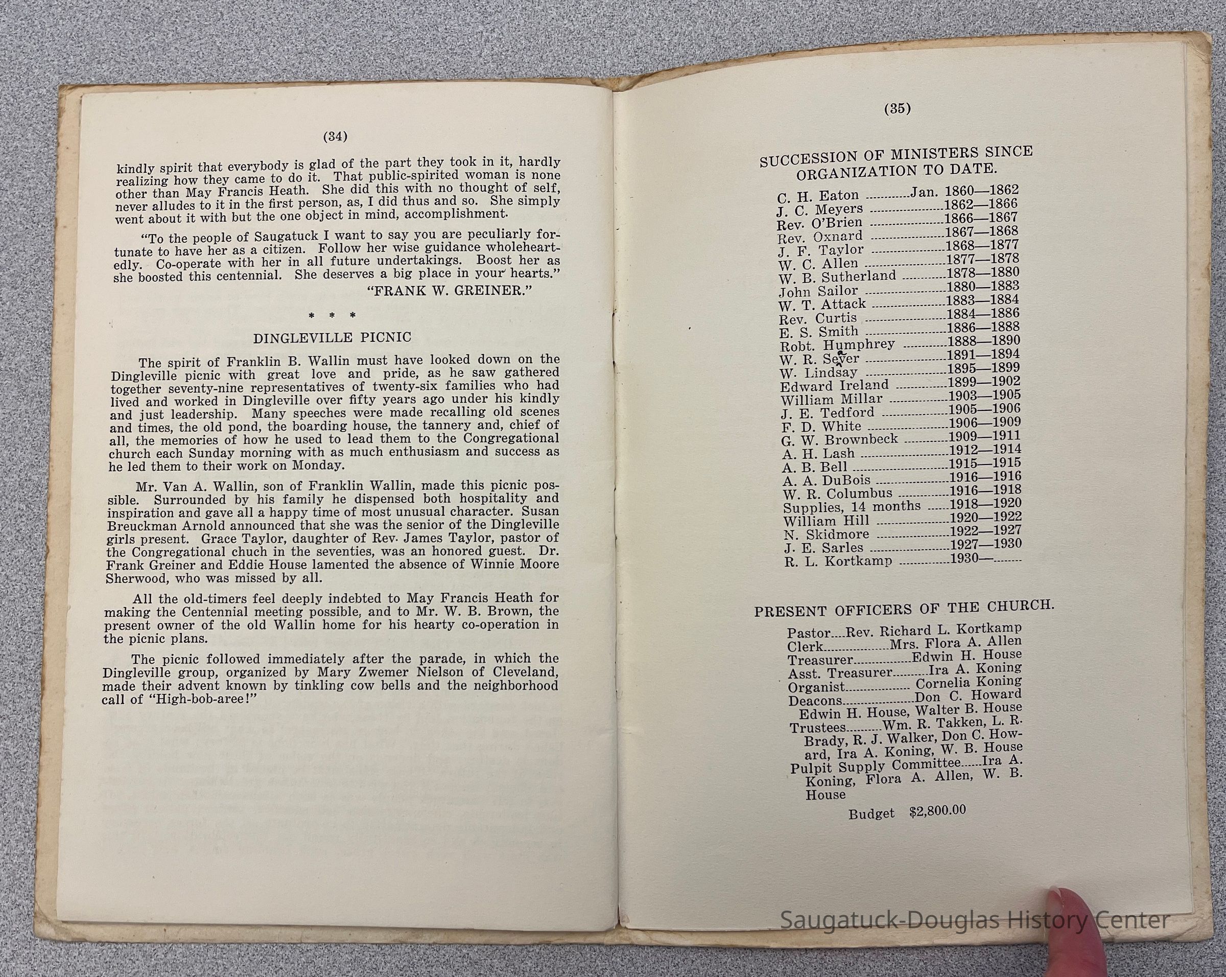 First Congregational Church of Saugatuck Michigan - anniversary booklet 1860 - 1930