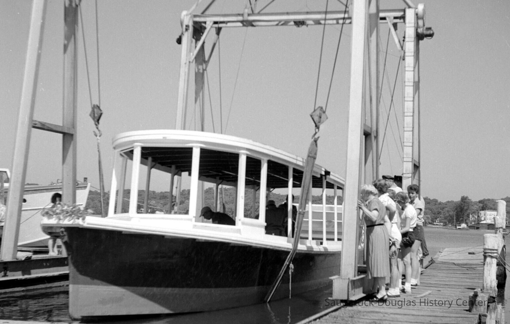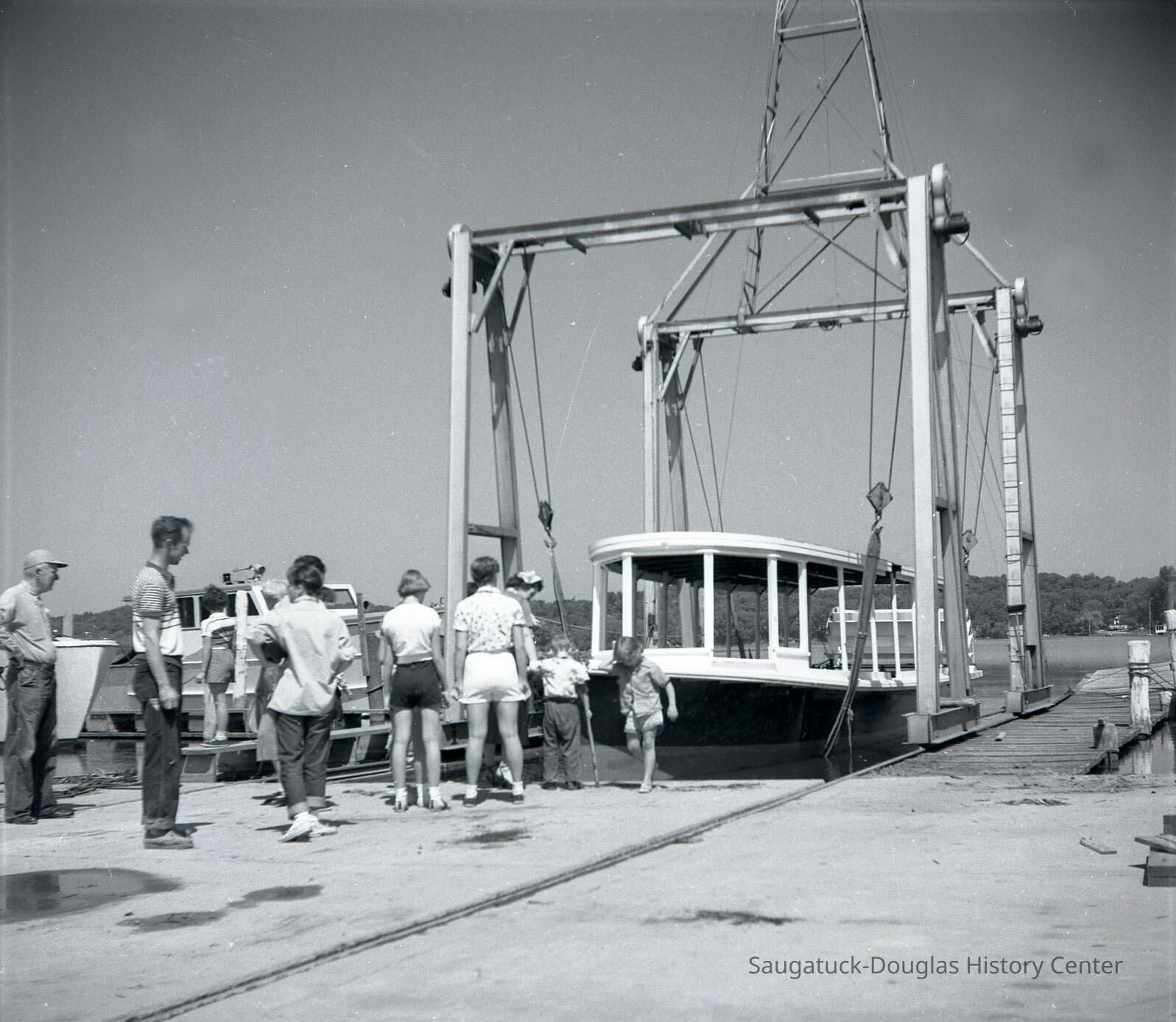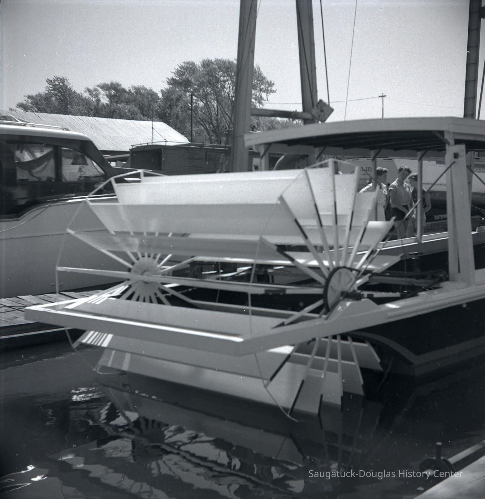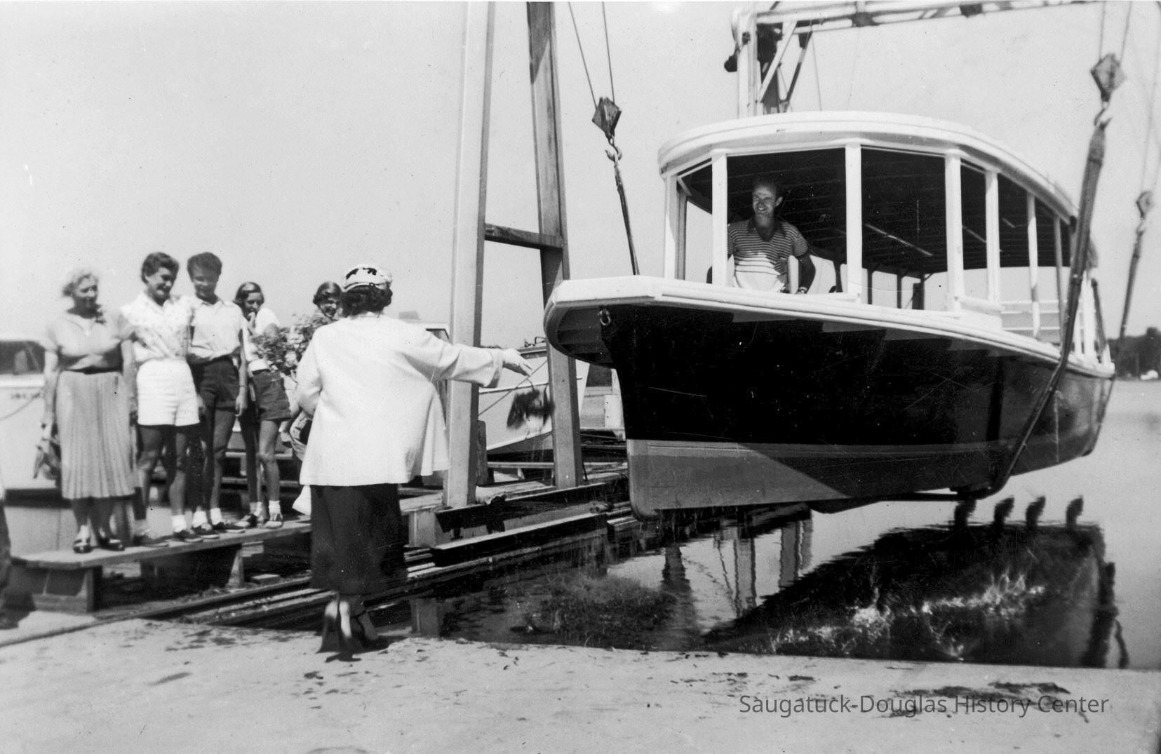 LA CAROUSEL Last week we featured the upper Kalamazoo River and a few of the turn of the century riverboats. In the next twenty years, the river boats and crusty captains faded into history. Then in 1952, Dick Hoffman, a talented young man who had just finished a four year hitch in the Coast Guard, was looking for a way to earn a living on the banks of the Kalamazoo. The old beach boat Waugun was lying at the end of Lucy St. and for sale cheap. Dick converted her to a stern wheel paddleboat suitable for New Richmond trips and - just like that - he started a business that would become a Saugatuck fixture. The next summer Hoffman revived the river scenic tour business with the rebuilt Waugon. He named her La Carousel, meaning the wheel. In an interview with Kit Lane years later, Dick told an amusing story which captures the flavor of the river tour business as well as Dick’s innovative nature: “I ran that boat and one day I sunk it coming down the river….caught the rudder, one of two rudders, on a snag and it pulled right out of the boat, I went back there to pick up the hatch to see what was wrong and here was this fountain of water coming up…. a great big fountain. I closed the cover quickly. As the rudders were locked off center, I just put the wheel in gear and ran it ashore where it would go… we weren’t under yet but I told the people that we would be, and they had to get off. It was not too deep, but we had twelve ladies from a bridge club, and a family of five, and we were maybe a couple of miles from New Richmond, at least. These were ladies of some weight. I had to carry those ladies from the boat to the bank… we walked back through the woods. If you have ever been in that woods, it is a carpet of poison ivy. Gary Diepenhorst was with me at the time, as sort of a crew; he was fishing as we went along. He said, ‘Is that poison ivy?’ I said, ‘Sssh don’t say a word.’ And those ladies walked through all that poison ivy back to the little store in New Richmond… and you know I never heard of one of them getting poison ivy.” By Jack Sheridan