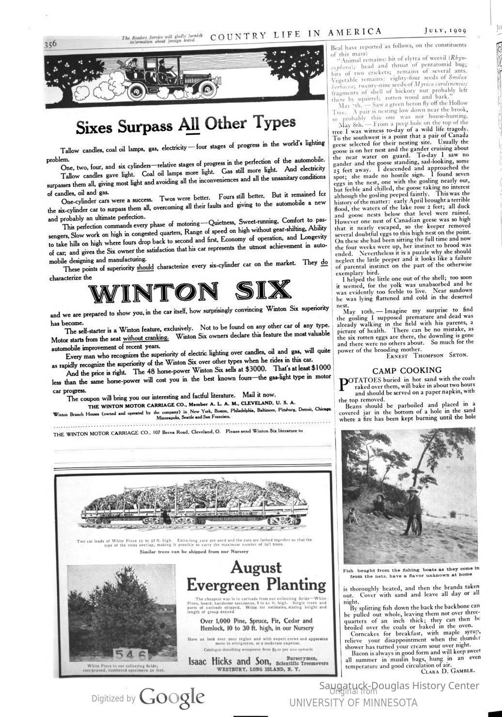 OCR scan of the text: THE GAMBLE-SAUGATUCK CONNECTION The summer of 1901 was the first one the Gamble family spent in Saugatuck. It came about as a result of William's friendship with Dr. George Gray, a Methodist pastor, who operated a settlement house in Chicago not far from Jane Addams’ Hull House. In 1896 Dr. Gray established the Forward Movement Association for the purpose of providing summer camping experiences for the poor people who visited his settlement house. The Association received support from Chicago businessmen who contributed money for the purchase of property for a campsite. The Association was looking at property along the eastern shore of Lake Michigan and it was largely through the efforts of Edwin House that the Saugatuck location was selected. Edwin House had grown up on a fruit farm at Saugatuck and would be returning to operate it himself. But at this time he was in Oak Park, Illinois as a student. To supplement his income, he set himself up as a real estate broker of resort property in Michigan. In addition to earning money, he was interested in helping his home town in encouraging settlement there. In a letter to his mother with regard to The Forward Movement Association, he wrote, "This group is backed by the best people of Chicago," and then he added, "they are to form a kind of Chautauqua for the poor class of the city." In order to try to fulfill this optimistic vision of a chautauqua for the poor, Dr. Gray felt it was necessary that there be some people there, also, who had been privileged to have had more cultural opportunities and thus could serve as a kind of stimulus. That was the thought in mind when he conferred with his friend, Dr. William Gamble, and asked him if he would consider having his family spend the coming summer at the camp. Of course, Dr. Gamble would need to attend to his medical practice during the week, but he could join his family on weekends. So William invited his wife to take a walk with him one evening. He often chose this means of sharing what was on his mind with his wife. Daisy sensed that he had something special to tell her, and quickly went along. But she was completely surprised by the momentous proposal her husband had for her. And even after she had heard about it, she could have no idea how much it would affect the lives of the whole family. Daisy was sympathetic with Dr. Gray's desire to provide broadening experiences for the poor people. She was also attracted by the thought of getting out of the city and spending a summer in a woodland and dune setting along the shore of Lake Michigan. So she agreed at least to go and look at the area with William the next weekend. They went on a night boat and were met at the landing by Dr. Gray. They were both enthralled by the world into which they stepped. It did not take long for them to agree to participate in Dr. Gray’s plan, at least for one summer. The Gambles set up tents at the Forward Movement Park, shared the evening meal with the other campers, and generally associated with the city poor who also came mostly in families. They did not devote their entire day to this mingling, however. They took advantage of the location to provide an outdoor education for the children - for the whole family, in fact. The children that first year consisted of: Celia, 10; Raleigh, 8; Dick, 6; and Josephine, 3. They found that first summer so satisfying that they returned to the camp for several years, even the summer of 1904, when Elizabeth was born. During the first few years, when the children were all young, they didn’t venture far from the campground. They would hike in the woods and along the lake, and make visits to the village across the river. As the children grew older, they would take longer hikes up the river and would take a row boat down the river to Lake Michigan and back. In calm weather, they would even row their boat along the edge of the lake to a point even with their campsite. Eventually, especially when William was there on weekends, they would take long boat rides up the river above Lake Kalamazoo, always on the lookout for new and different birds and plants. For the habitat above Lake Kalamazoo is different from what they found along Lake Michigan with its beach grass and scrubby jack pines. As they traveled up the river they came to a marshy region of cattails and wild rice where they could spot different kinds of water fowl. Still farther upstream, they entered a mixed forest region of pine and hardwood. The Gambles' open air experiences were unique, with all aspects well planned and projects assigned to each child according to his ability. The program was carried out mostly under the leadership of Daisy, joined by the enthusiastic coaching and assistance of William on weekends. Daisy submitted an article to the magazine, FrankWilson-1908.jpg 147KB which was published in 1909. In it she described exactly how their tents were made and erected and provided some other useful tips for campers. They continued to associate with other residents of the camp each summer and to attend programs and lectures, in many cases as inspiring as nature, itself. By 1908, the family began to think in terms of a more permanent summer home. The parents felt that some of the children were outgrowing camp life and needed a place where they could entertain their friends. They liked some property that was for sale on the village side of the river on a ridge overlooking the river and close enough to the mouth so they could see Lake Michigan and the blinking of the lighthouse at the end of the pier. They purchased this property from Edwin House, the same man who had brokered the sale of property for the Forward Movement Association and they had a cottage built there in 1909. Home ownership brought many changes to their lives including many new responsibilities for all members of the family. This did not entirely exclude their habit of taking hikes and boat rides and thoroughly exploring t