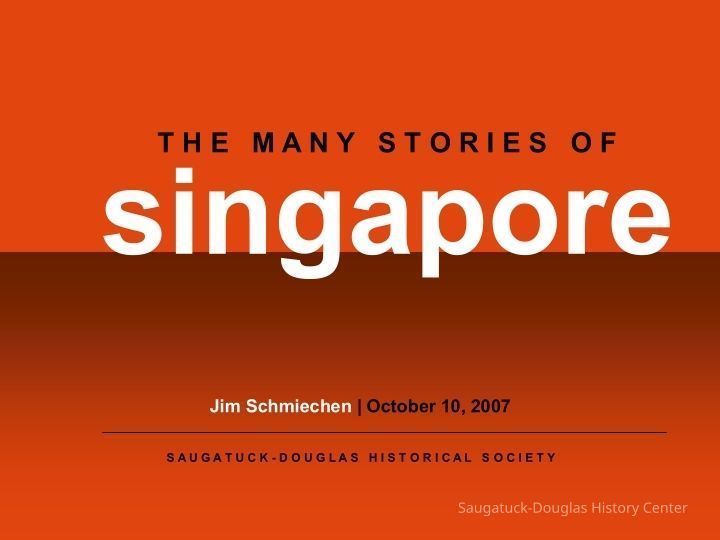 Historian James A. Schmiechen speaking about Singapore, Michigan in this SDHS presentation at the Saugatuck High School library on October 10, 2007. Video is blurred but audio is intact. A PDF of the powerpoint presentation that accompanied lecture is included in this entry.