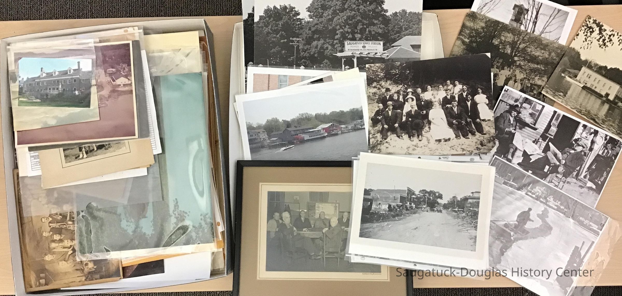 Print of a “Bird’s Eye View of Saugatuck”. Caption on the back reads “Vernon Paest c 1925”.