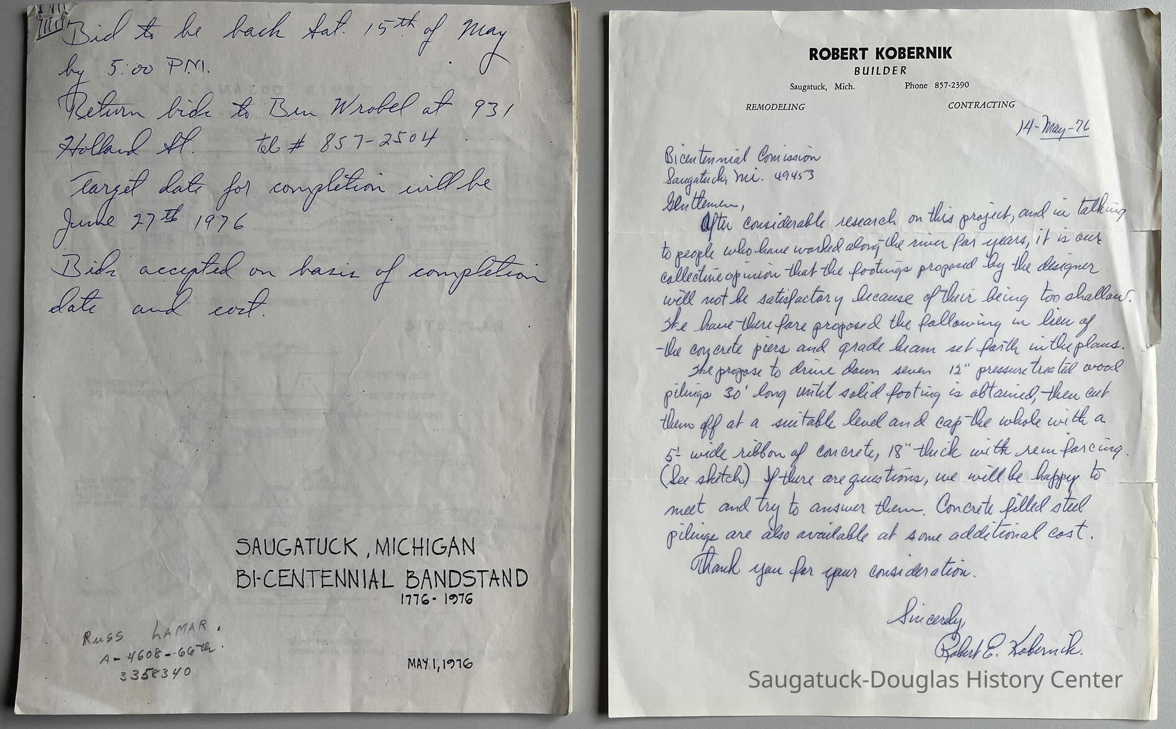 Letter by Robert E. Kobernik, builder to Bicentennial Commision