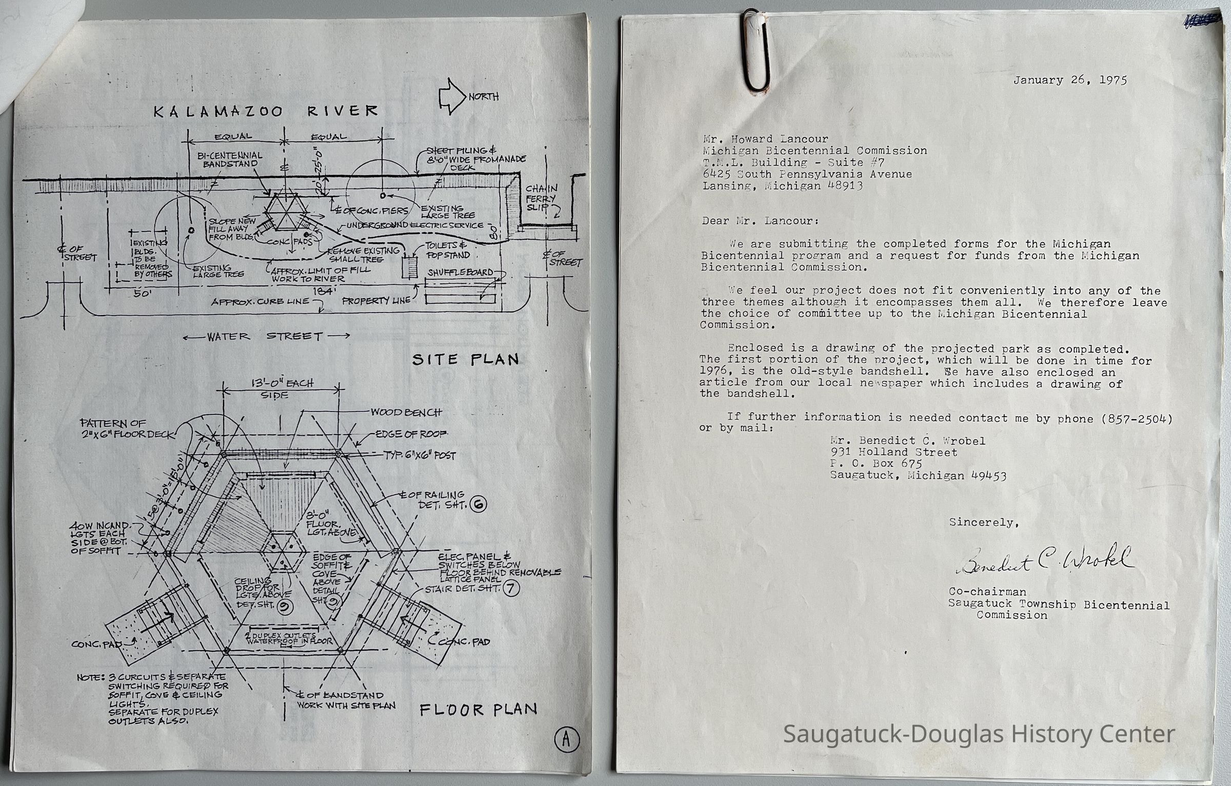 Cover letter and 7-page criteria form for the Michigan Bicentennial Program submitted by Benedict C. Wrobel. Photocopy.