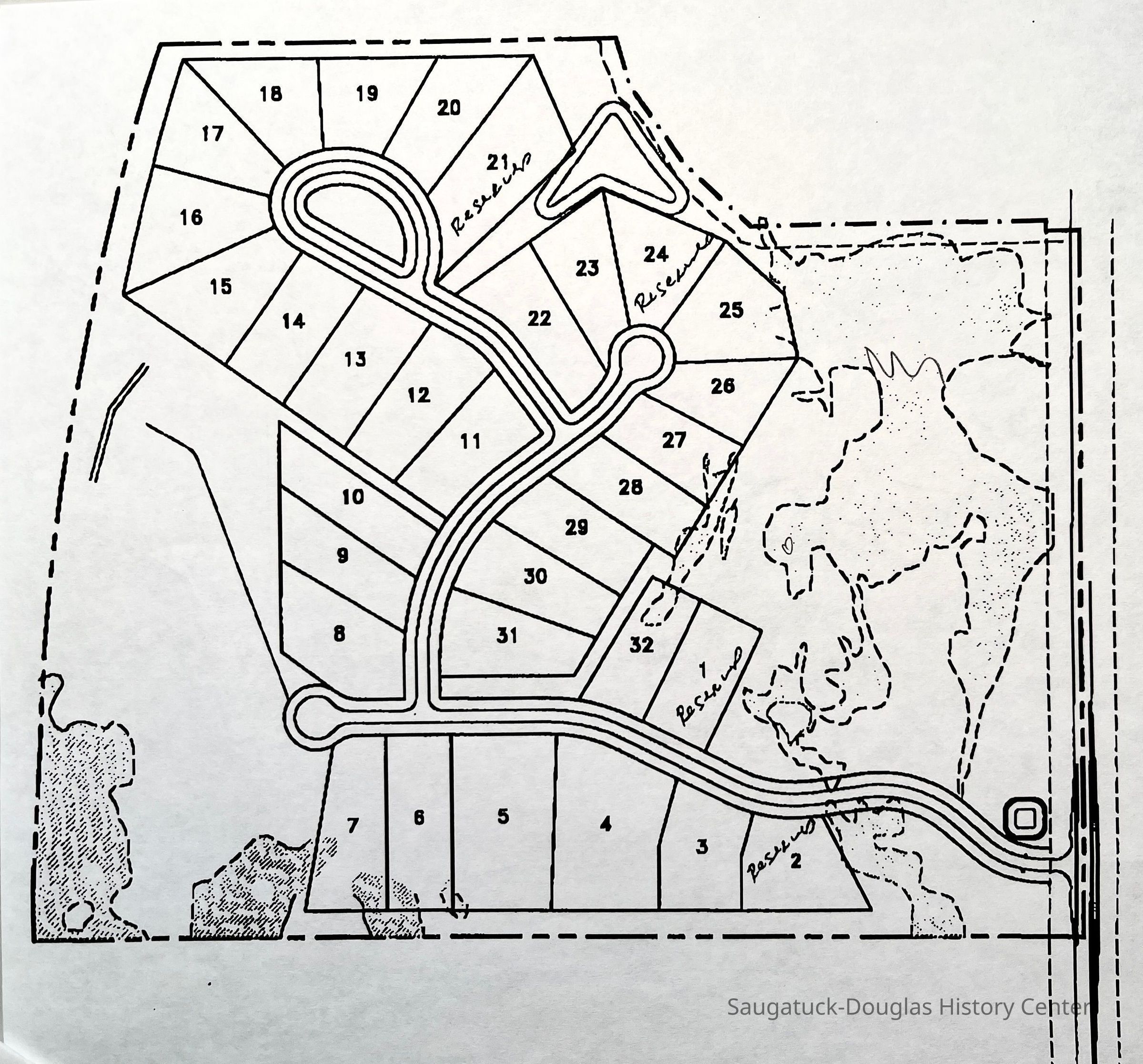 This subdivision is located on the west side of the Blue Star Highway, across from the blueberry farm. It is south of Johnson Village and north of 126th. The 32 lots are arrayed along two roads: Fallen Leaf Trail and Deep Forest Way. As of 2025, houses have been built on 16 of the lots. 6840 Fallen Leaf Trail has been designated as a cemetery plot by the Jones family.