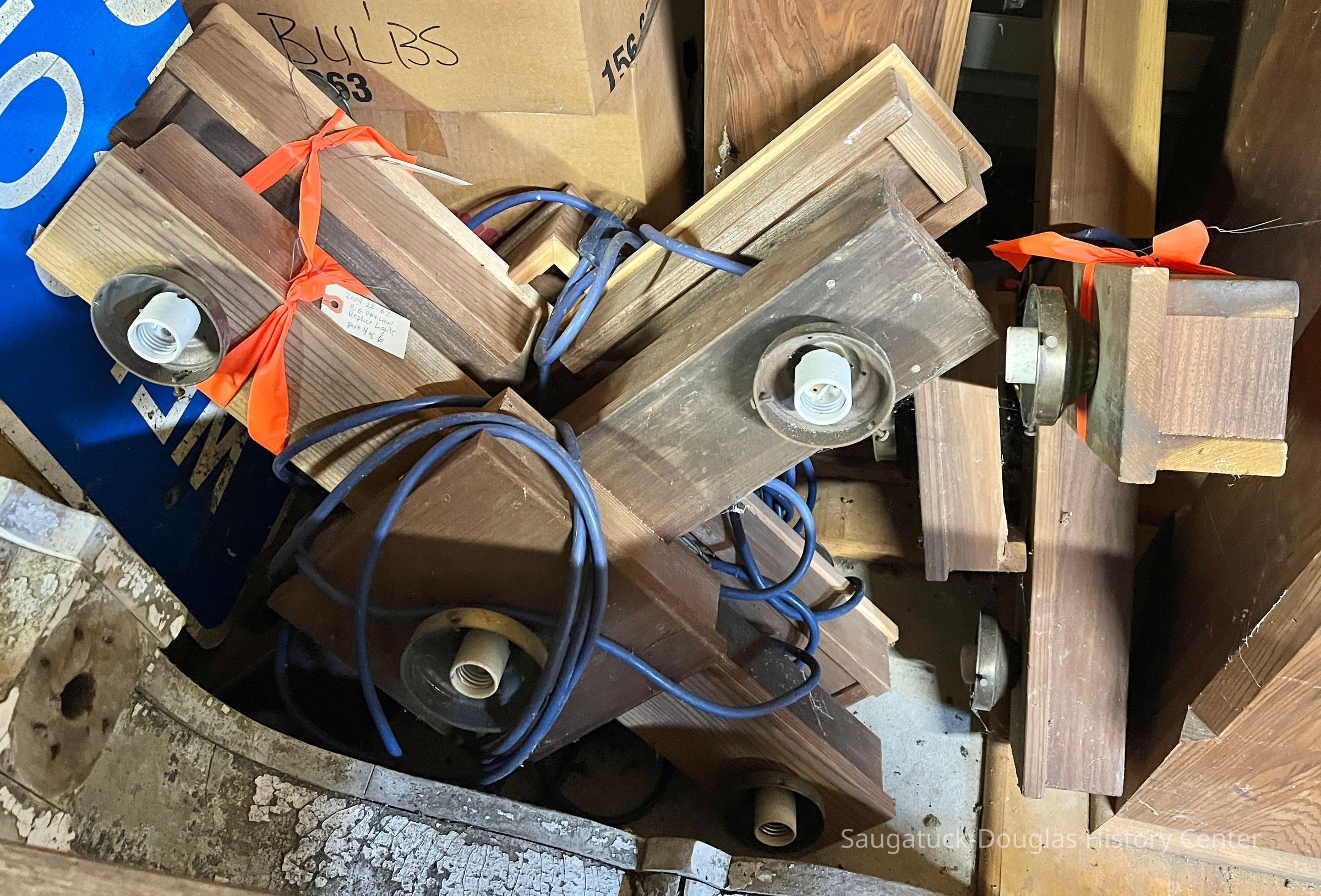 Three replicas of the wooden floor lamps that illuminated the dance floor at the Big Pavilion.