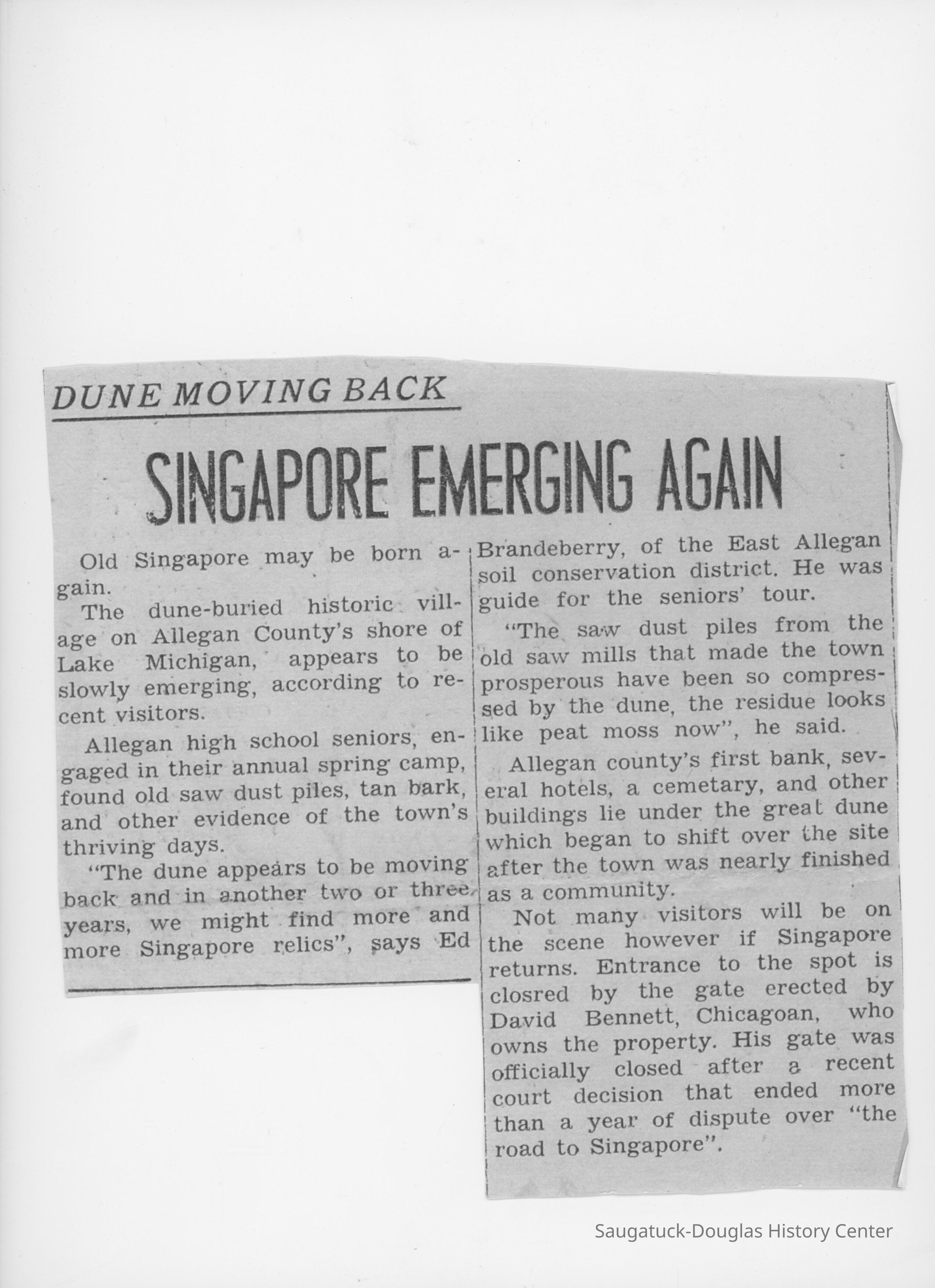 Unidentified and Unsourced Newspaper Clippings about Singapore