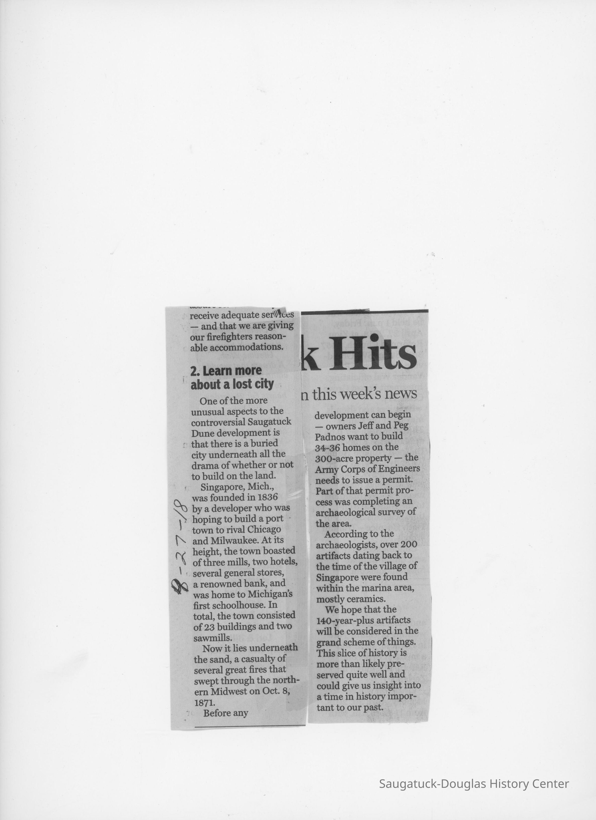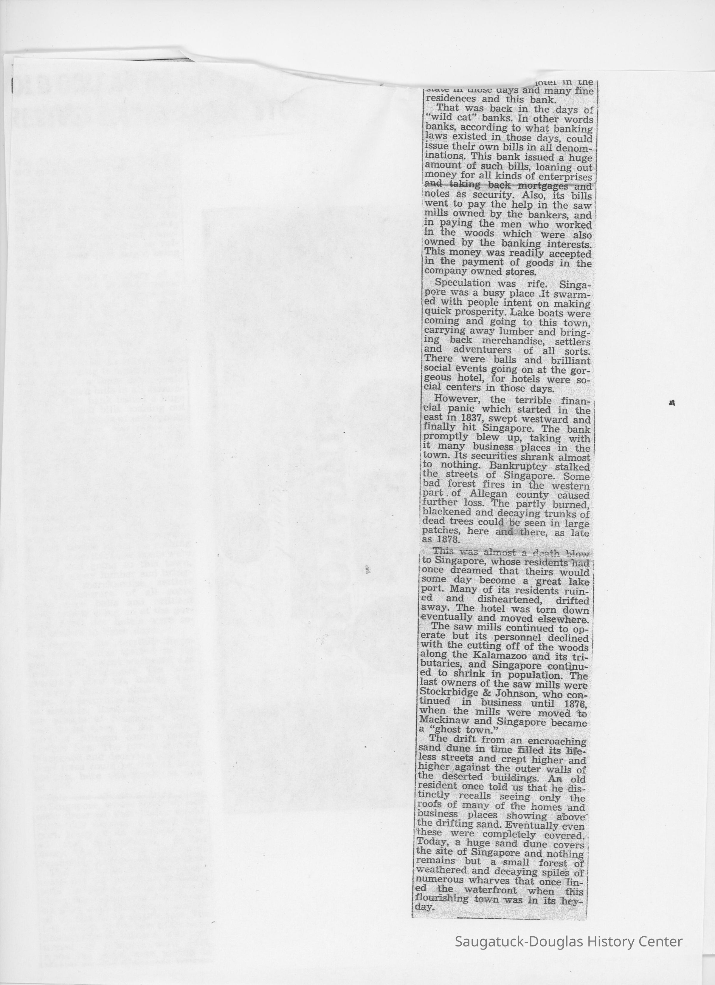 Singapore, Michigan 1837-1875